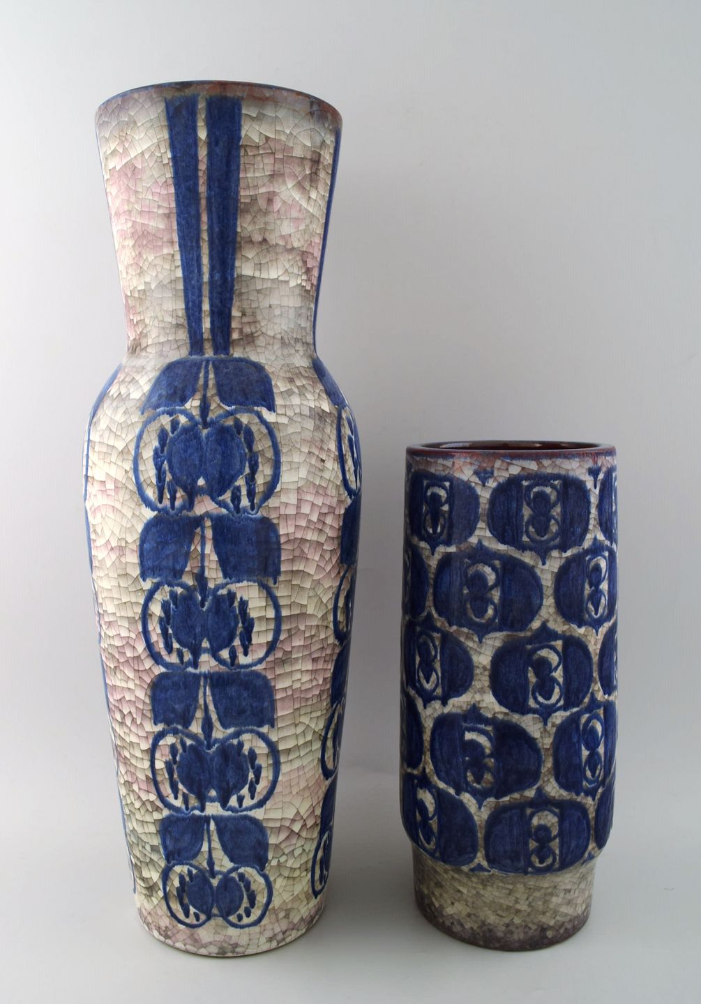 Michael Andersen. To store gulvvaser af keramik. 1950/60´erne. Stemplet : nr. 5703-2. Højde 53 cm. Diameter 16 cm. og Højde 31 cm. x 13,5 cm. I perfekt stand.
