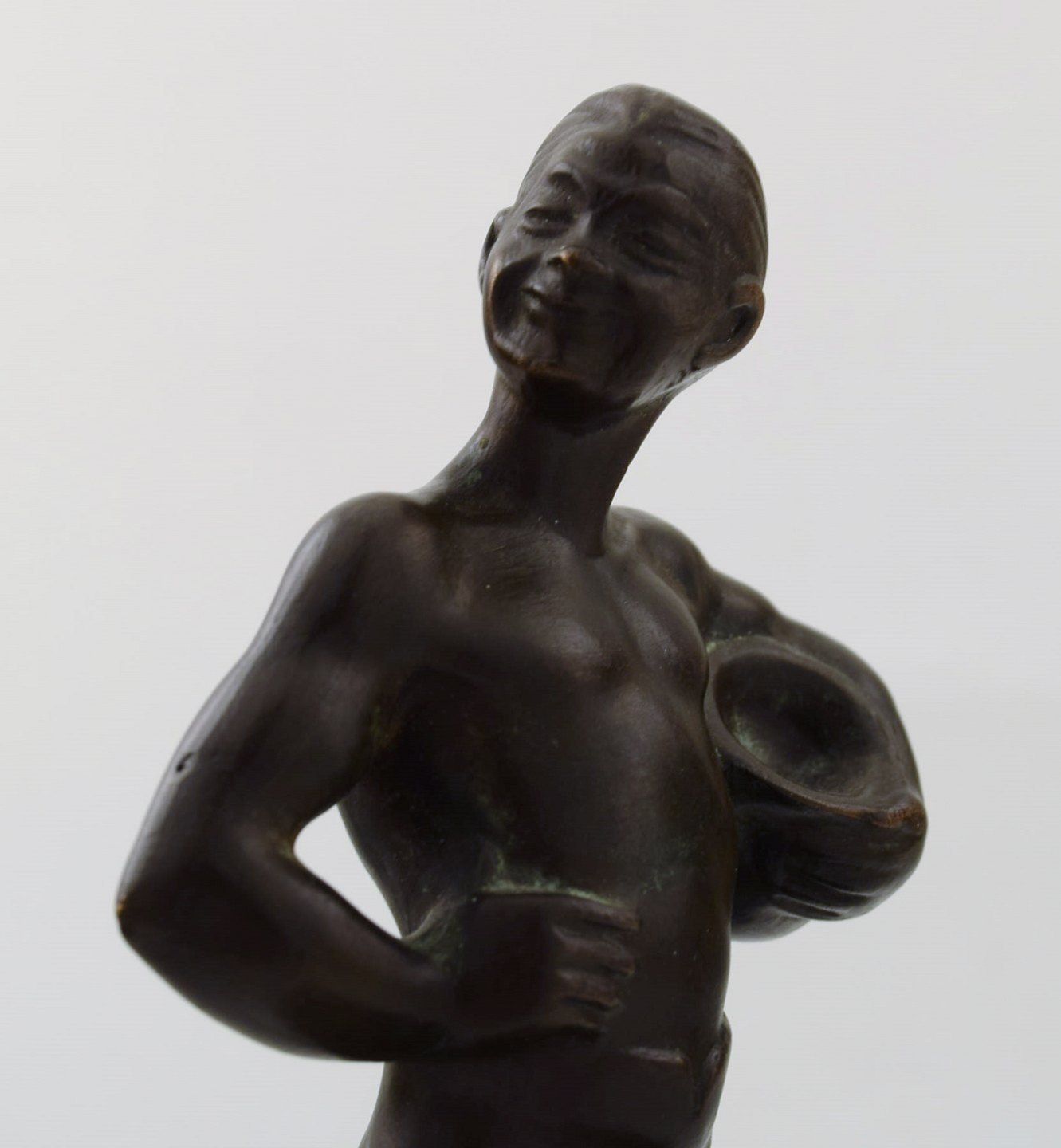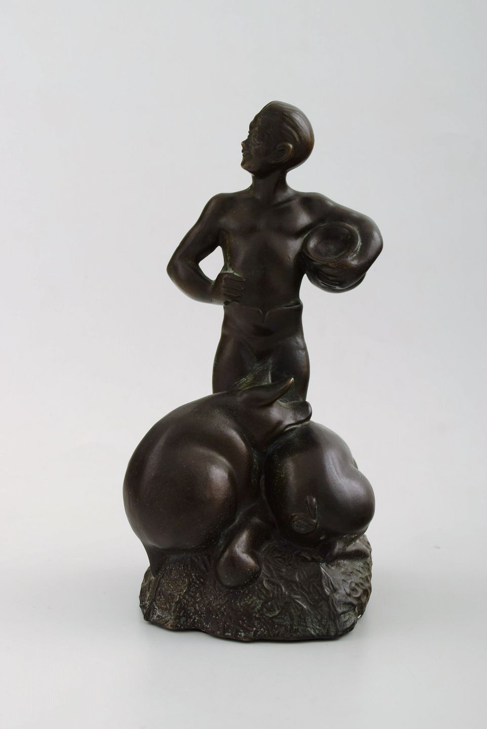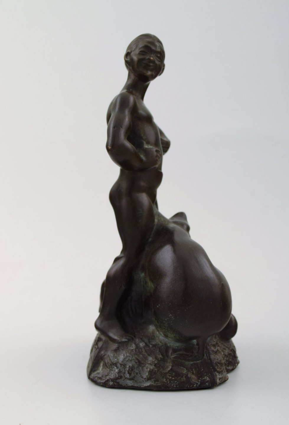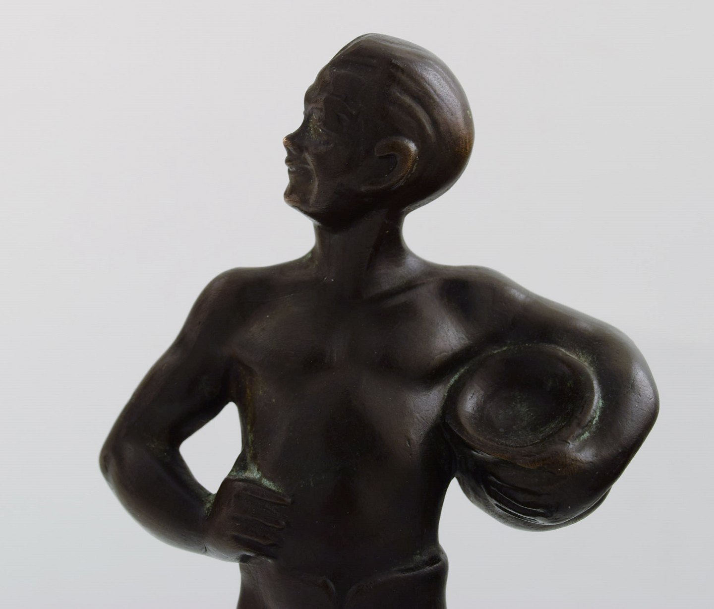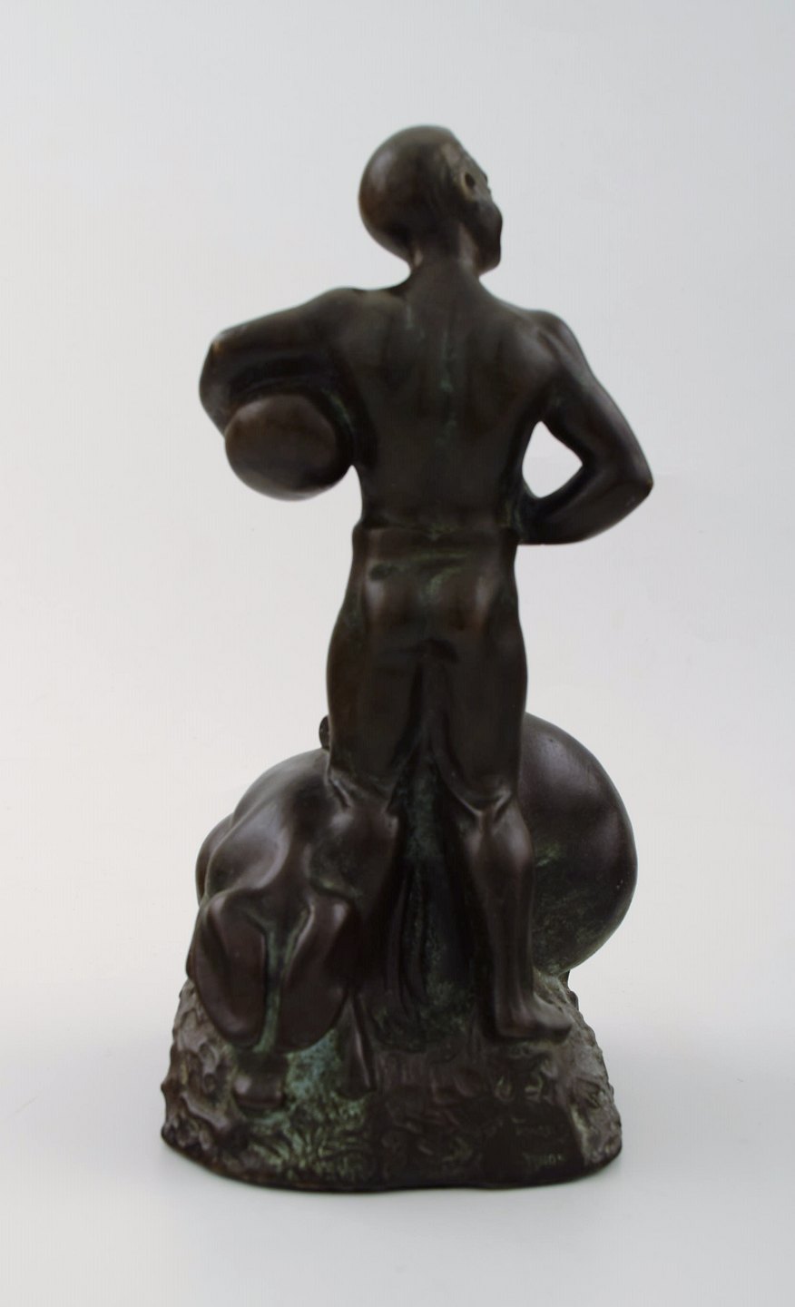 Hans Kongslev for Tinos, The Swineherd by H. C. Andersen, patinated pewter. Denmark, 1940s. Stamped Kongslev, Tinos. Height 19 cm. Diameter 9.5 cm. In perfect condition, beautiful patina.
