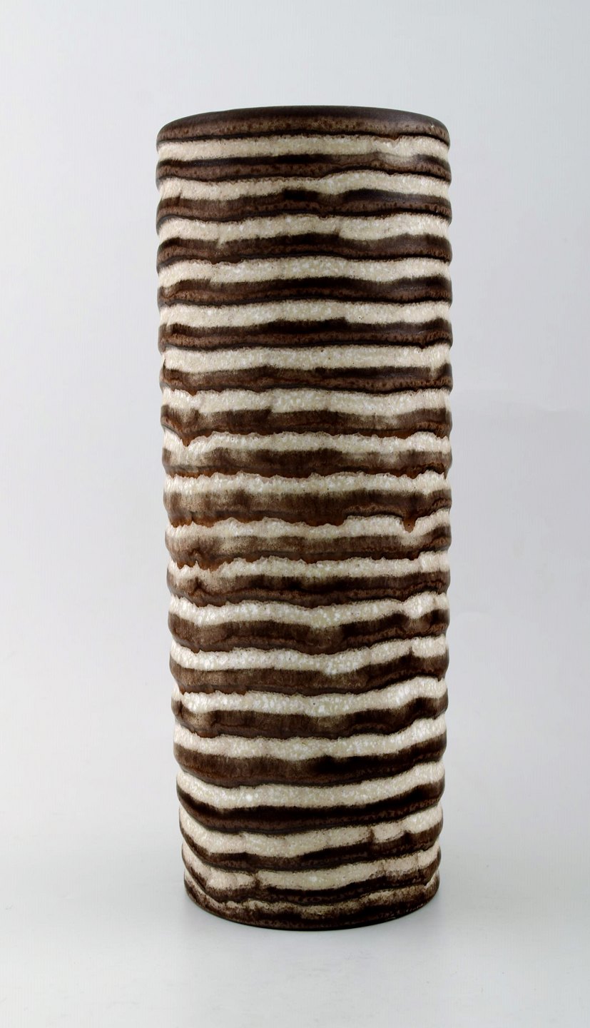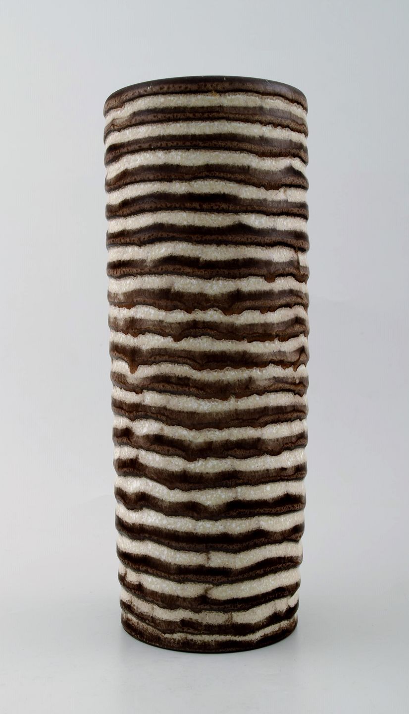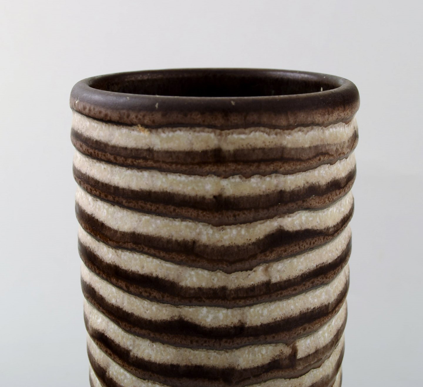 Helge Østerberg/Osterberg: Vase of burnt chamotte clay, brown stripes. Signed Ø, Denmark. 1960s. Height. 22.5 cm. Diameter 8 cm. In perfect condition.