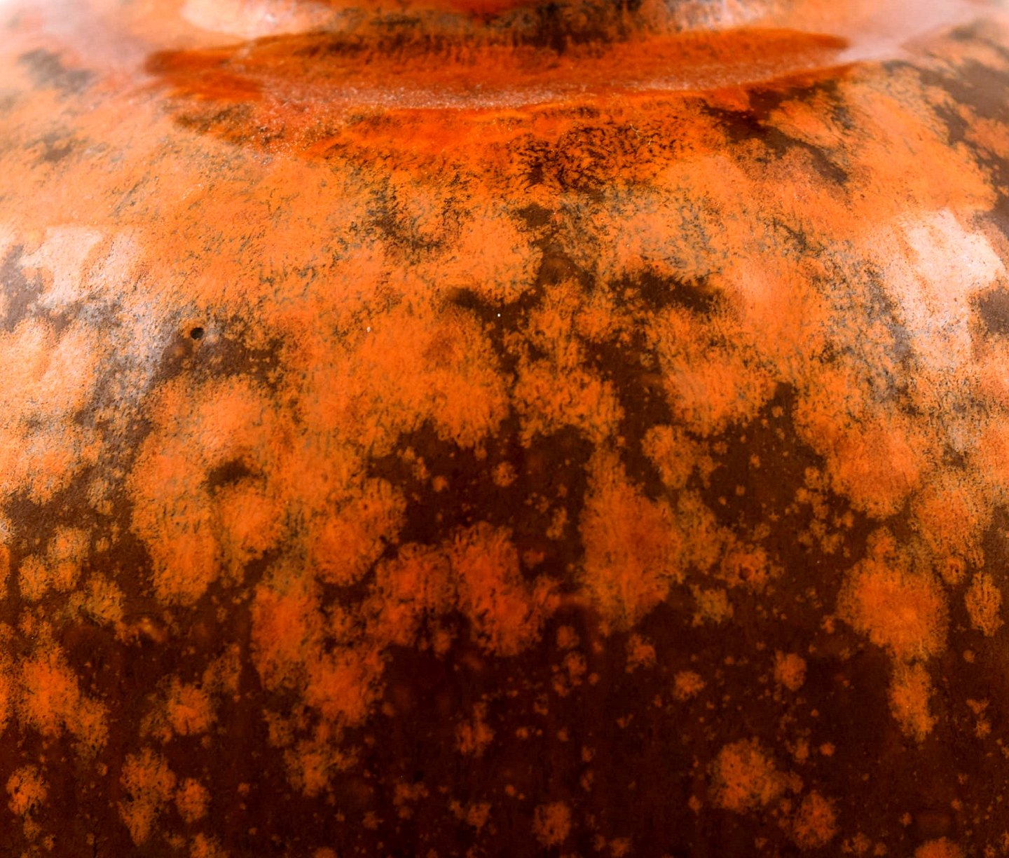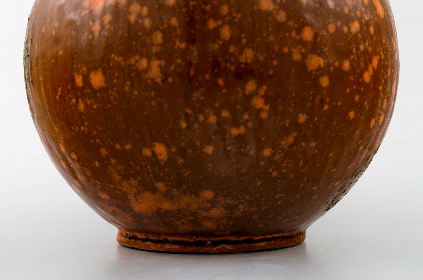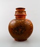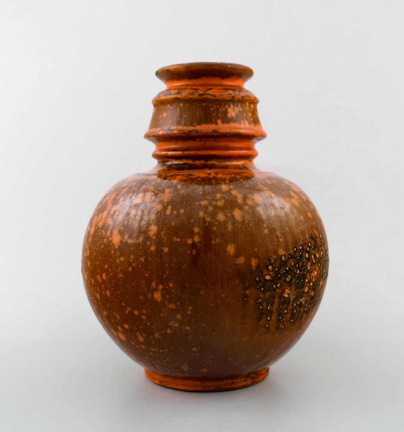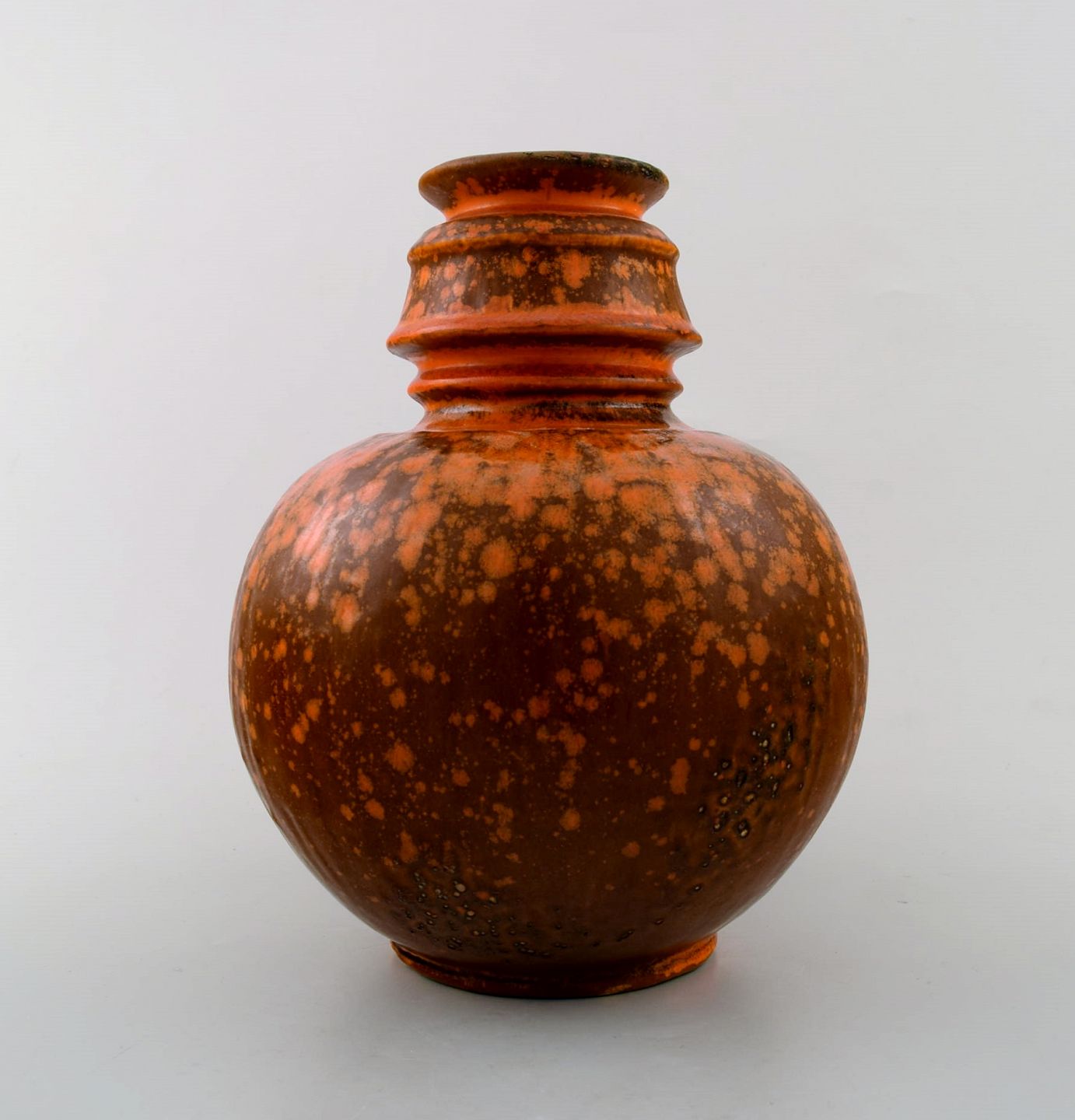 Kähler, HAK, Svend Hammershøi, glaseret stentøjvase. I perfekt stand. Flot urangul glasur i orange nuancer. Stemplet. Måler 20 cm. x 15 cm.