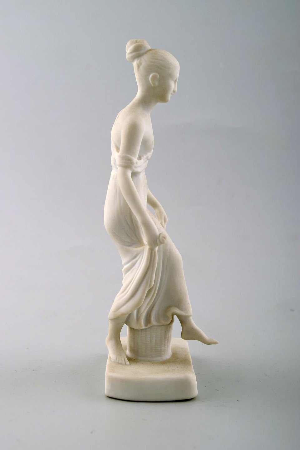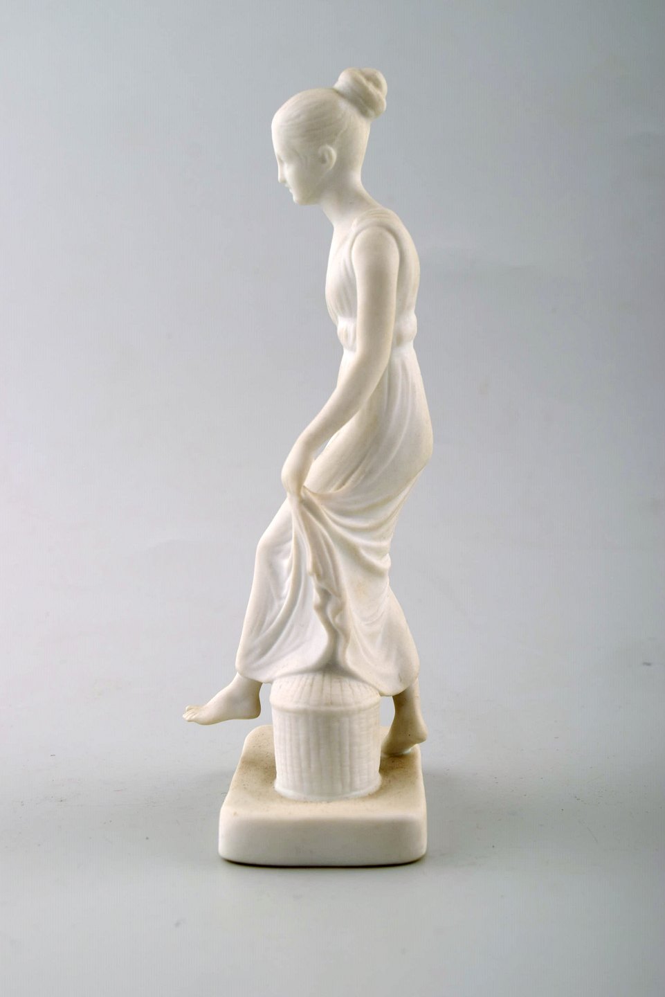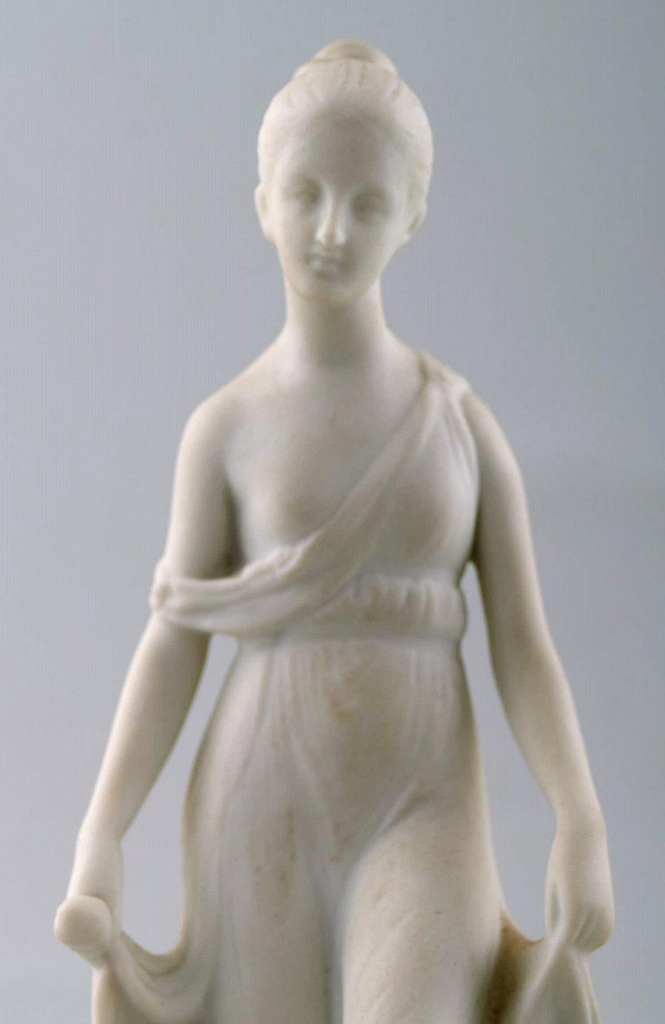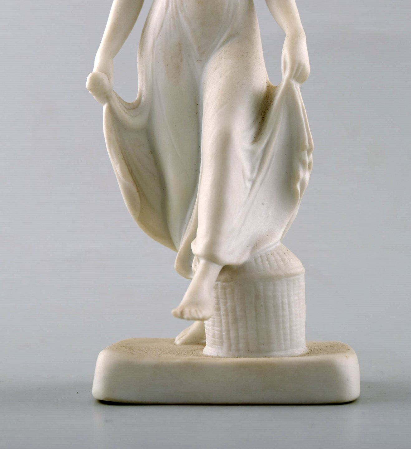 Antik B&G (Bing & Grøndahl) biscuit figur efter Thorvaldsen. Danserinde. Måler : 16 cm. 1. sortering, i perfekt stand. Stemplet, sent 1800-tal.