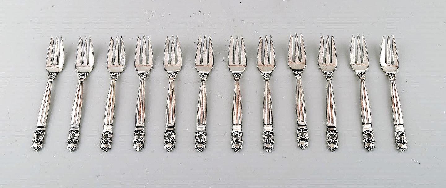 Georg Jensen "KONGE" tolv kagegafler. Sterlingsølv. Designer: Johan Rohde. Længde: : 12 cm. Stemplet. I perfekt stand.
