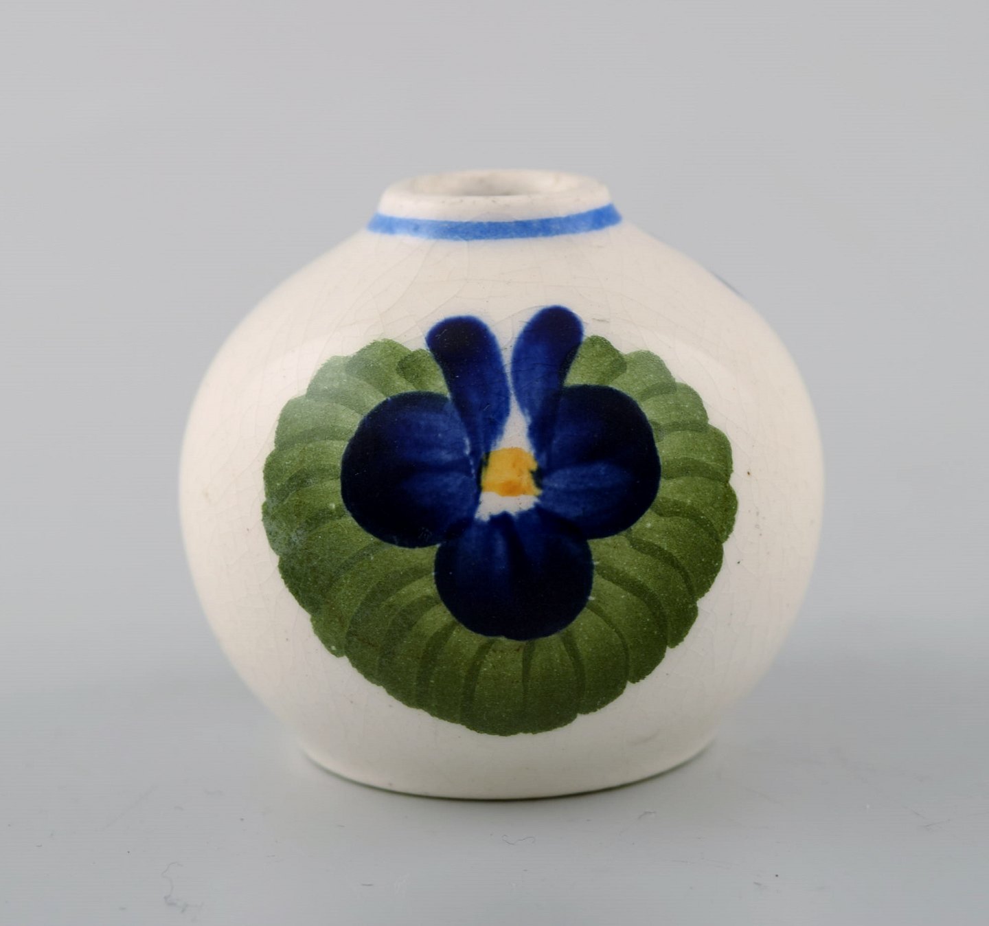 Aluminia vase, hand-painted with flowers, Denmark early 20 c. Measures: 5 cm. X 5 cm. In perfect condition. 1. factory quality.