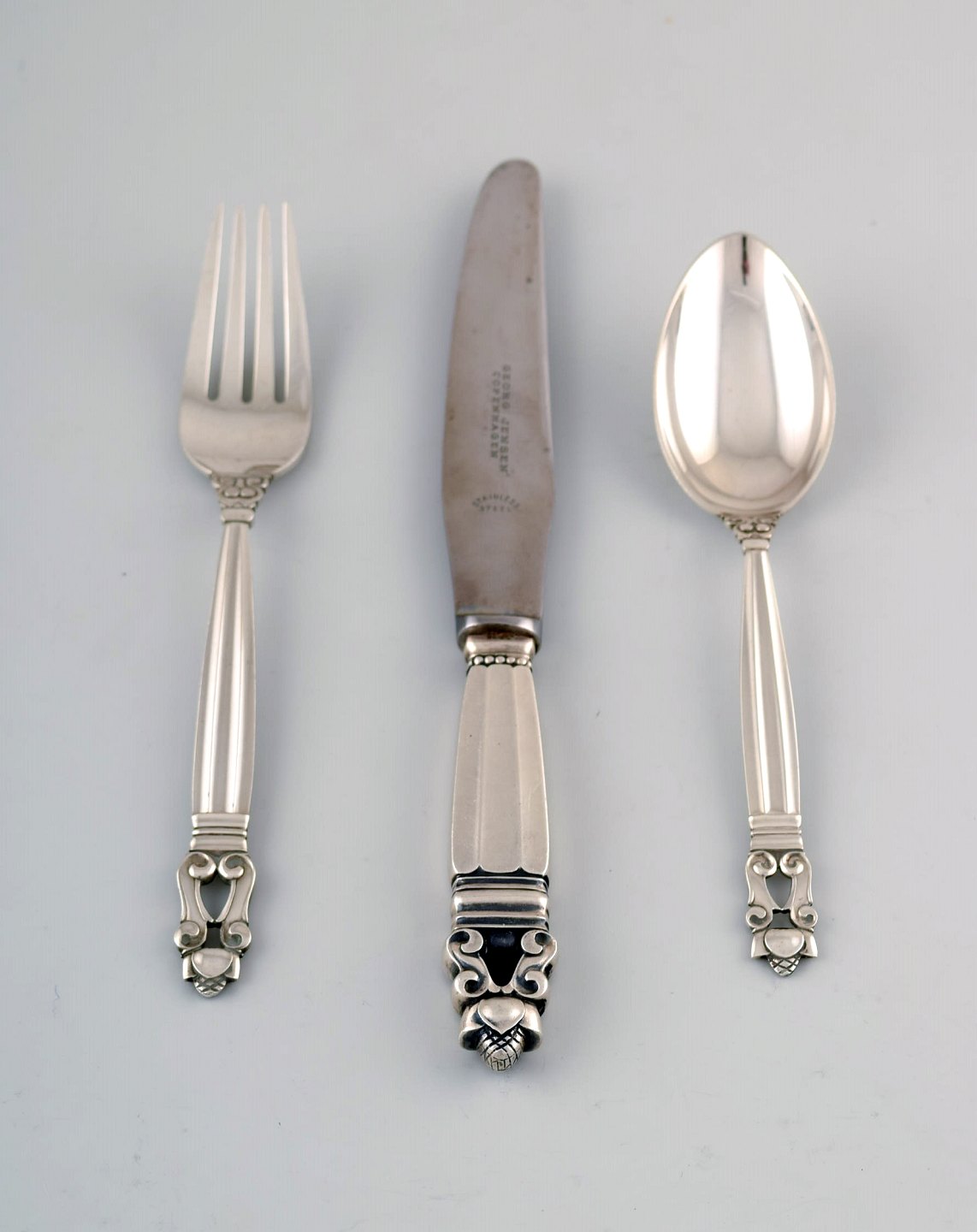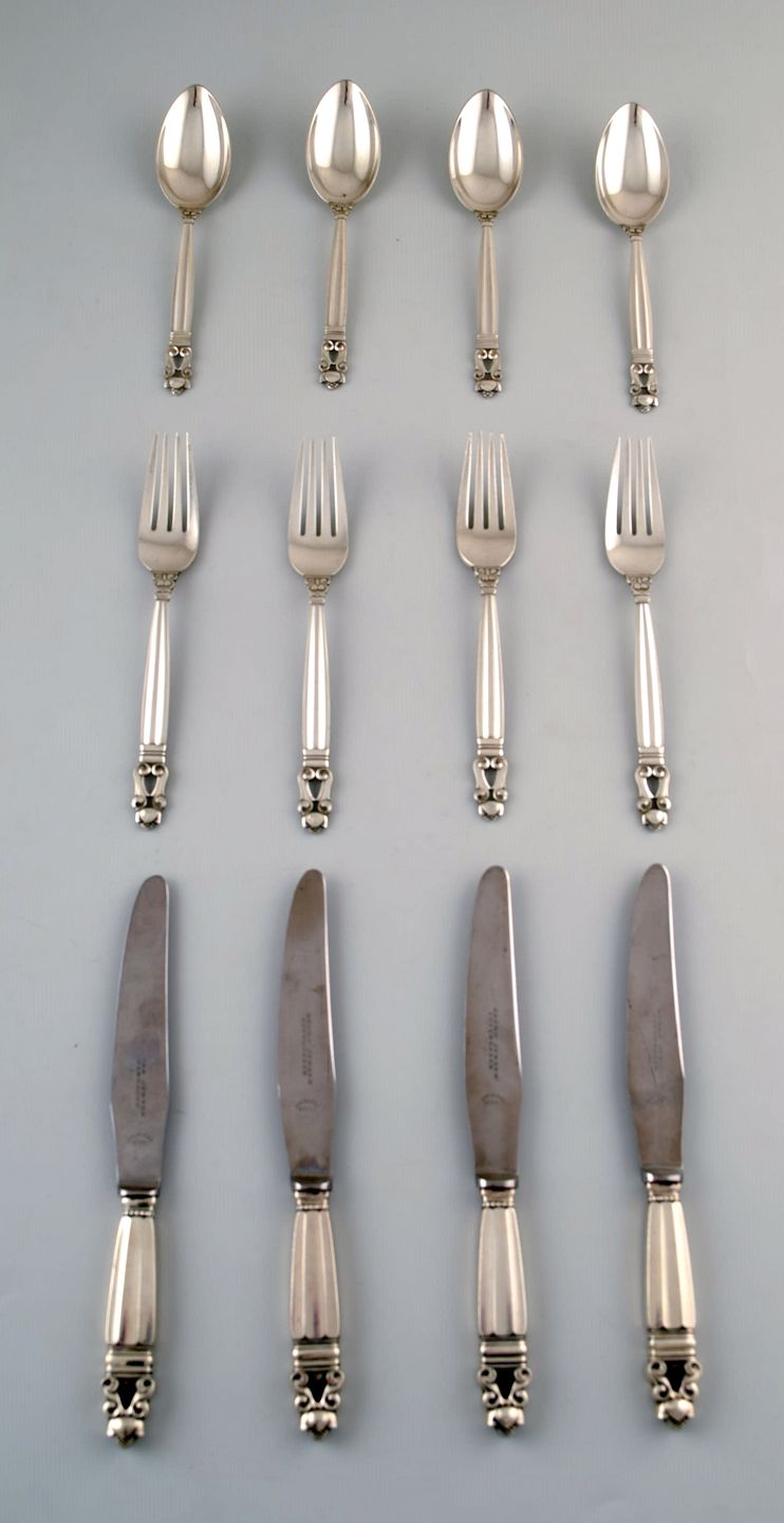 Georg Jensen "Acorn" Complete dinner service for four people. Sterling silver.