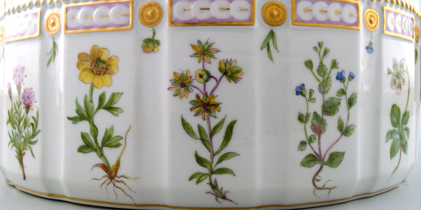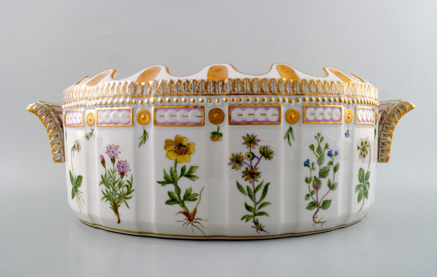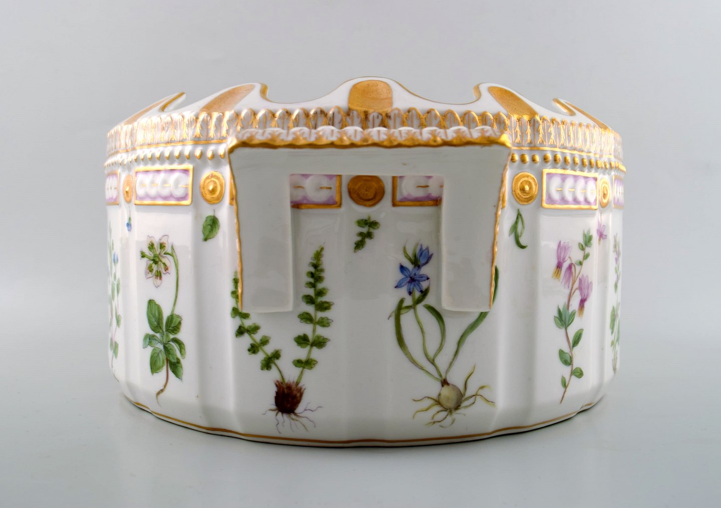 Royal Copenhagen. Flora Danica. Monteith. Design # 3531. For cooling champagne flutes. Length 32 cm. Height 12 cm. Size 380 cl. 1st. factory quality, in perfect condition.
