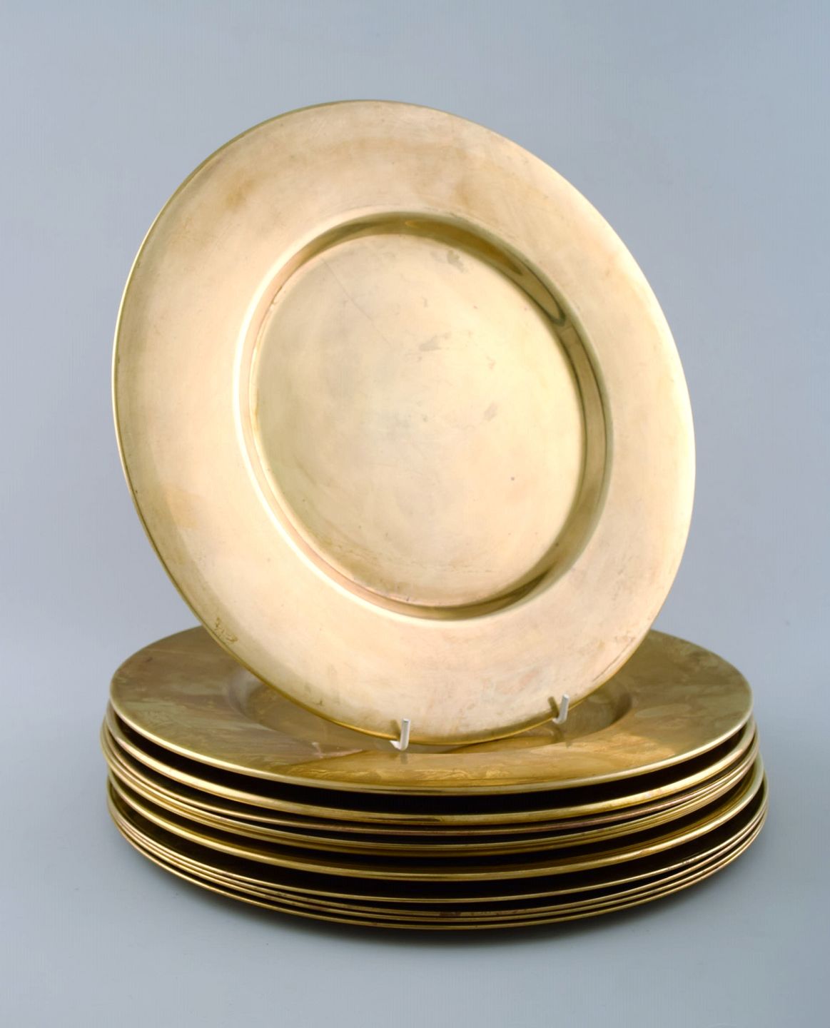 Set of twelve cover plates in brass. Danish design 60s. In perfect condition, beautiful patina. Measures 29.2 cm.