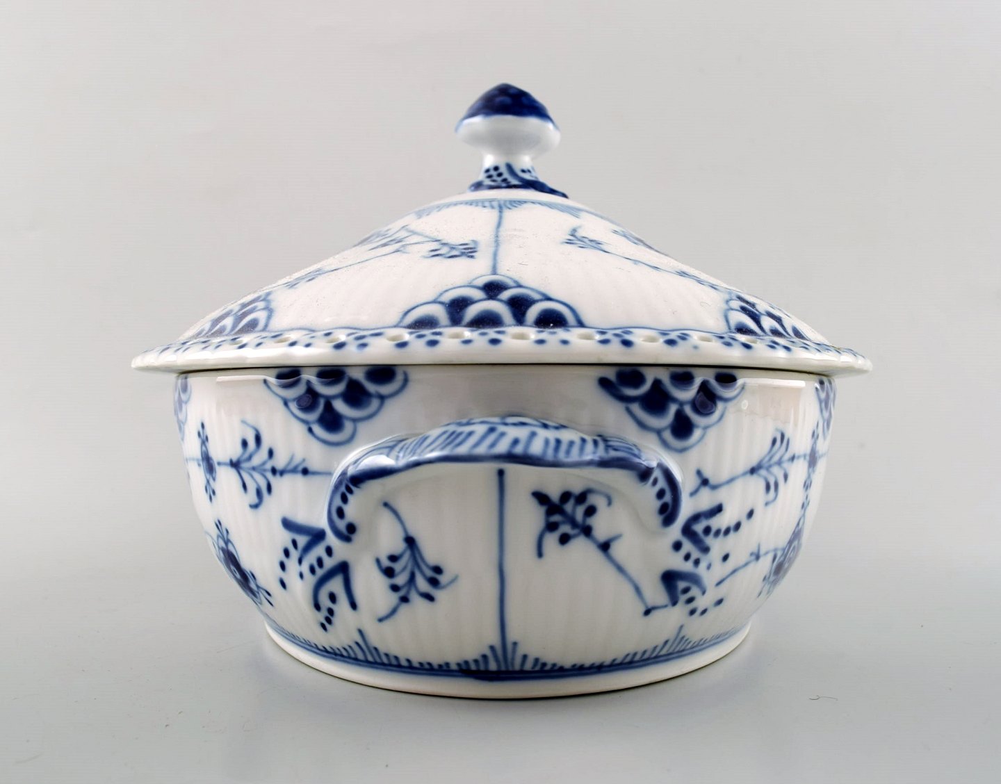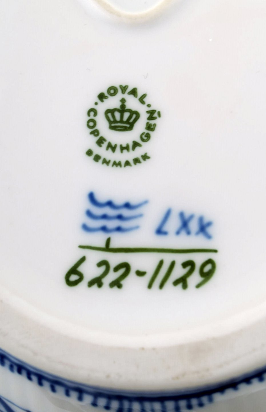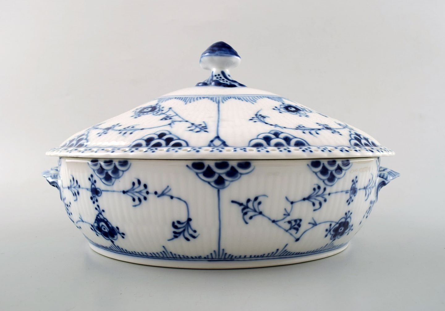 Kgl. porcelæn Royal Copenhagen Musselmalet helblonde terrin, #1/1129. H - 15 cm, B - 27 cm og D - 22 cm. I perfekt stand. 1. sortering.