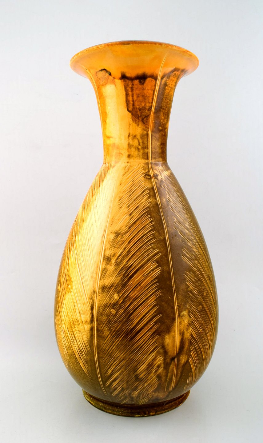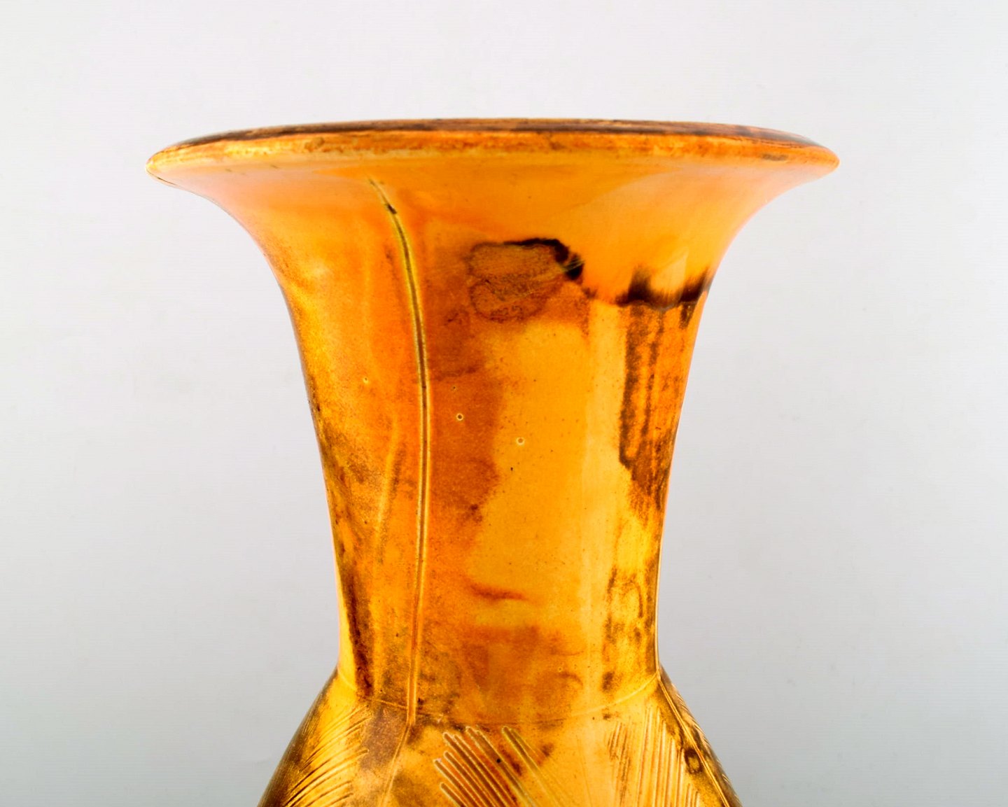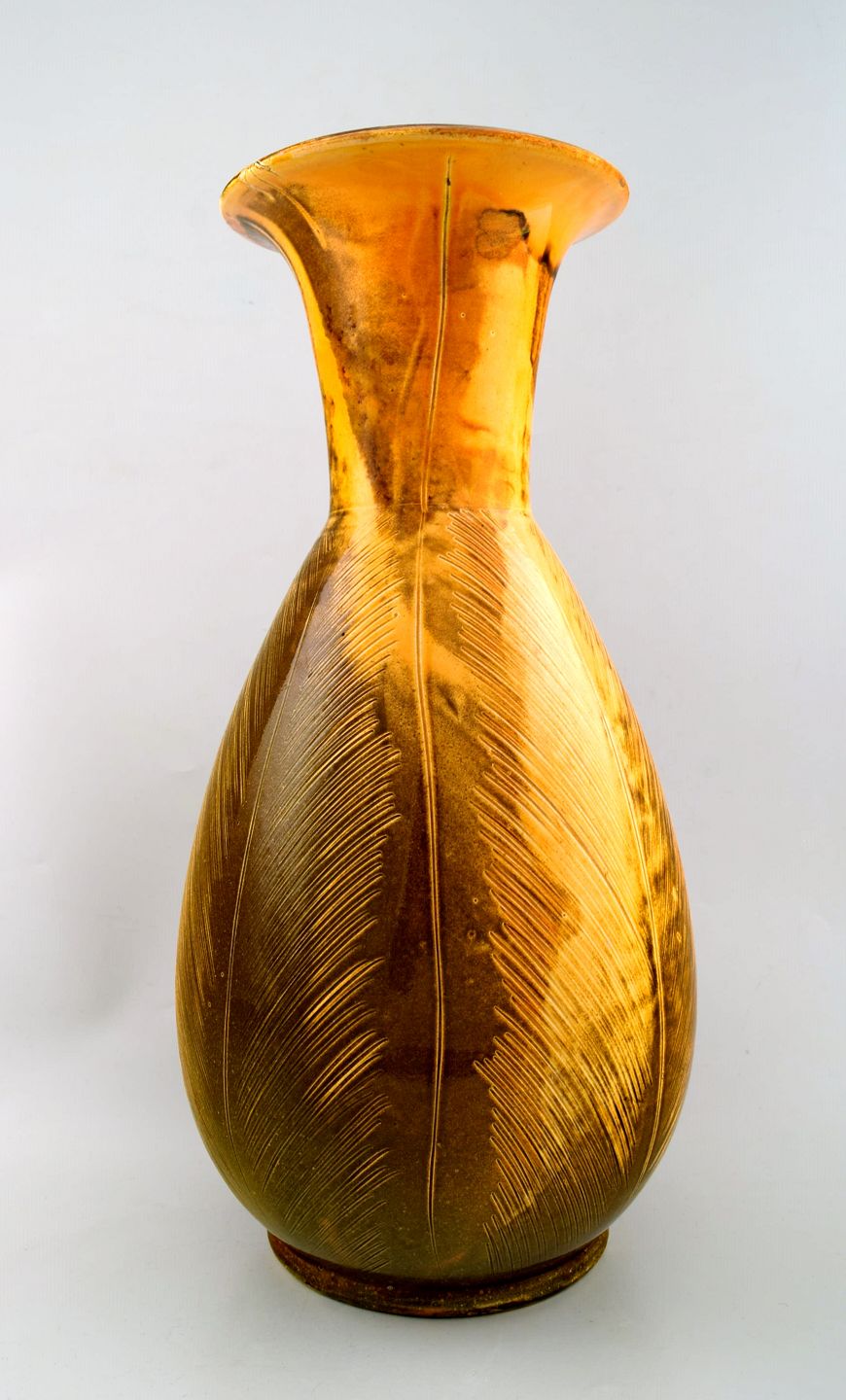 Stor Kähler, HAK, Svend Hammershøi, glaseret gulvvase i stentøj. I perfekt stand. Flot urangul glasur. Stemplet. Måler 40 x 21 cm.