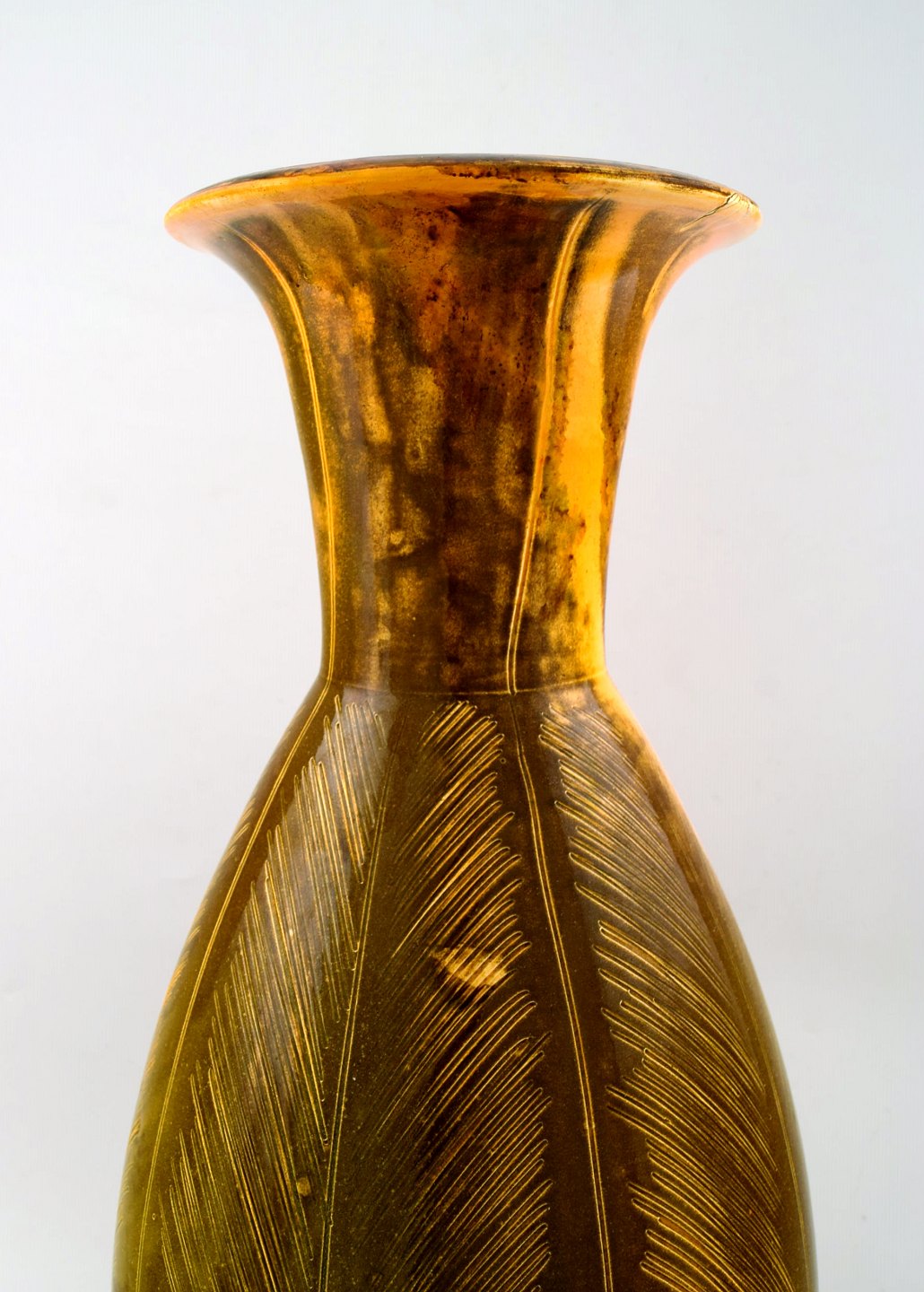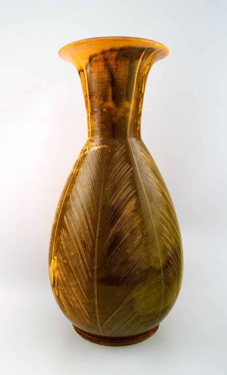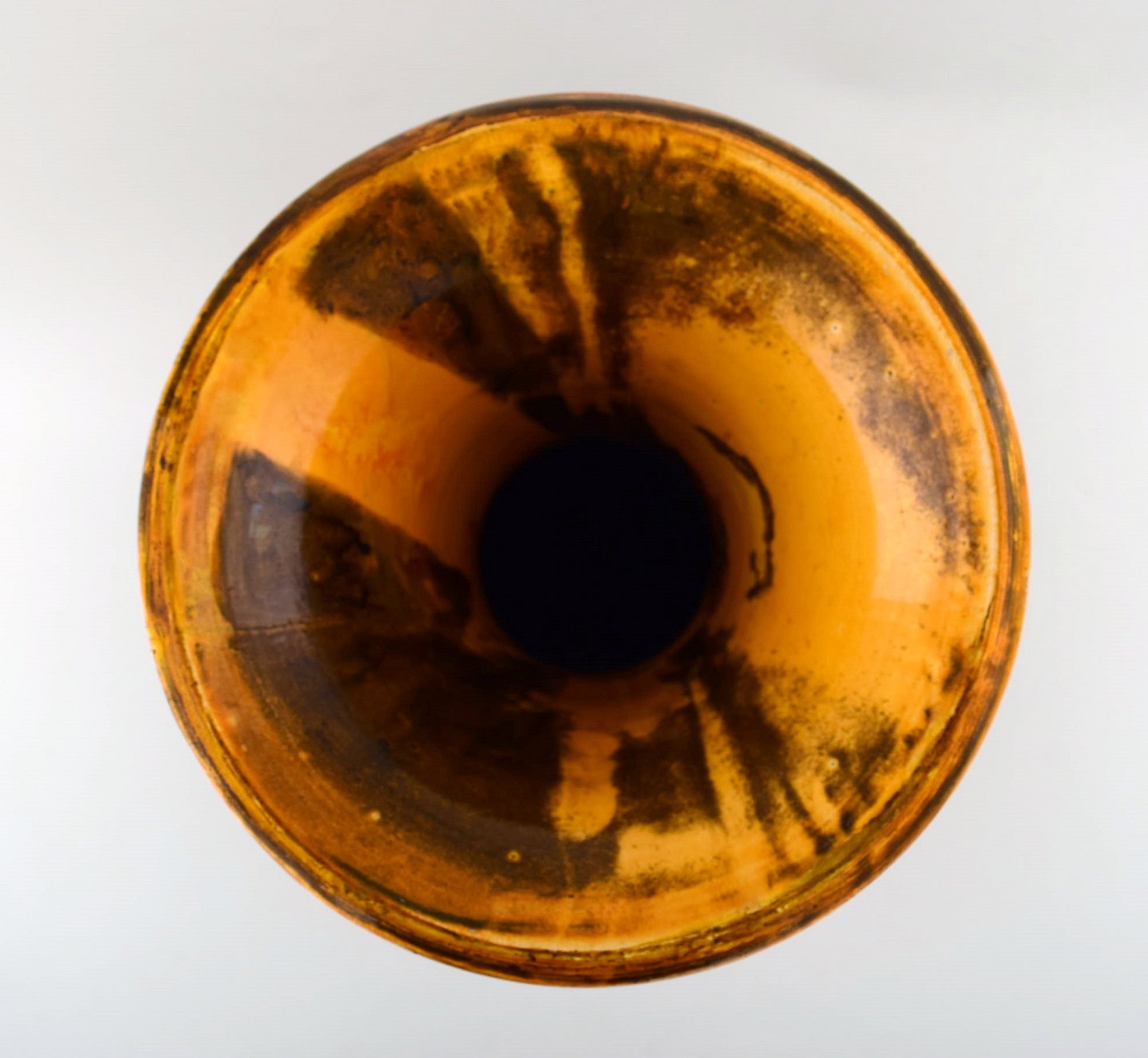 Stor Kähler, HAK, Svend Hammershøi, glaseret gulvvase i stentøj. I perfekt stand. Flot urangul glasur. Stemplet. Måler 40 x 21 cm.