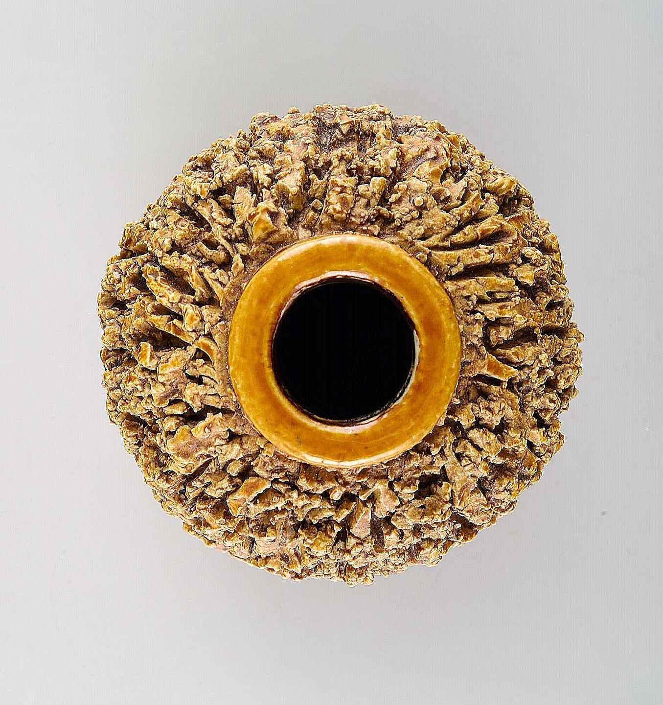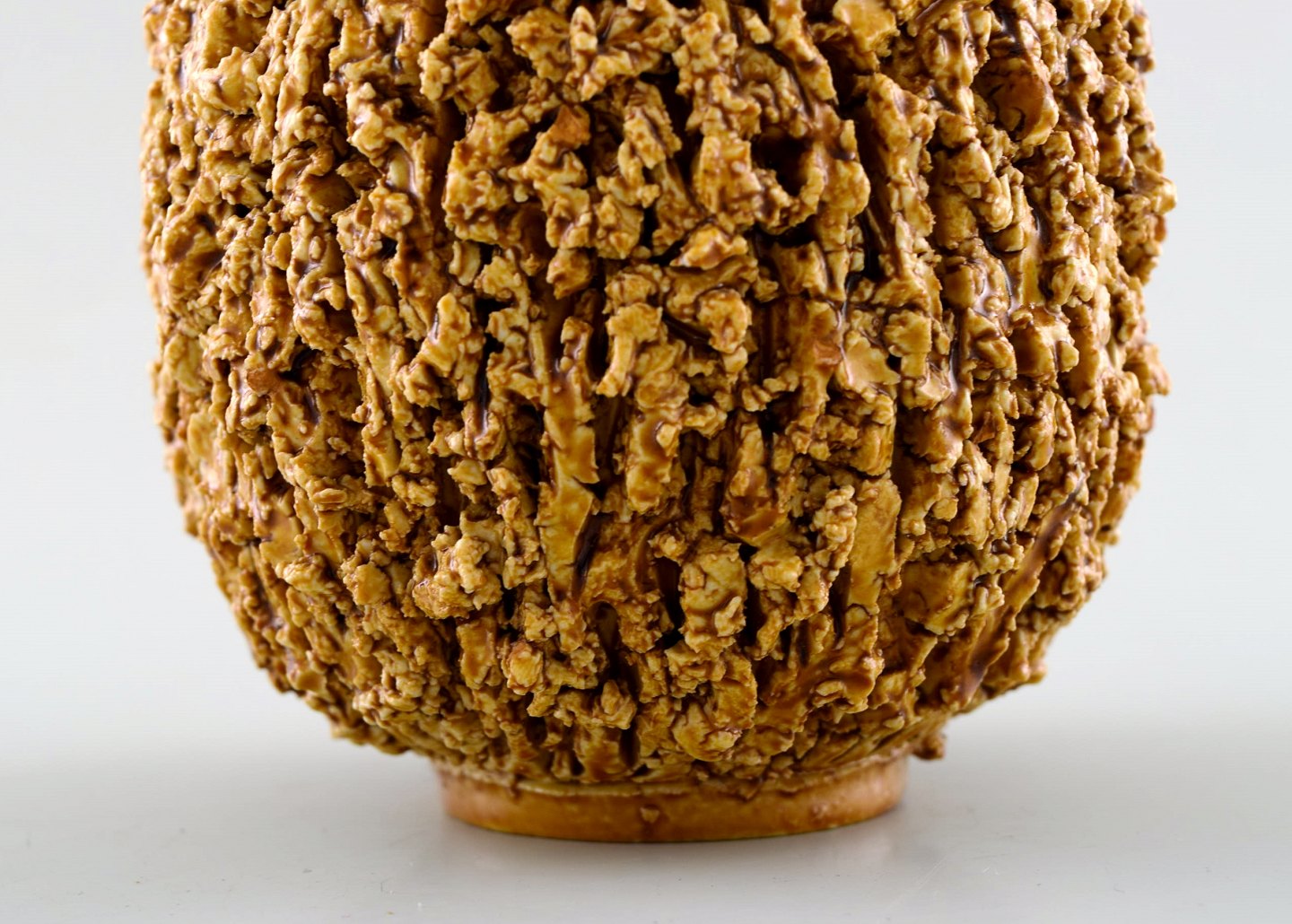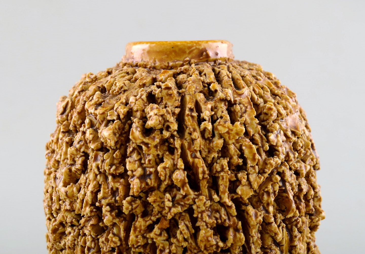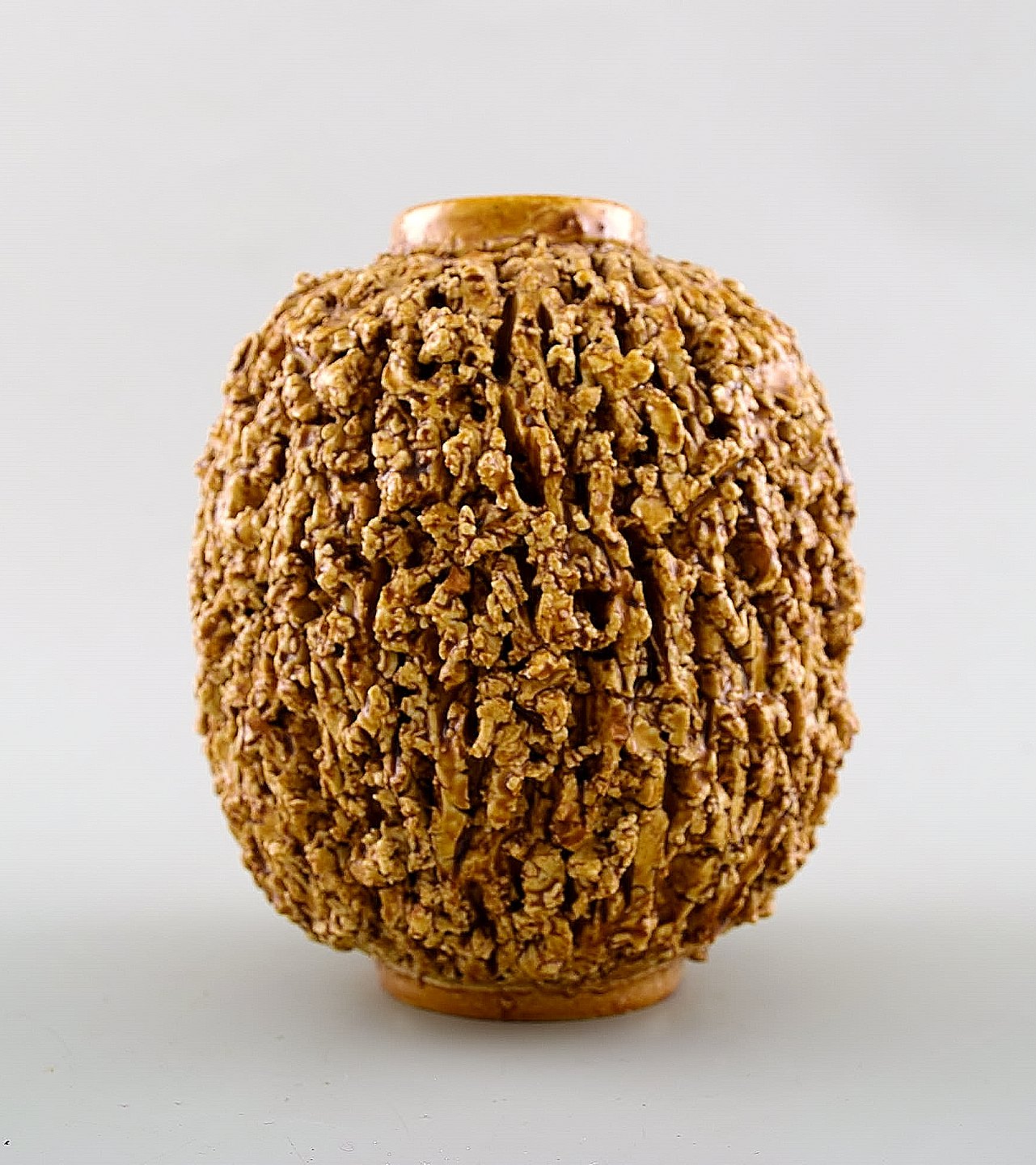 Rörstrand / Rorstrand Gunnar Nylund "Chamotte" vase. "Hedgehog-vase". Measures: 12.5 x 11 cm. Uranium yellow glaze. Stamped. In perfect condition.