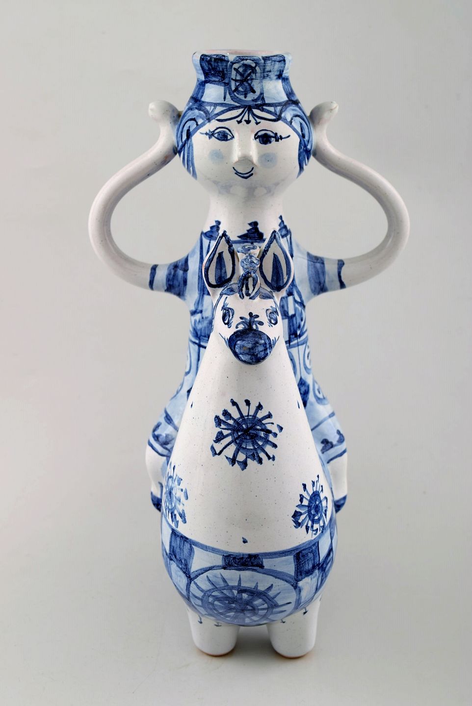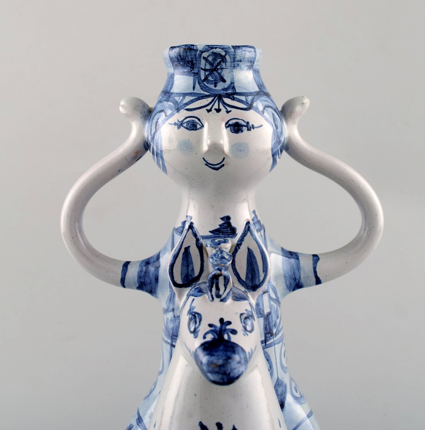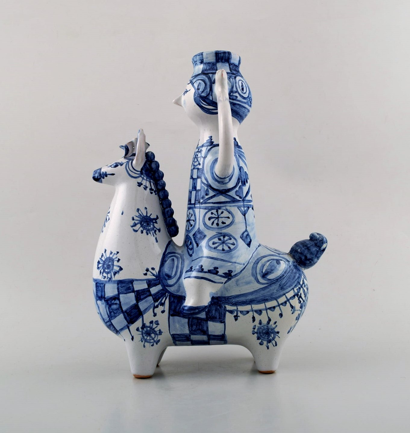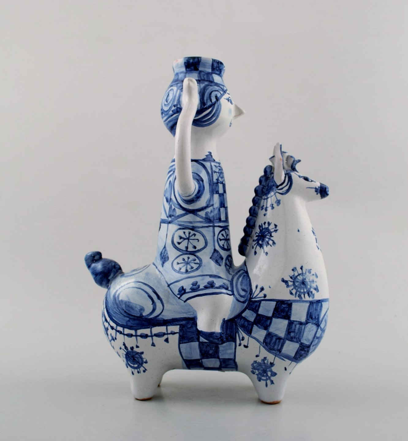Rare Bjorn Wiinblad figure from the blue house. Figure / candlestick, rider to horse for one light. Decoration number L25. This is from 1969. Height 26 cm., Width 20 cm. Perfect condition.