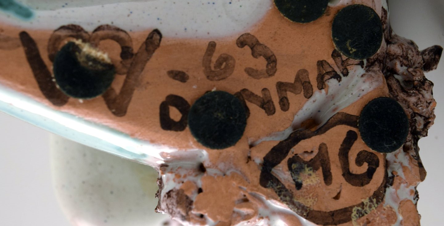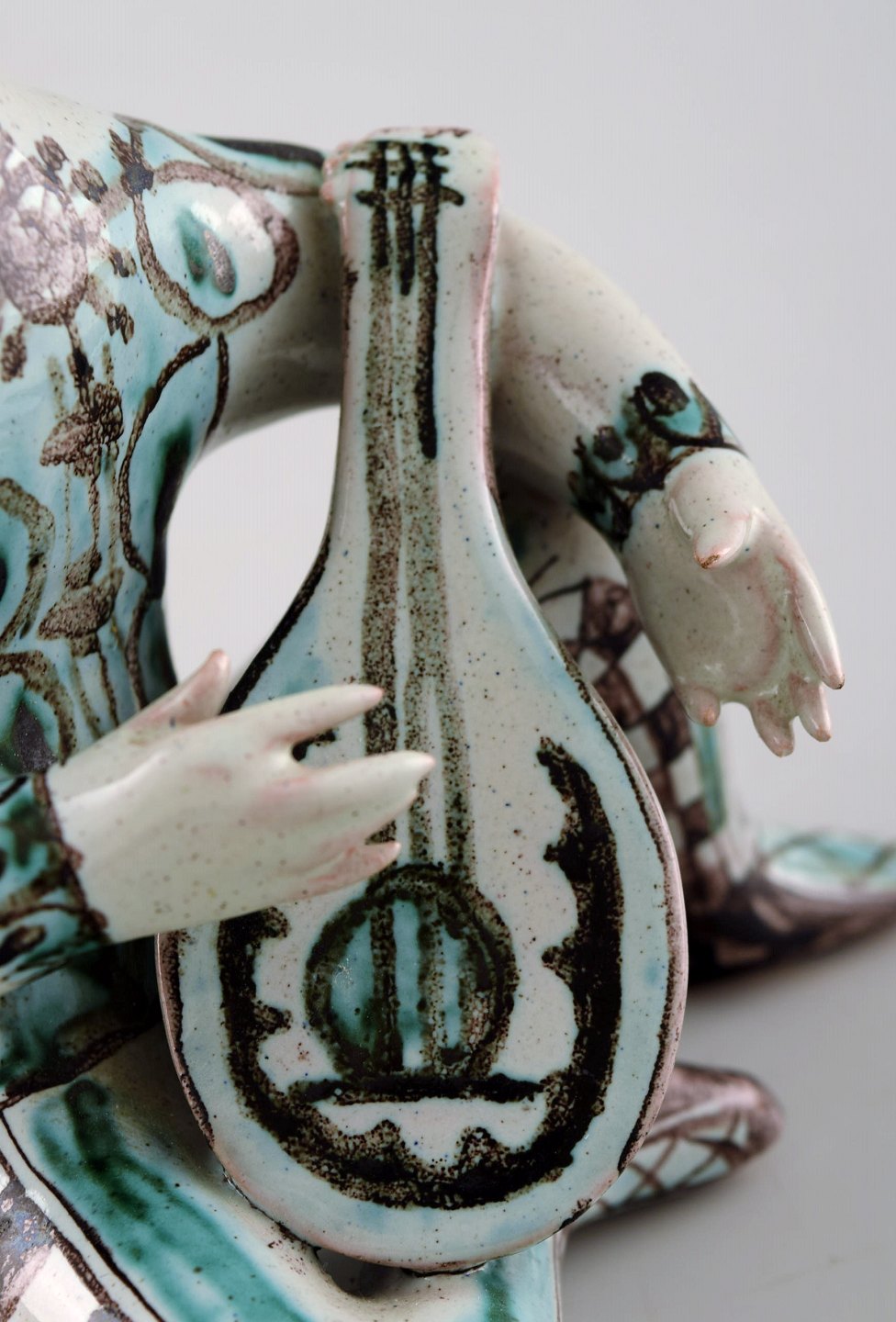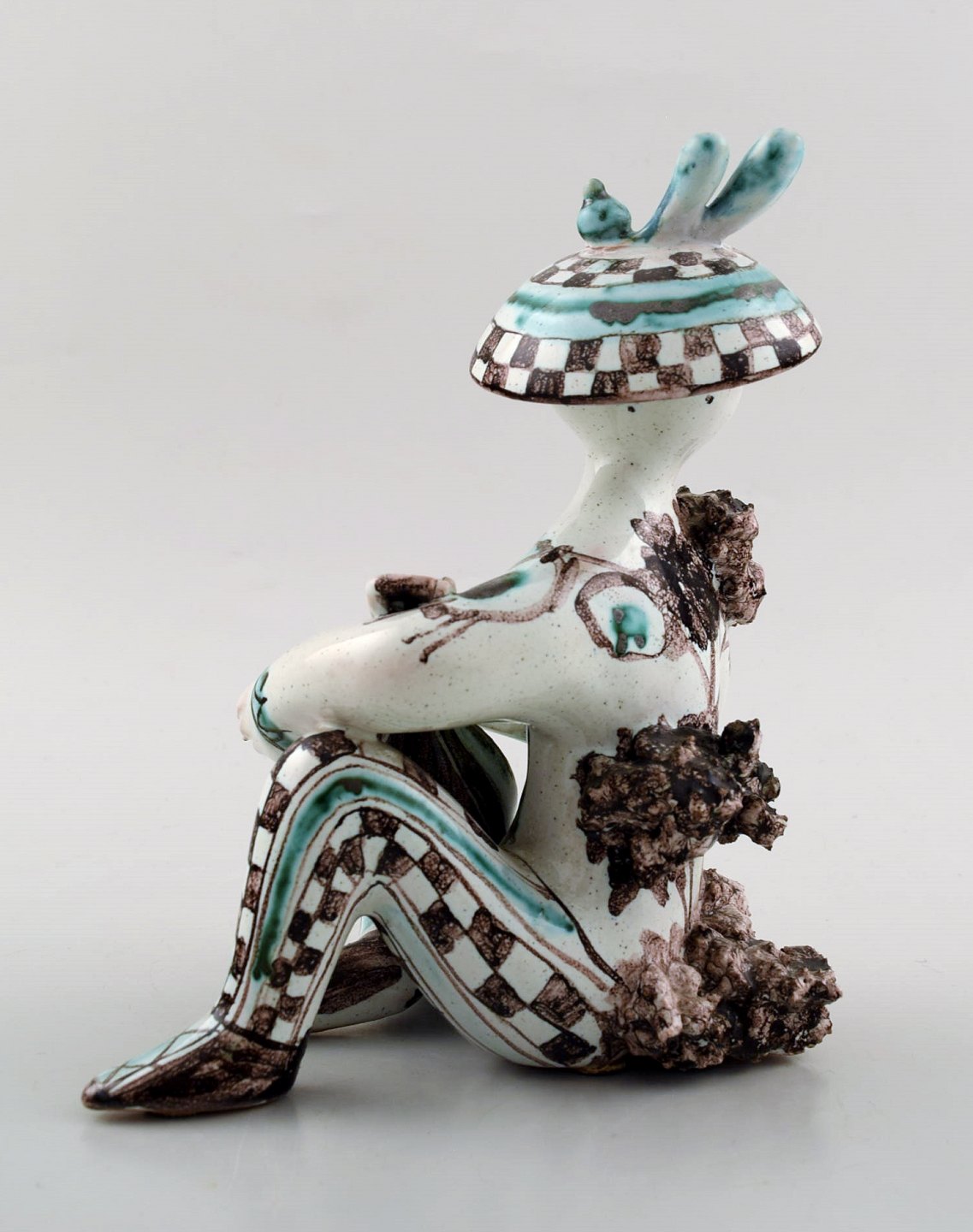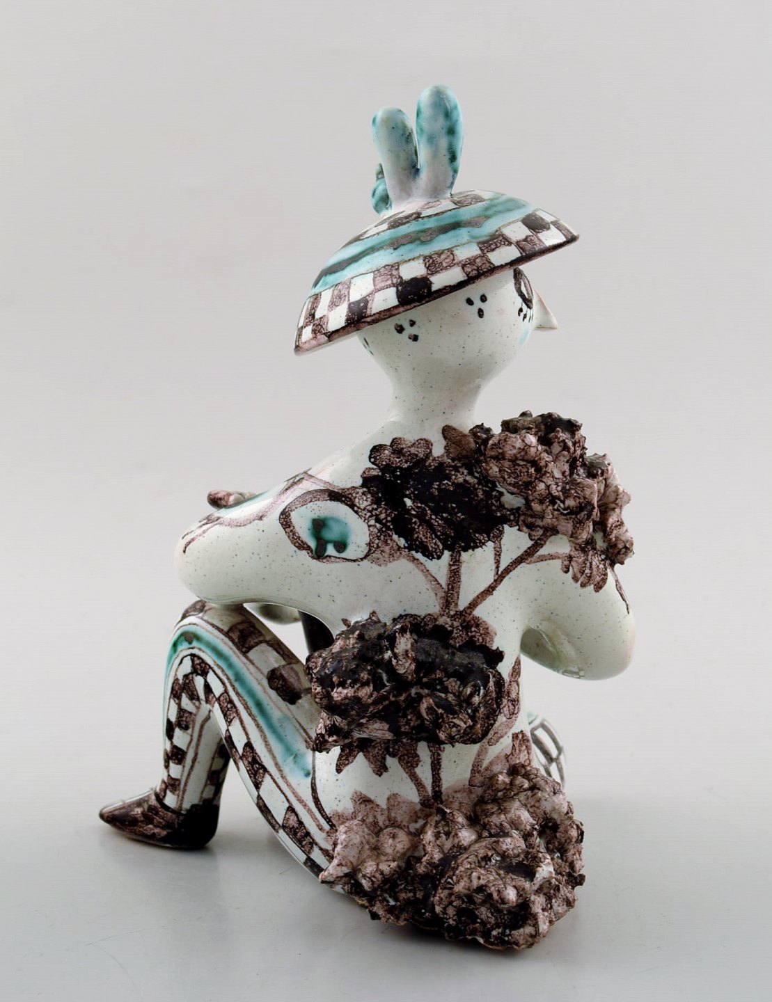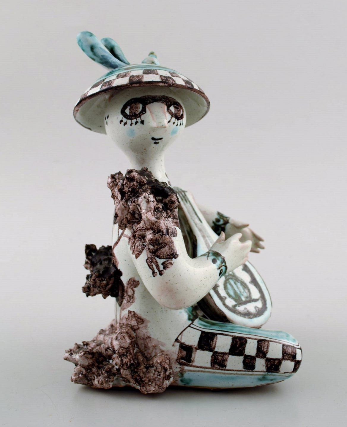Rare Bjørn Wiinblad 1918-2006: Unique figure in multicolored ceramic, lute player from the series "musicians". Signed. 1963. Model M6. Height 17 cm. Width 11.5 cm. In perfect condition.
