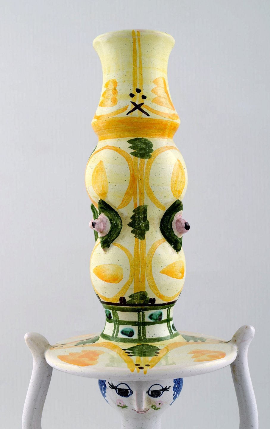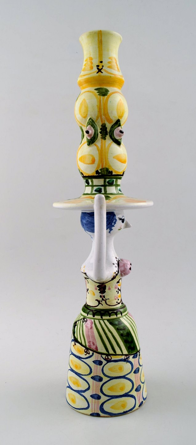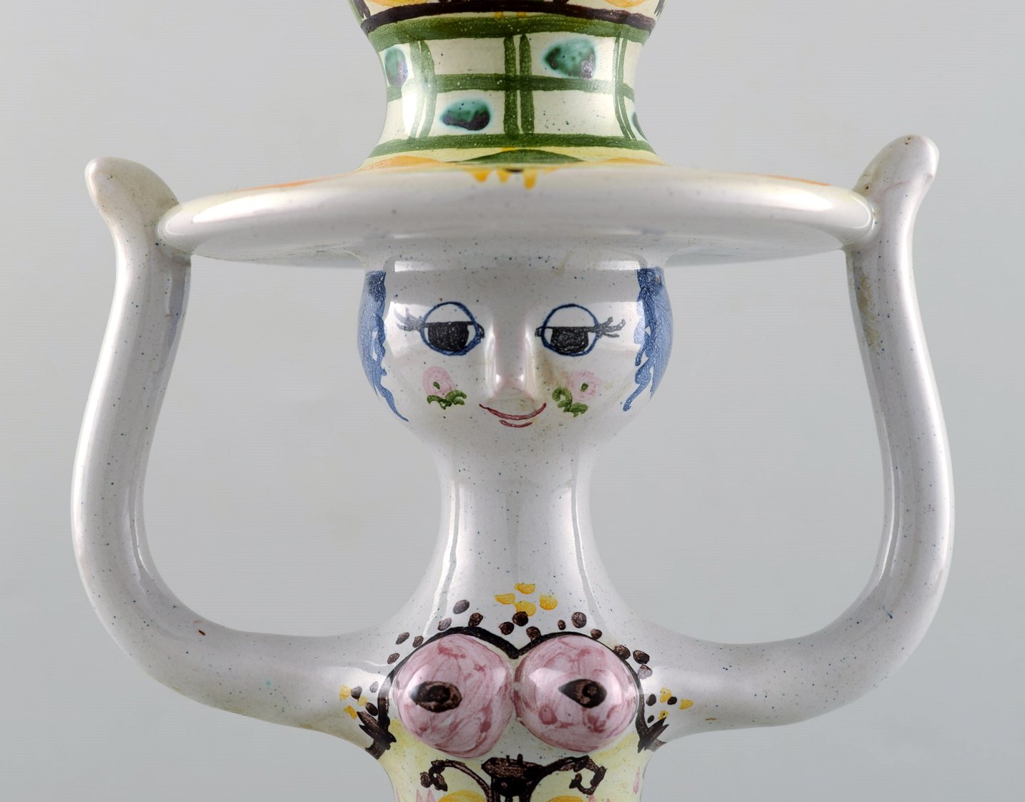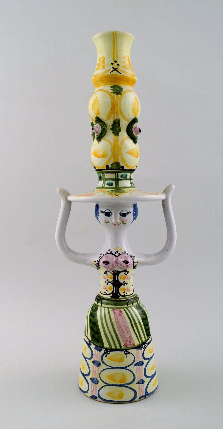 Bjørn Wiinblad. Lysestage L11. GROTESK HATTEDAME. Det blå hus. Højde 39,5 cm. Monogram. 1973. I perfekt stand.
