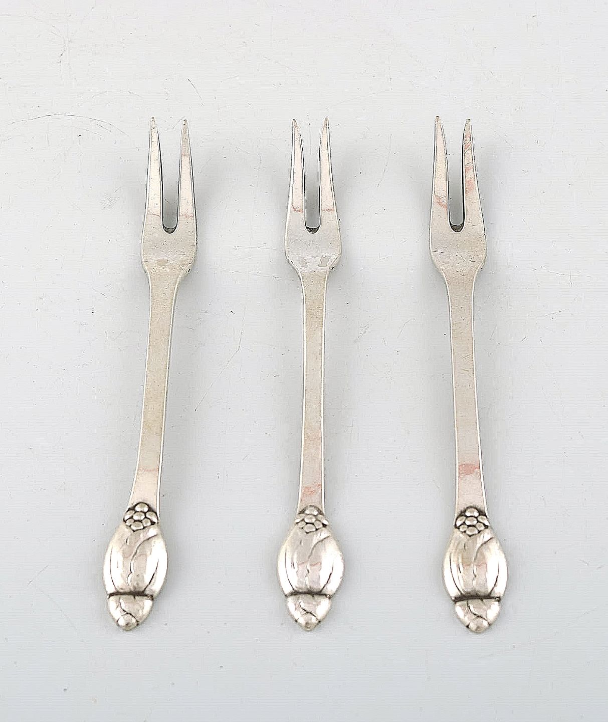 Evald Nielsen number 6, three forks in silver. Measures 11.8 cm. Stamped. In perfect condition.