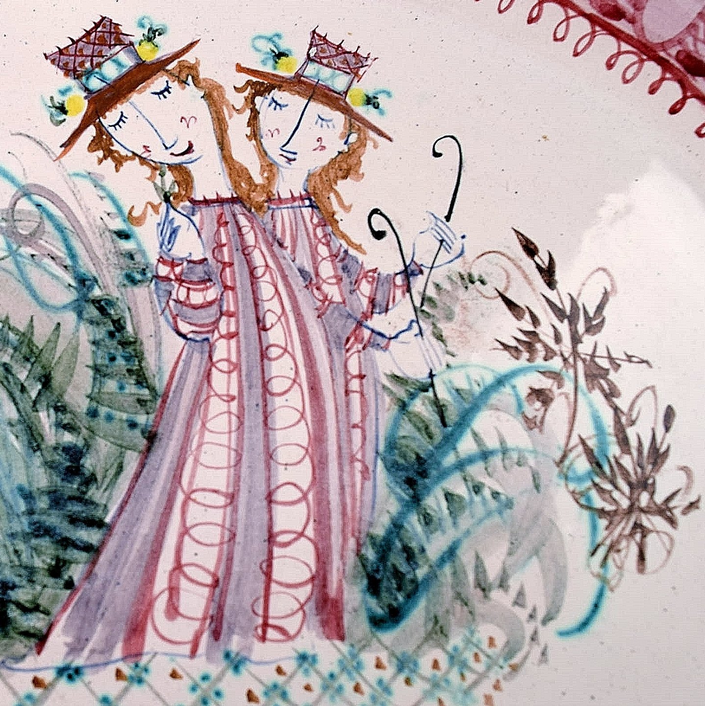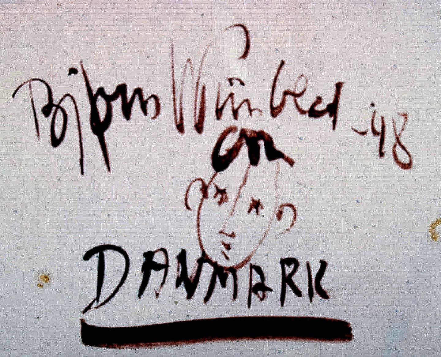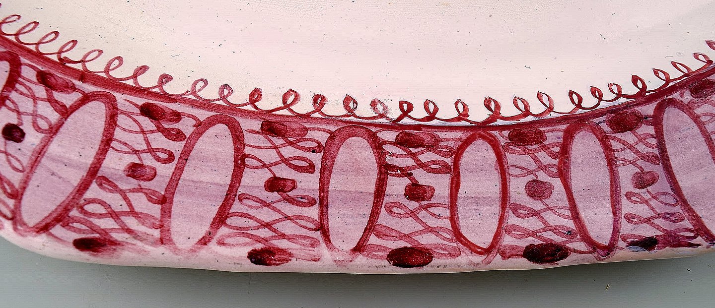 Bjorn Wiinblad: Rare and early unique large oblong red platter decorated with a woman with flowers in her hair, Bjorn Wiinblad 1950. Length: 36 cm. x 28 cm. wide. In perfect condition. Signed 1950.