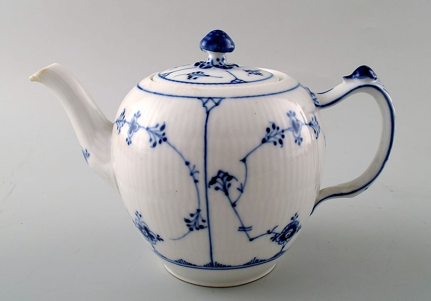 Kgl. Musselmalet riflet Kongelig porcelæn. Royal Copenhagen Musselmalet, tekande nr. 1/258. 1. sortering. I perfekt stand. Højde 14 cm.