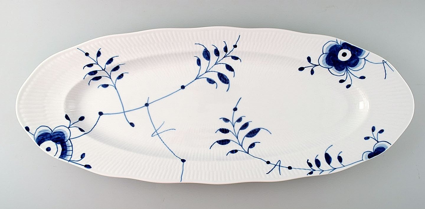 Royal Copenhagen / Royal Copenhagen P. Karen Kjældgård-Larsen. Blue Fluted Mega. Oval fish dish, porcelain, no. 389. 1st. factory quality. In perfect condition. In original box. Length 61 cm.