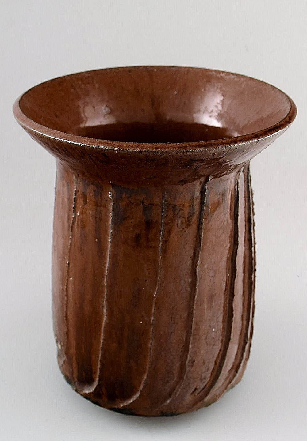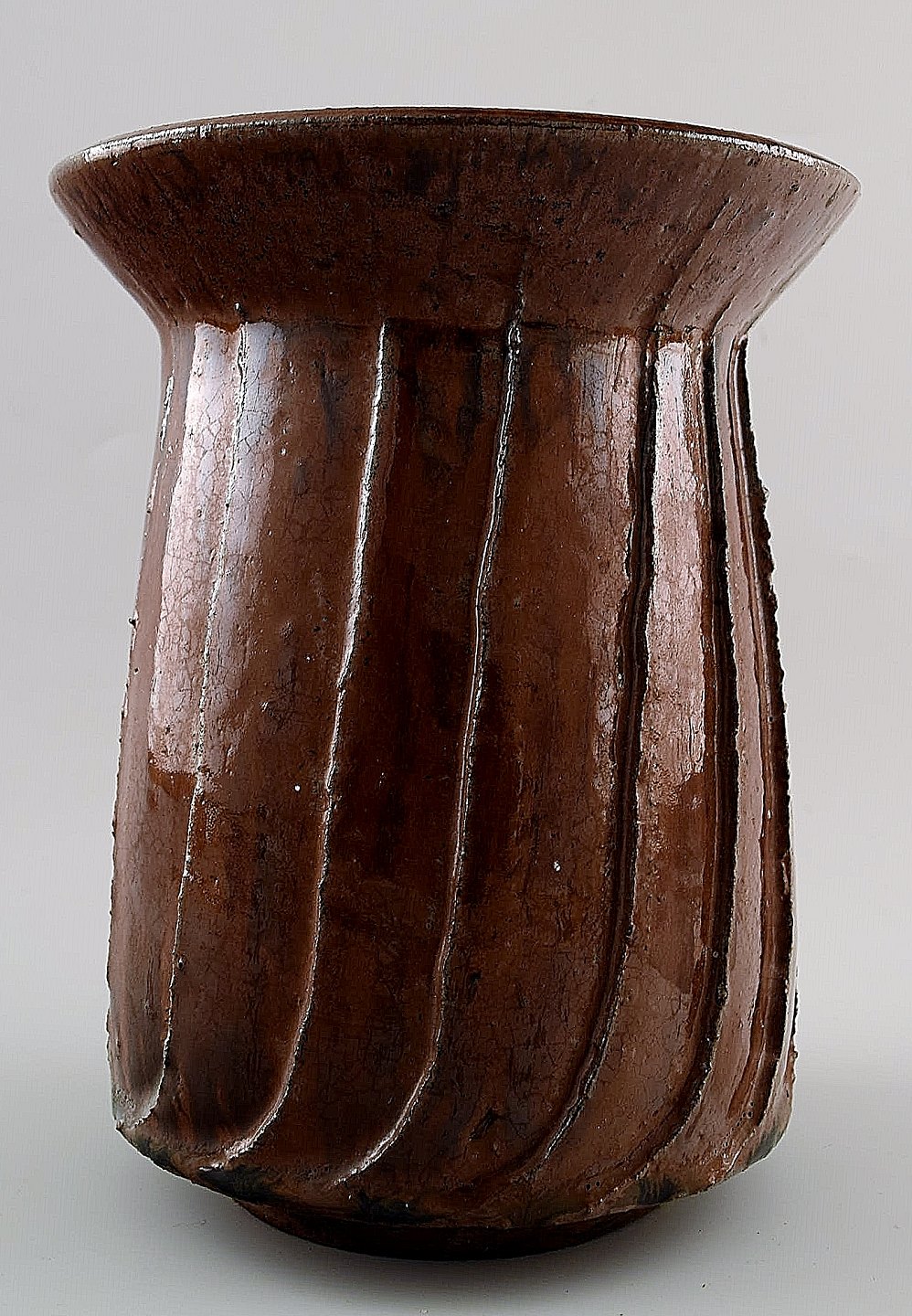 Swedish ceramist, ceramic vase in rustic style. Signed. 1980s. Measures 17,5 x 14 cm. In perfect condition.