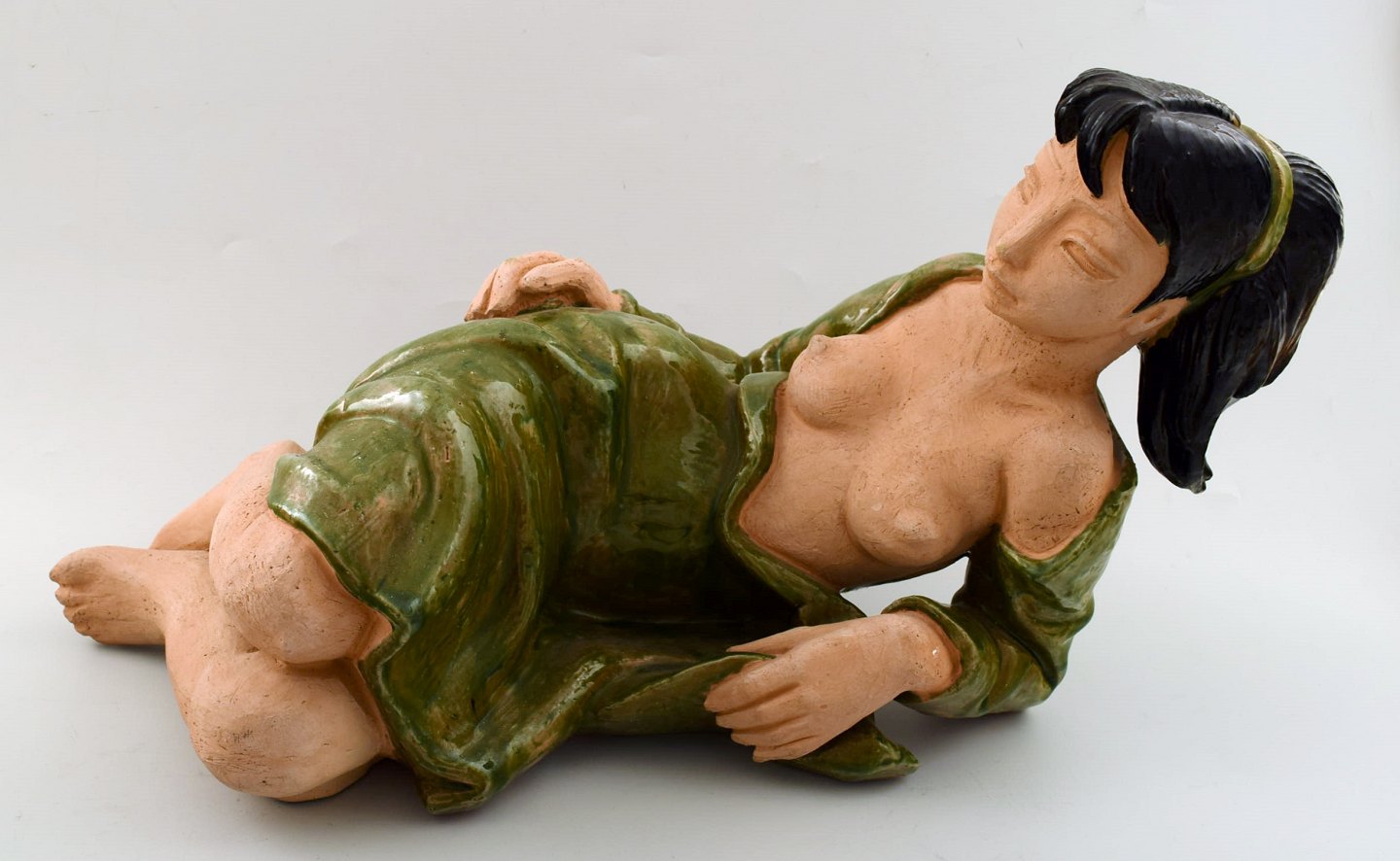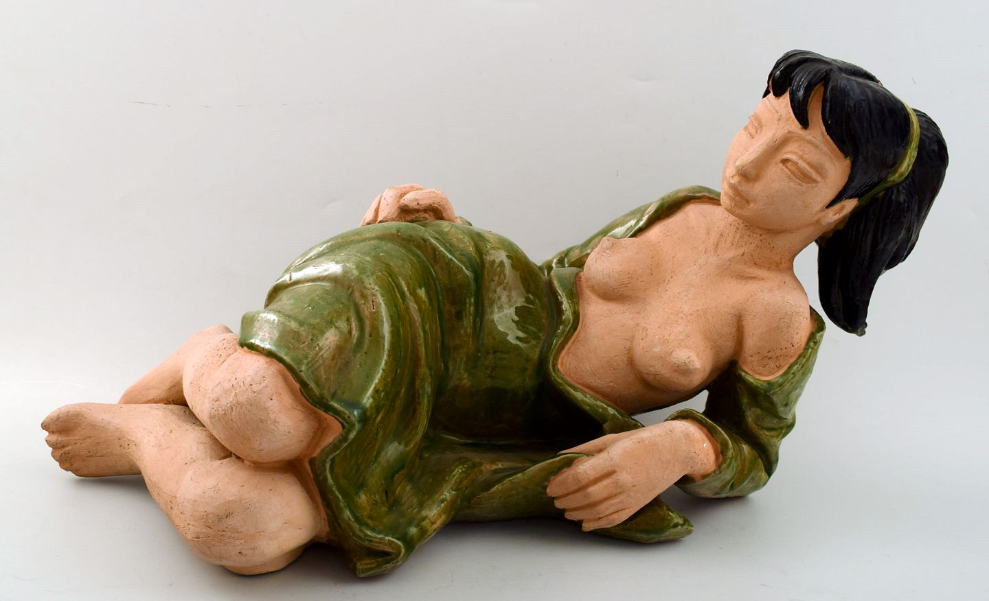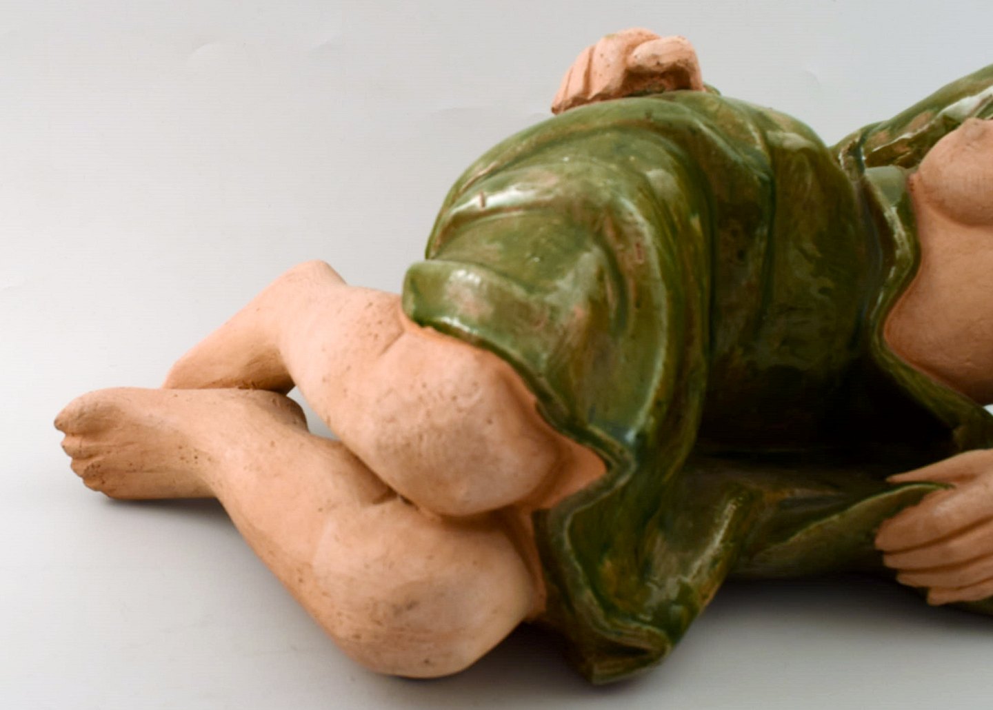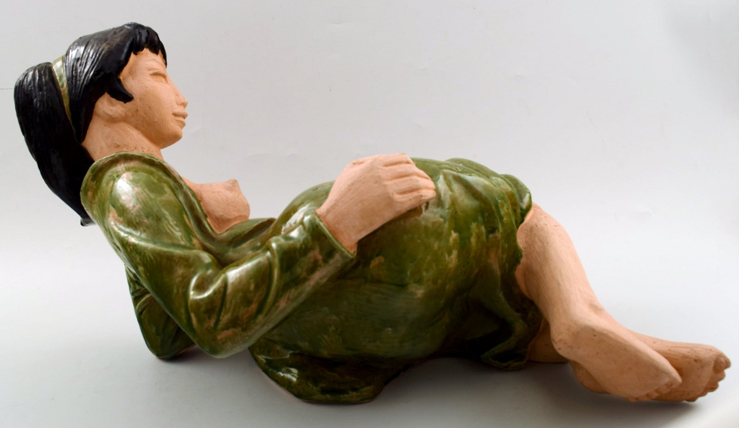 Helge Christoffersen, Eget værksted, meget stor unika figur af nøgen ung model. Skulptur i keramik af høj kvalitet, flot glasur. Måler 47 x 23 cm. I perfekt stand. Signeret.