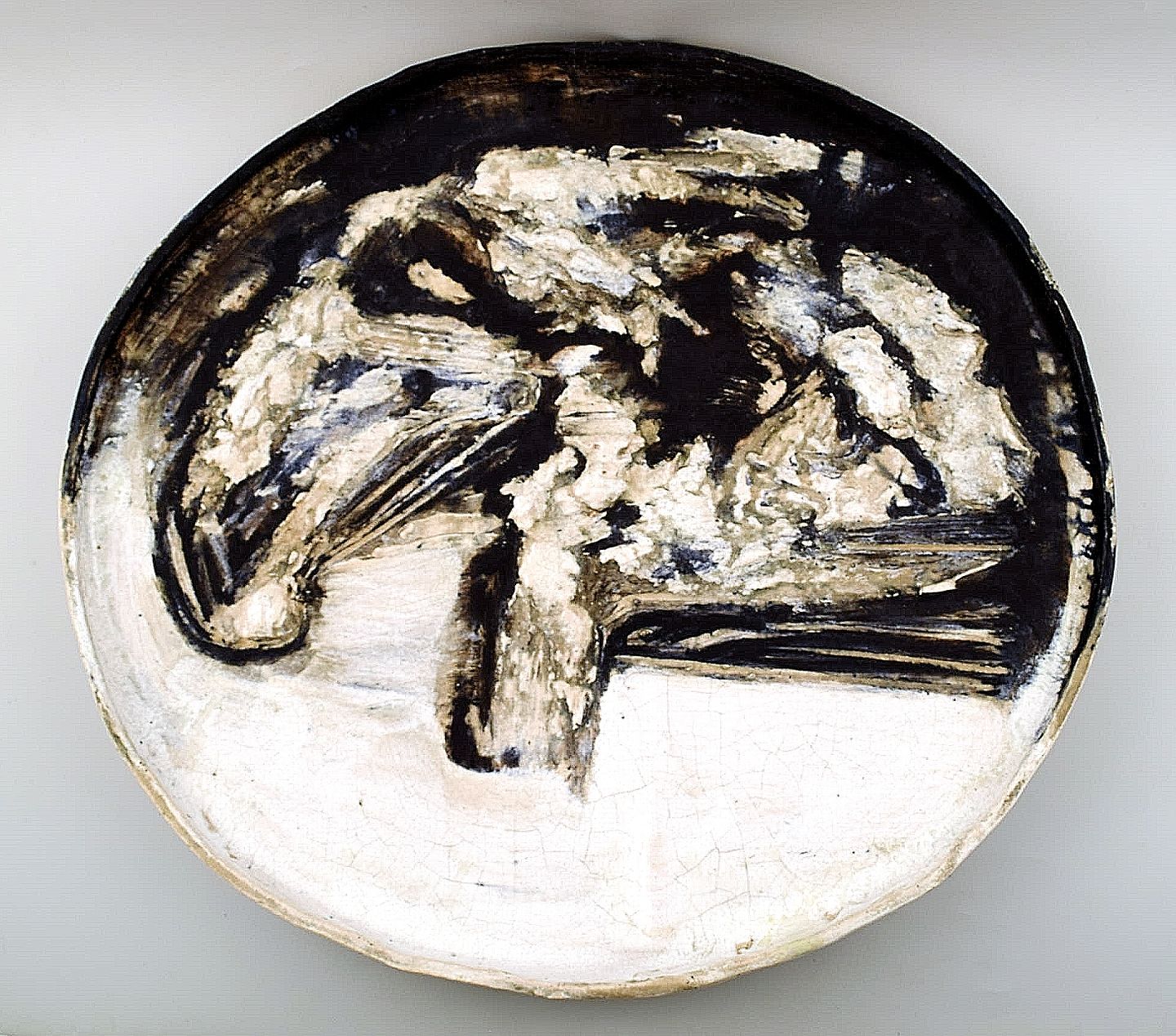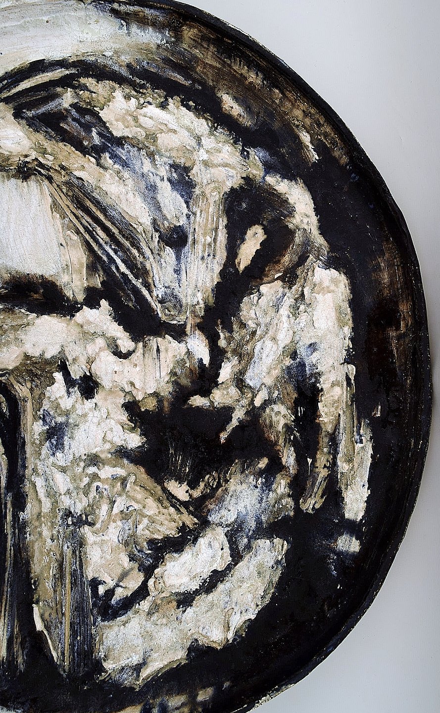 Jeppe Hagedorn-Olsen. Large Wall Plaque / Dish in Ceramic, Abstract Motif. Denmark mid 20 c. In perfect condition. Measures 46 x 42 cm. 3 cm. high. Signed.