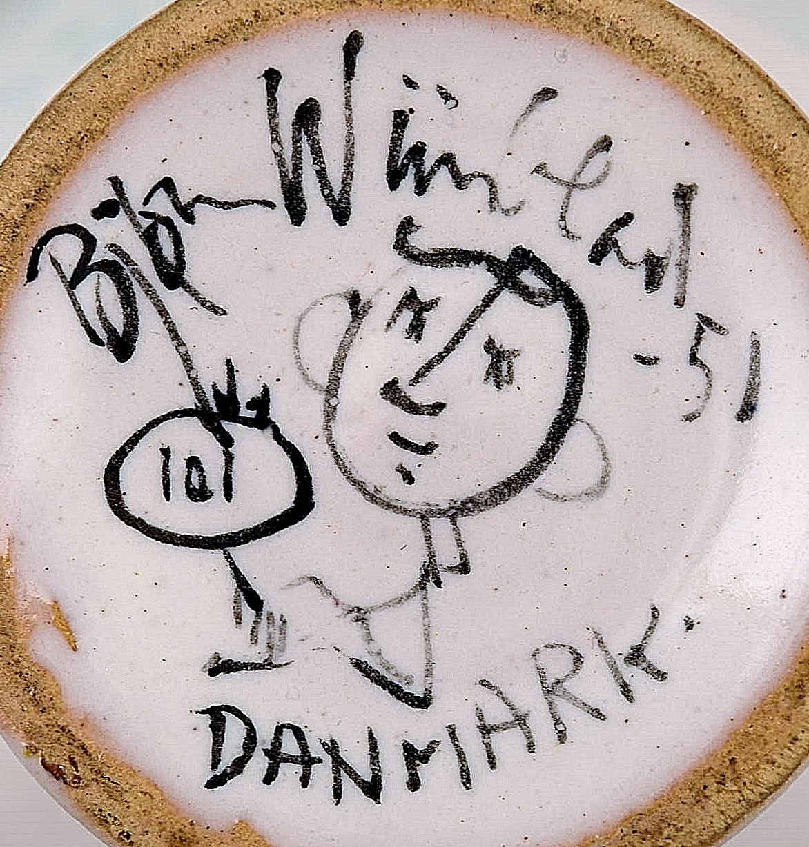 Bjørn Wiinblad : Sjælden og tidlig unika kande i form af kvinde, Bjørn Wiinblad 51. Måler : 12 cm. I perfekt stand. Signeret, 1951.