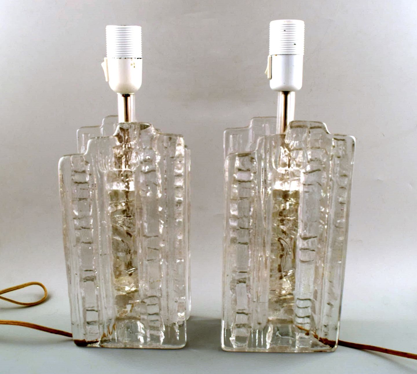Skandinavisk designer, et par kunstglas bordlamper. Måler : 39 cm. inkl. fatning x 14 cm. I perfekt stand. 1970/80´erne. Ustemplet.