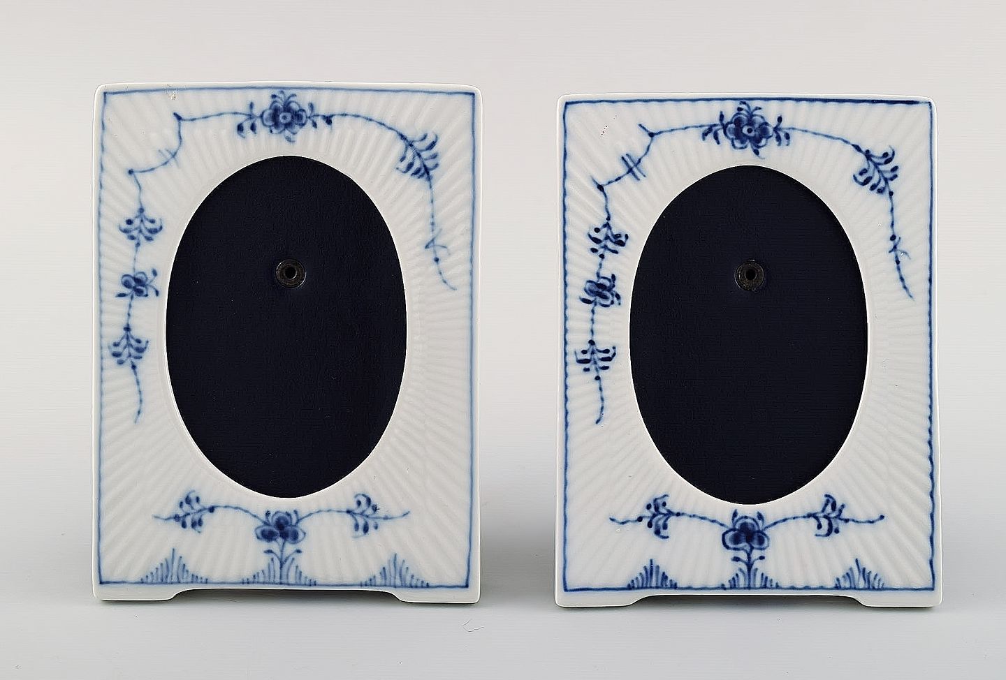 Sjælden Musselmalet Riflet fotoramme fra Royal Copenhagen. 2 på lager. 1. sortering. I perfekt stand. Måler : 11,5 cm. x 8,5 cm.