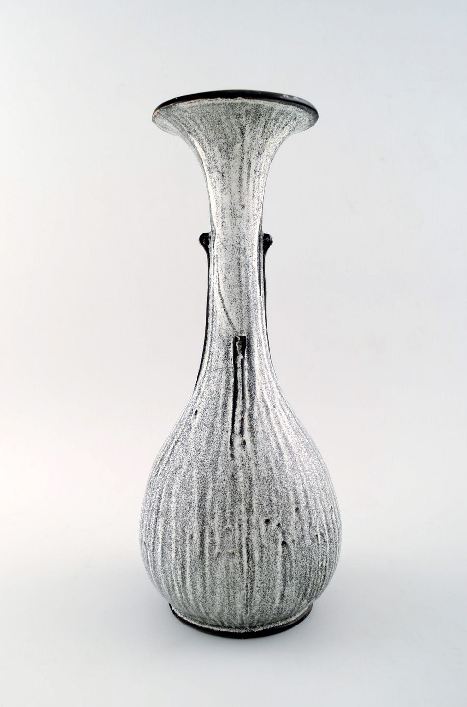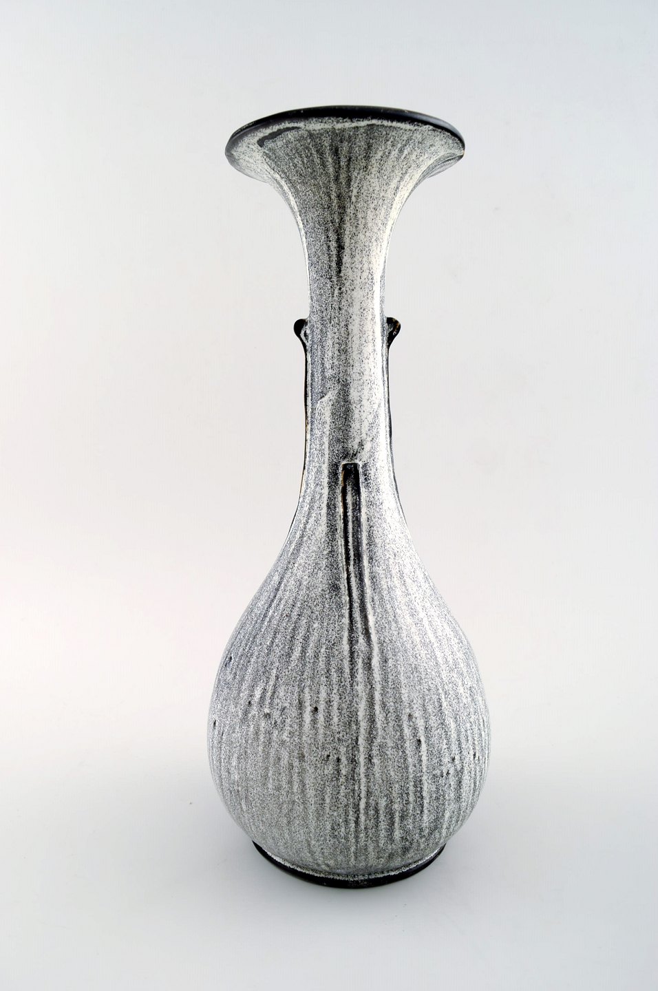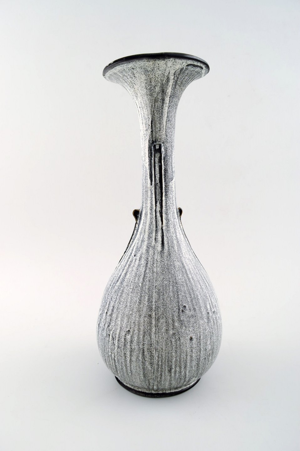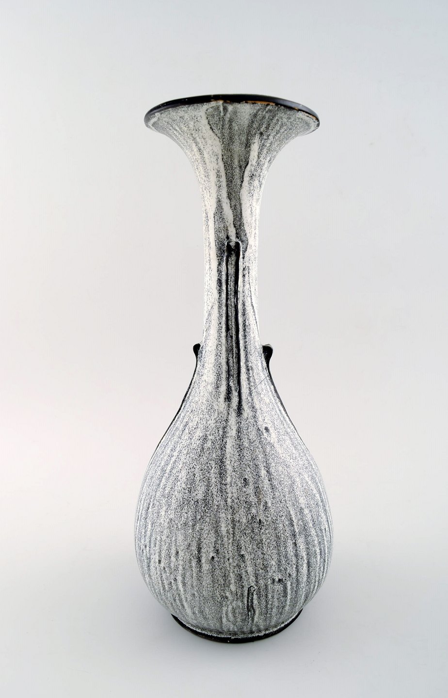 Kähler, Denmark, large glazed vase, 1930s. Designed by Svend Hammershøi. Glaze in black and gray. Measures 32 x 14 cm. Stamped. In perfect condition.