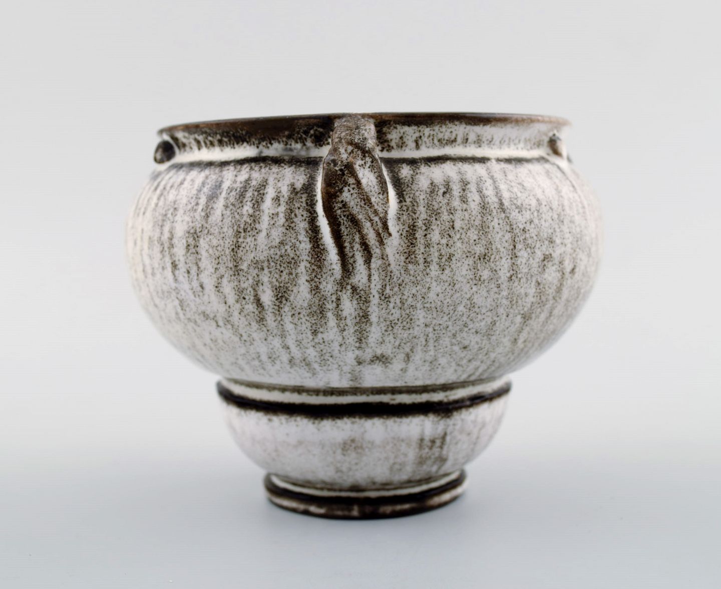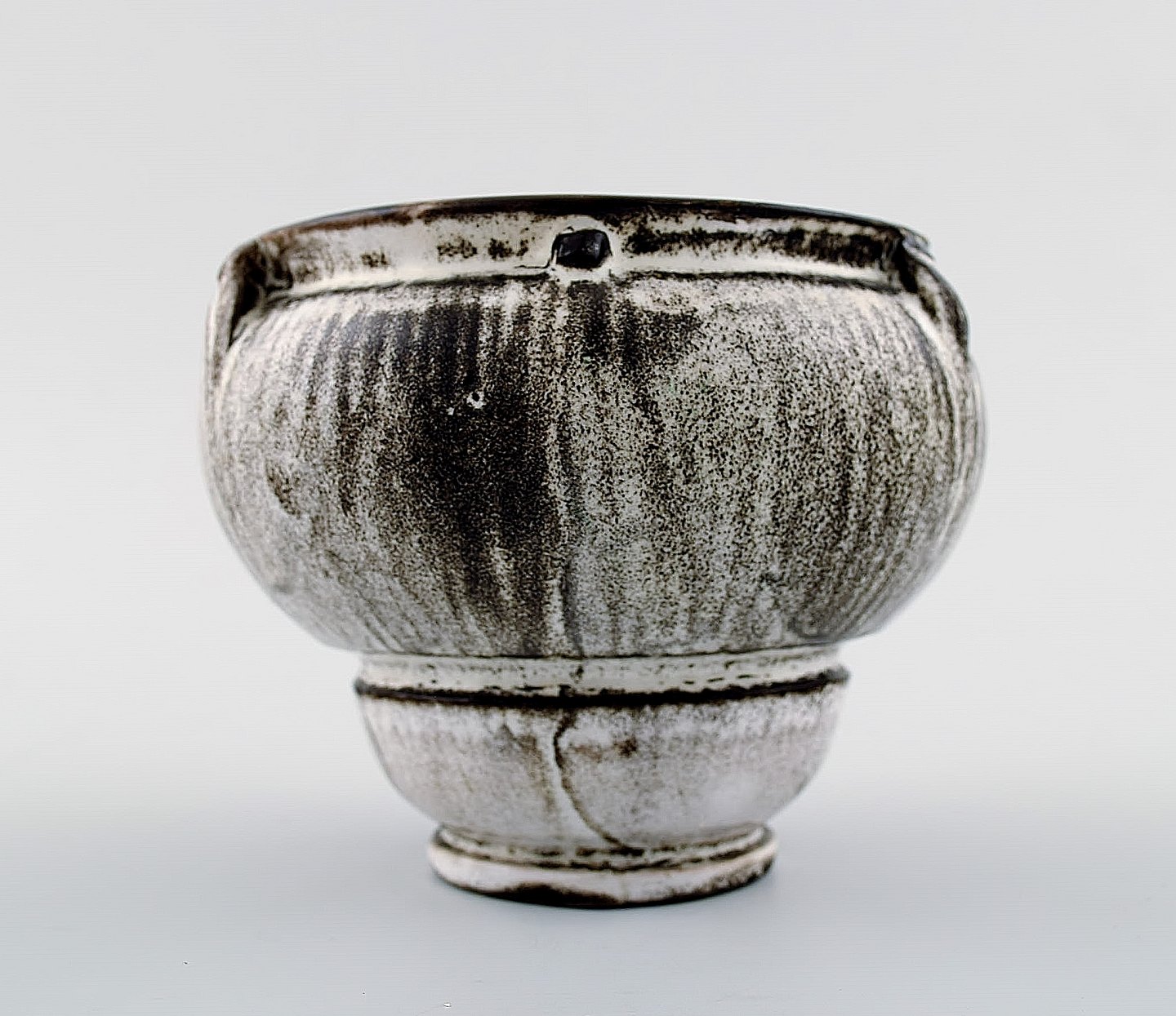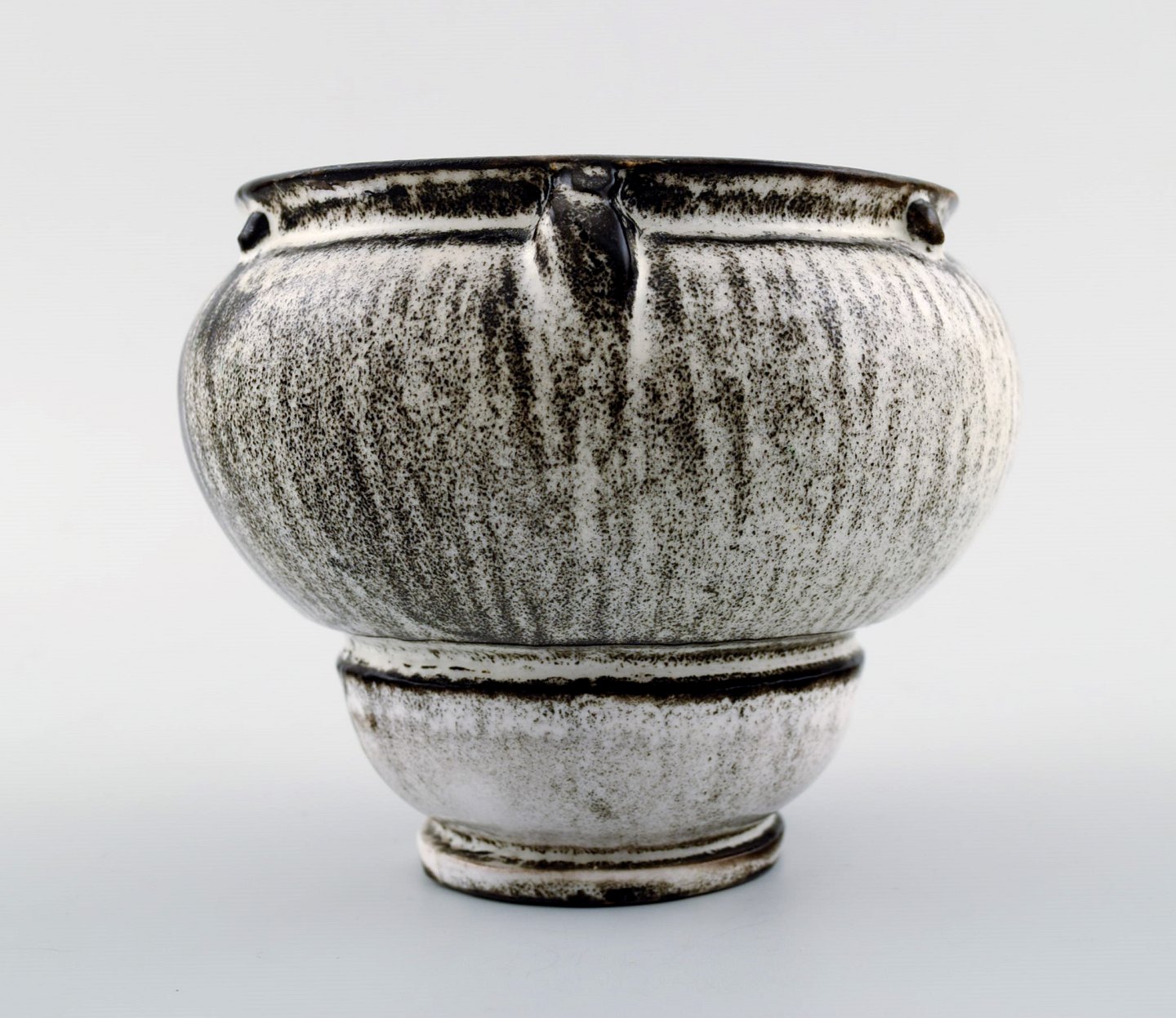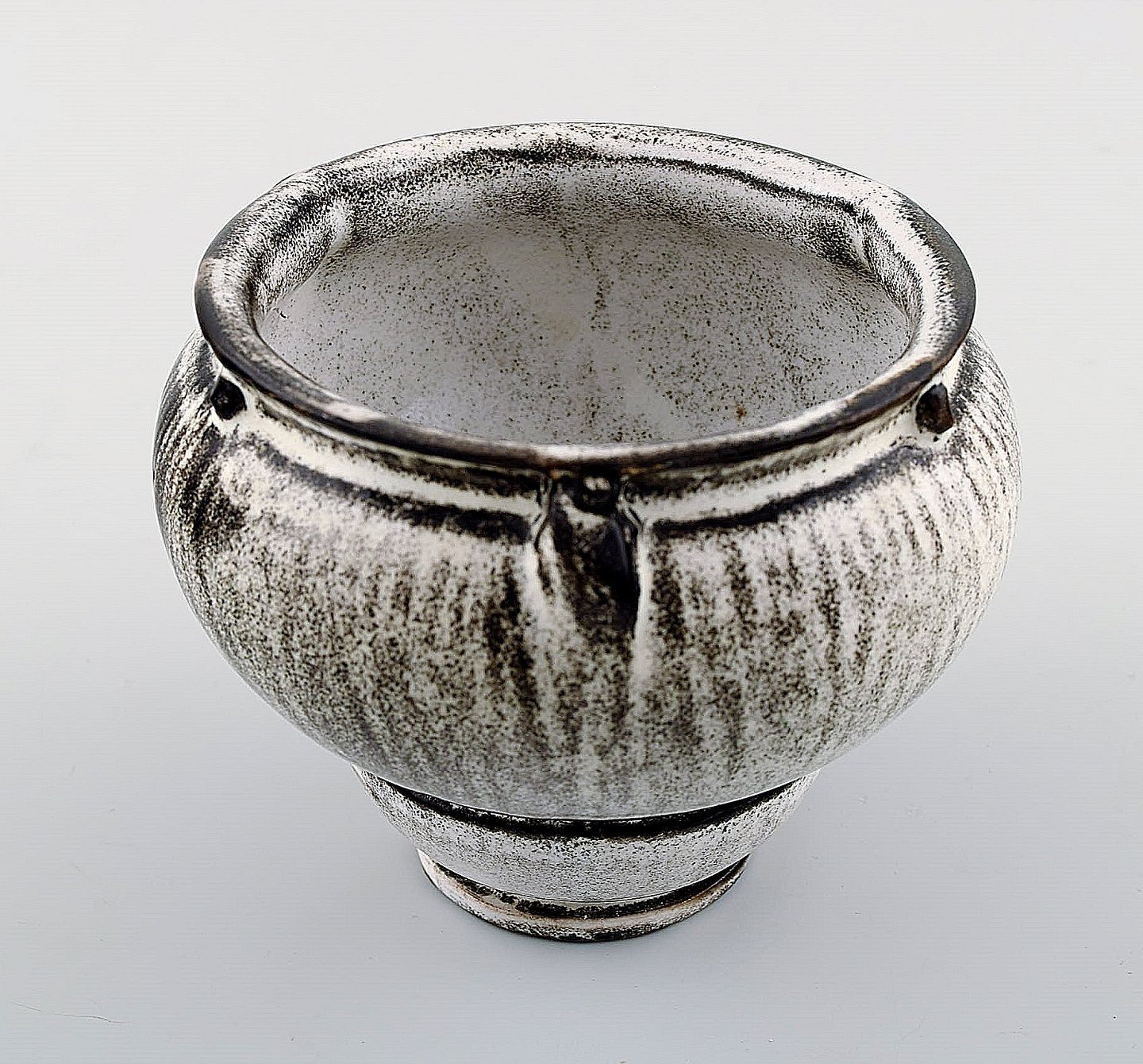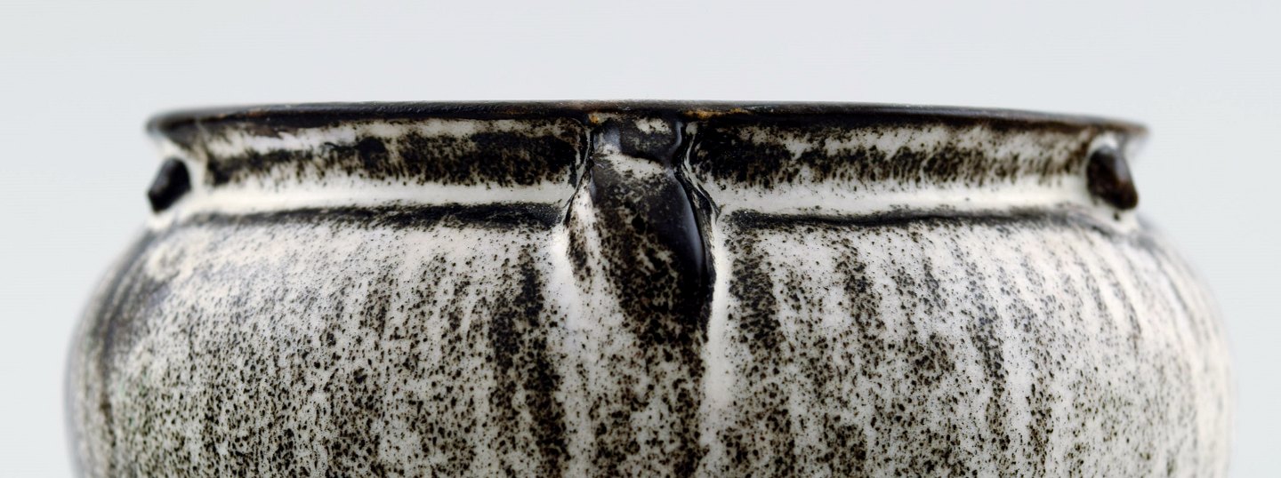Kähler, Denmark, glazed vase, 1930s. Designed by Svend Hammershøi. Glaze in black and gray. Measures 11 x 9 cm. Stamped. In perfect condition.