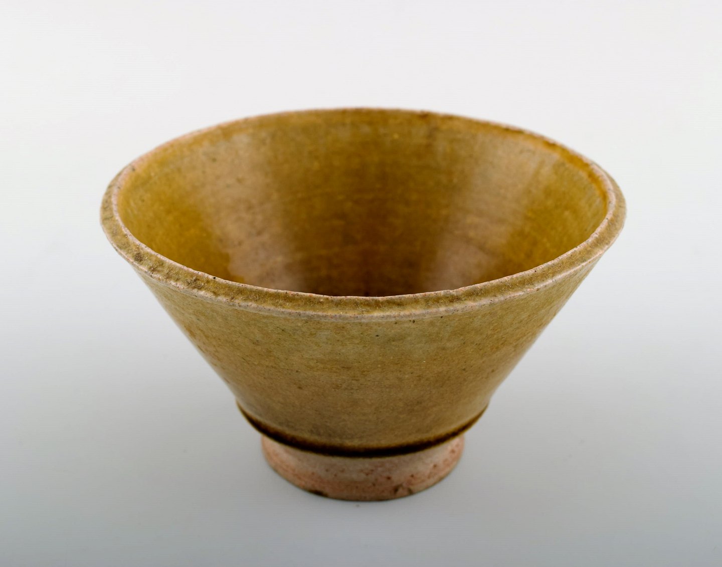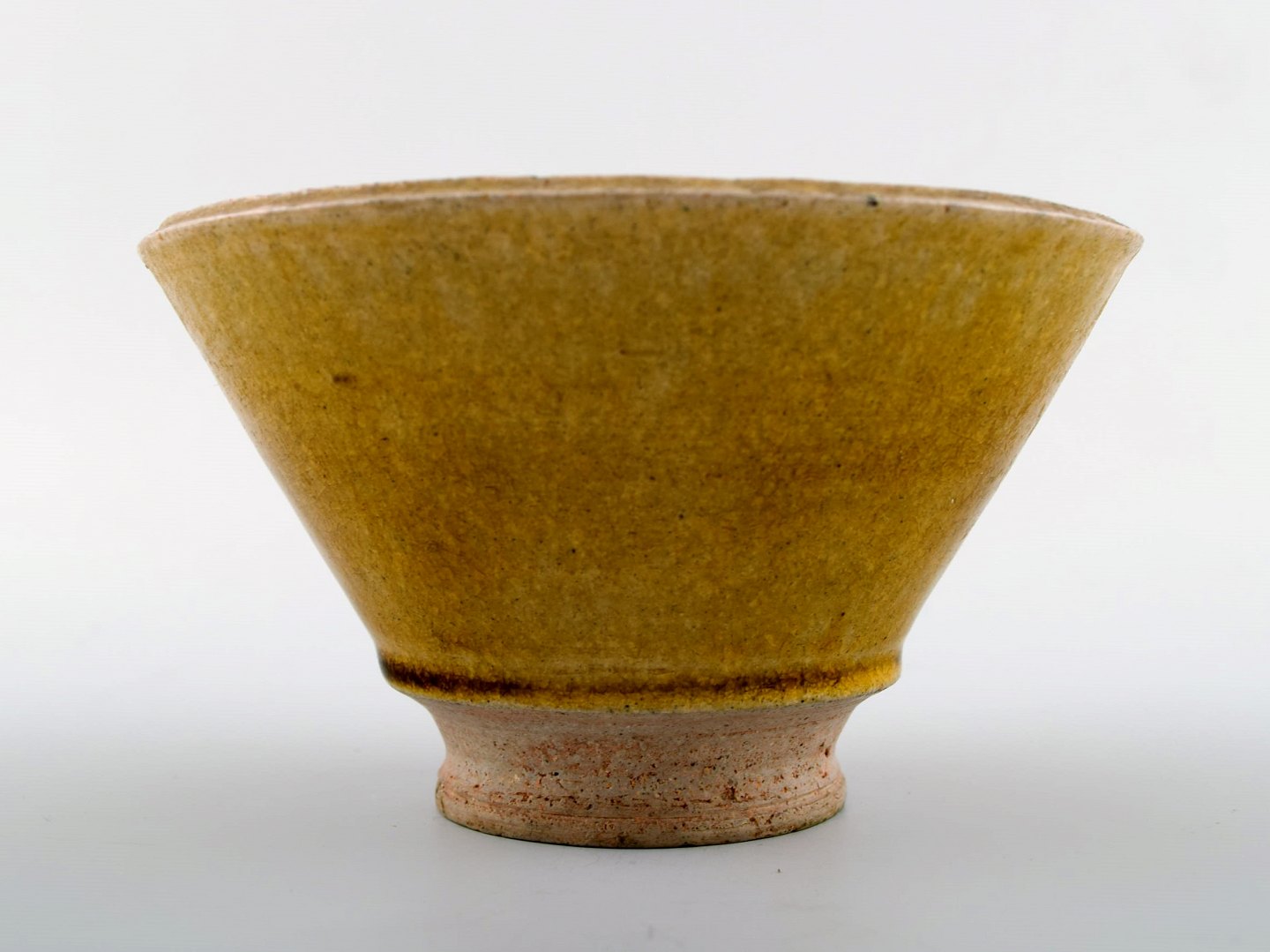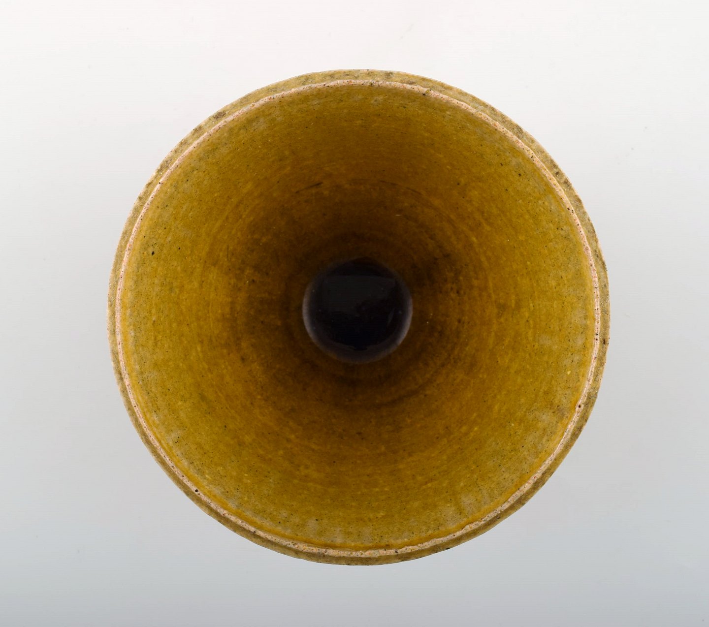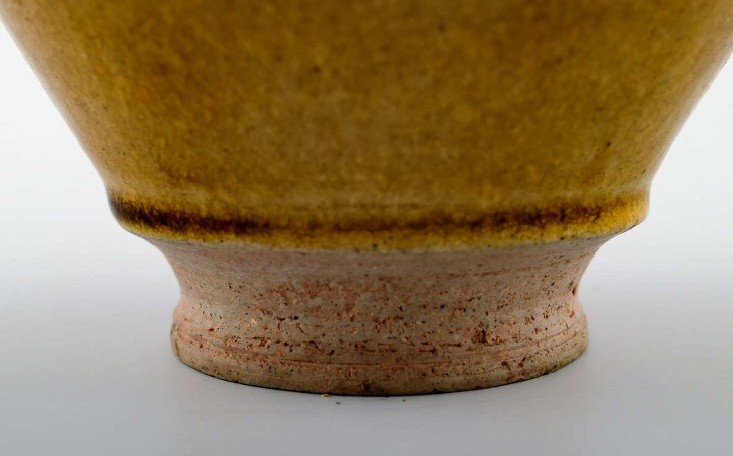 Solveig og Lars Henrik Kähler, Denmark, partially glazed earthenware vase, 1960s. Dark yellow glaze. 13 cm. in diameter. 8 cm. high. Stamped. In perfect condition.
