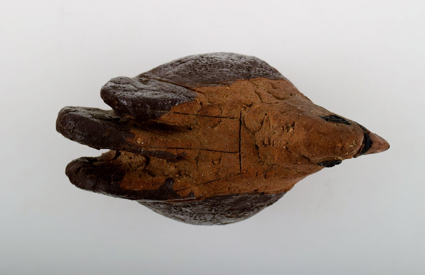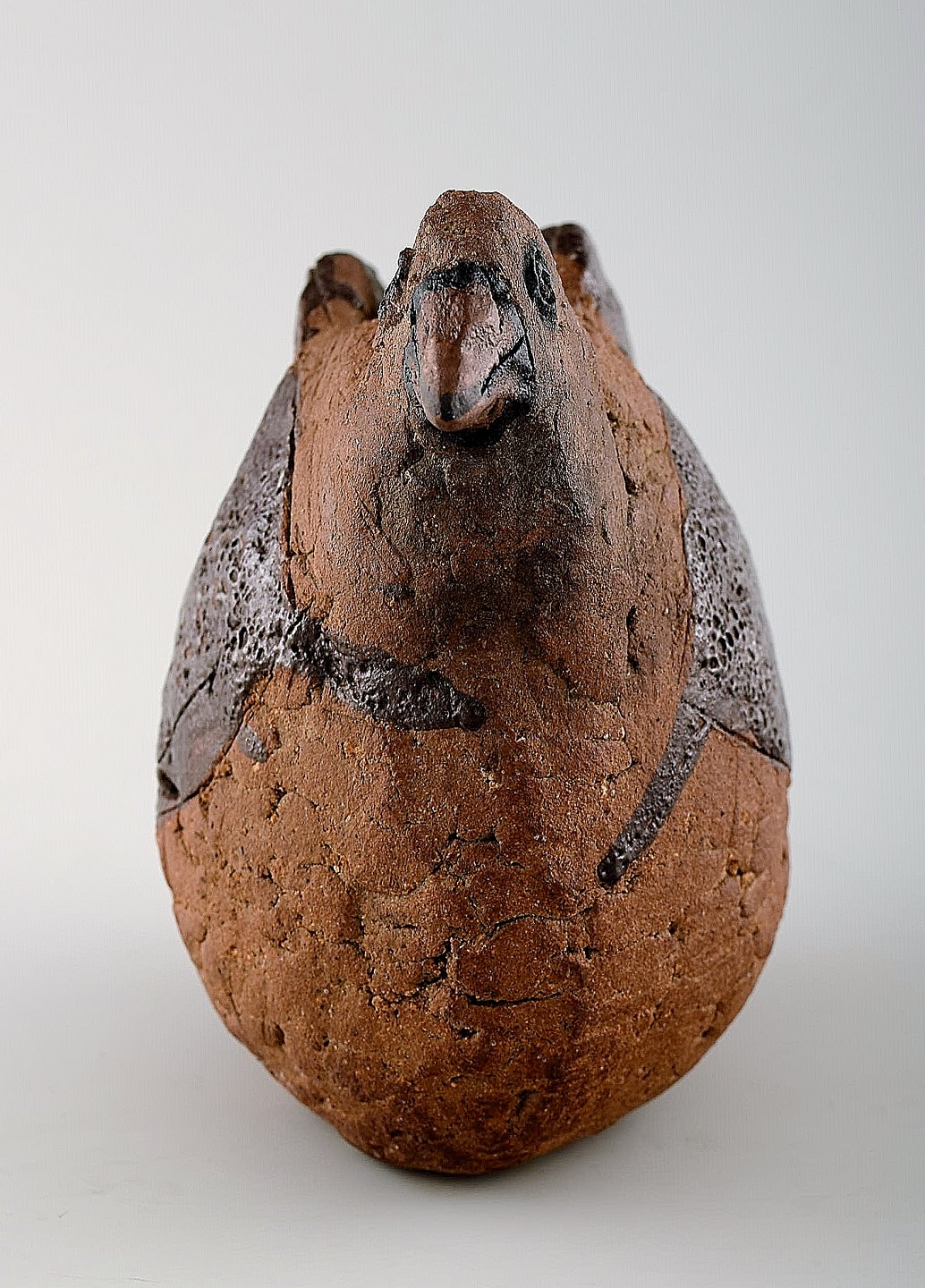 Unika skulptur i form af fabeldyr/fugl, Sten Lykke Madsen, stentøj, delvis glaseret.