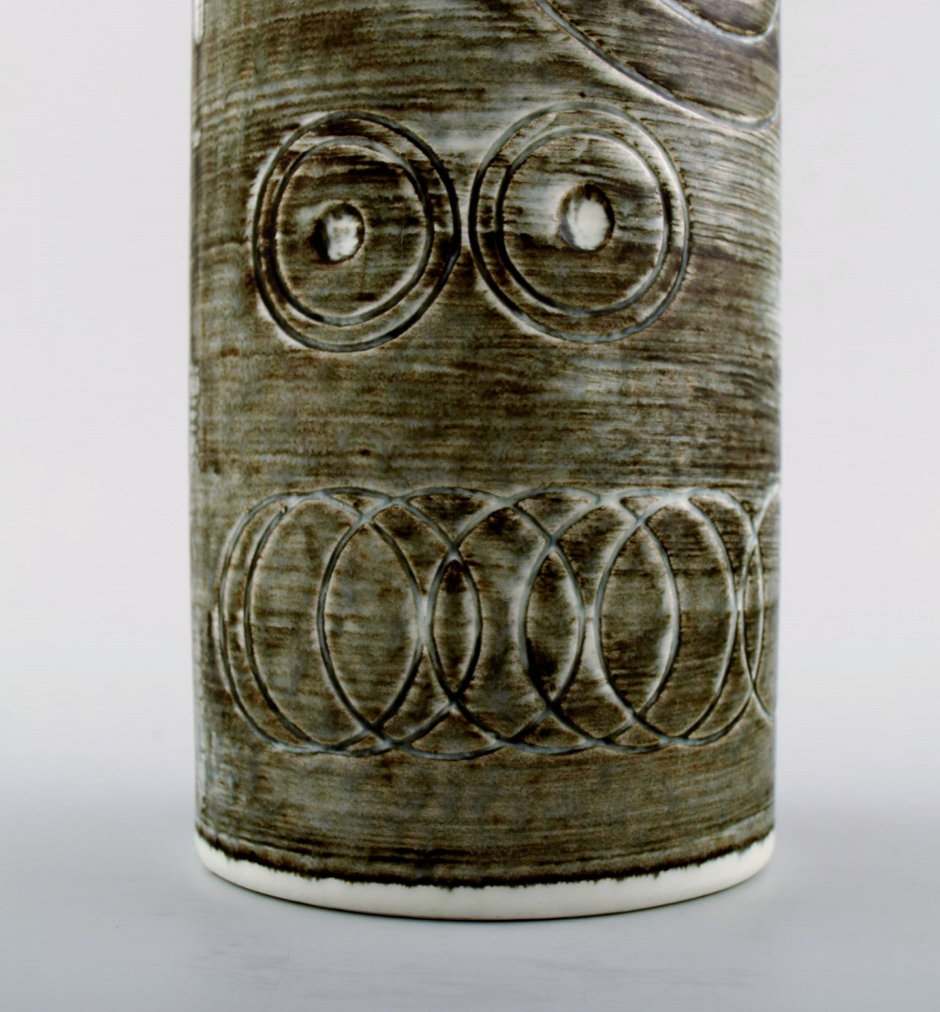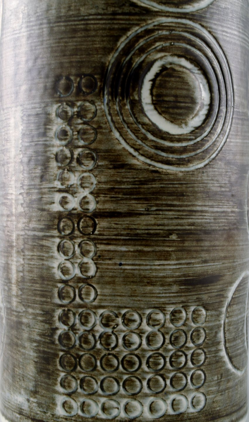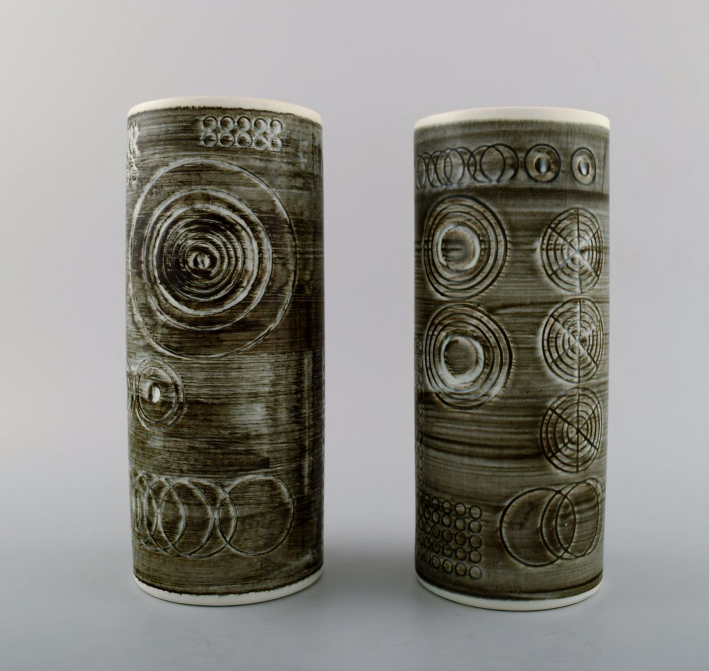 A pair of retro vases "Sarek", stoneware, Olle Alberius, Rörstrand. 1960 / 70s. Stamped "R" Sweden and "oa" for Olle Alberius. Measures 22 x 8.5 cm. In perfect condition. 1st. factory quality.