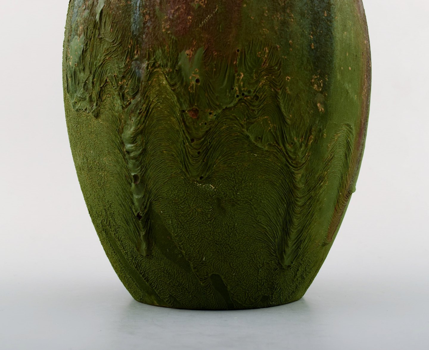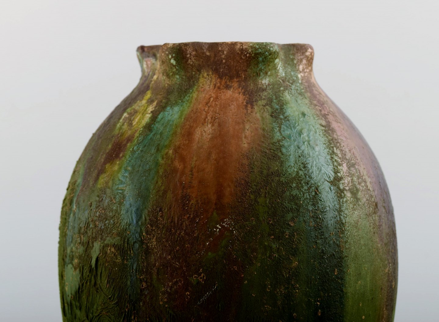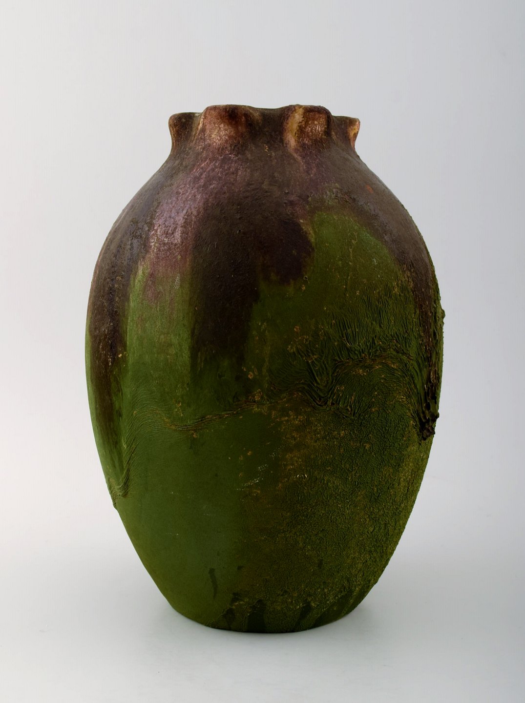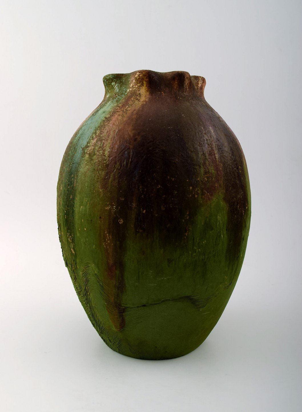Søren Kongstrand & Jens Petersen stil. Keramik vase, grønbrun glasur. Unikaarbejde af høj kvalitet. 1920/30´erne. Måler 23 x 17 cm. I perfekt stand. Usigneret.