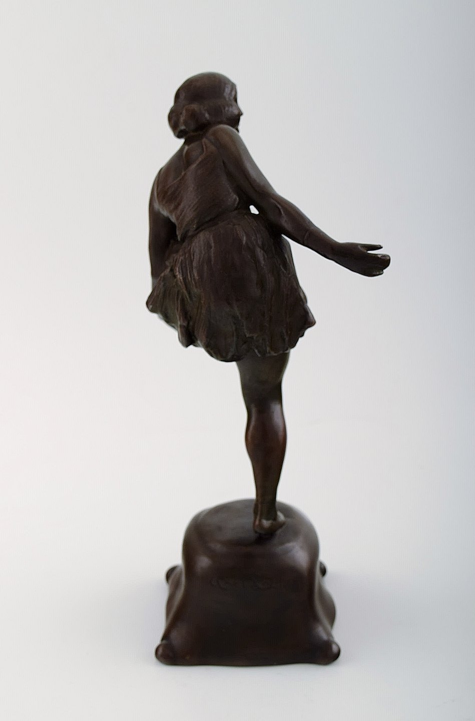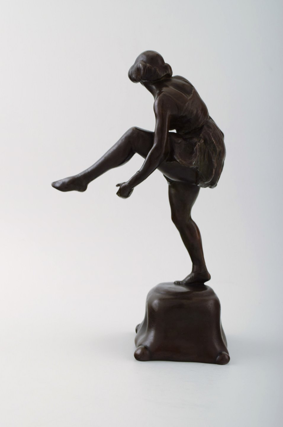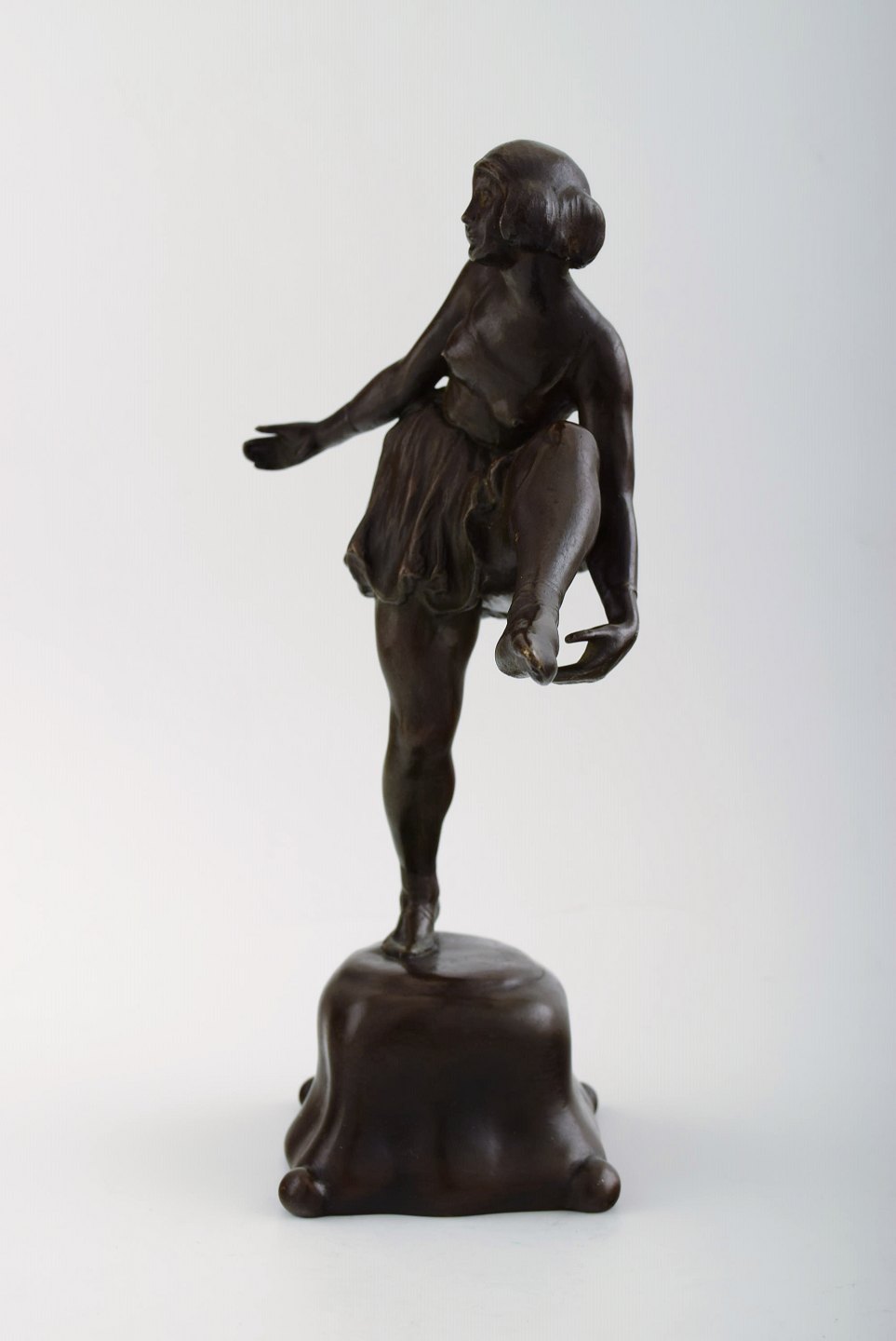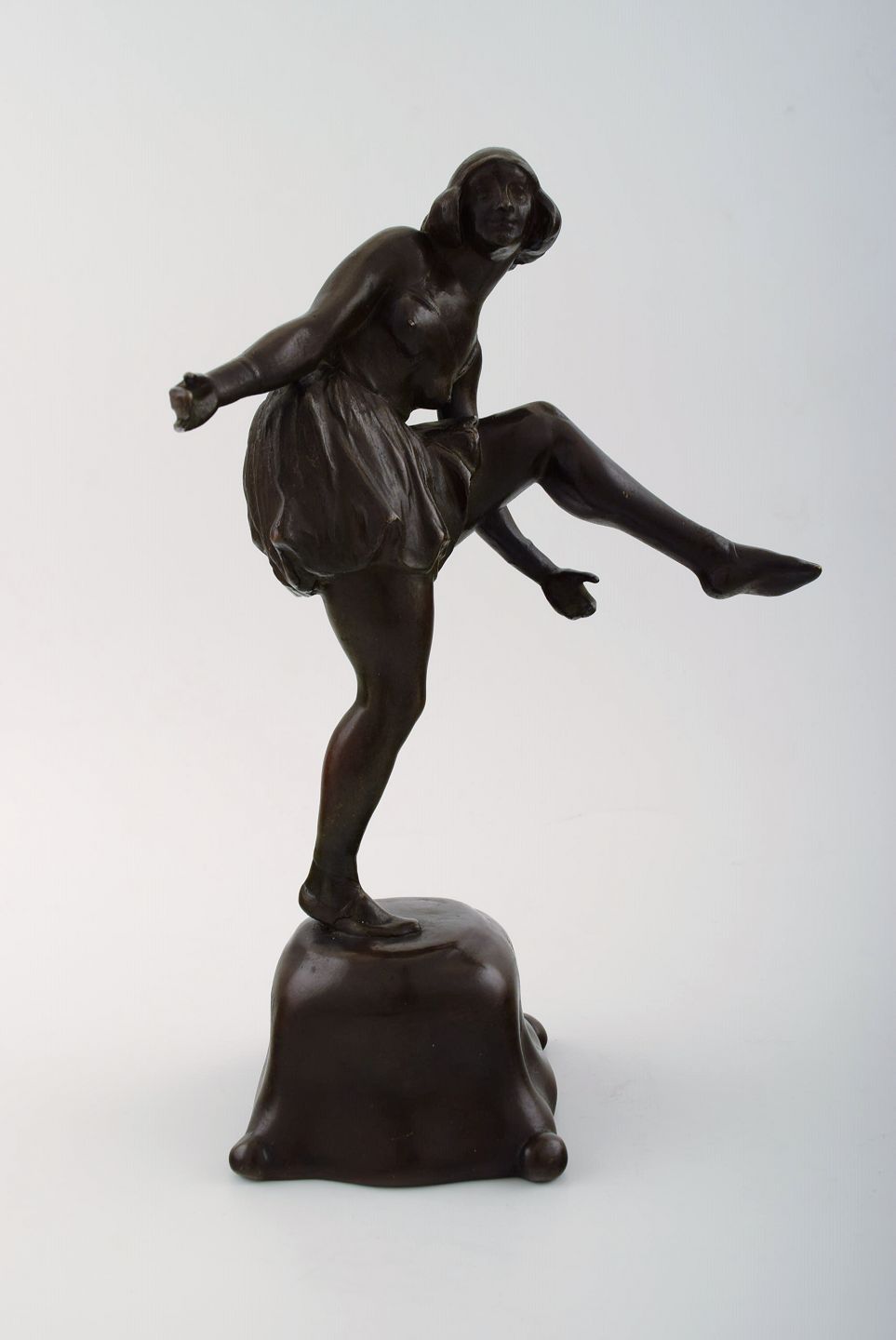 Axel Locher (1879-1941): Danserinde, Art Deco bronzeskulptur. Signeret : Axel Locher. L. Rasmussen, København. 1920/30´erne. Højde: 25,5 cm. I perfekt stand.