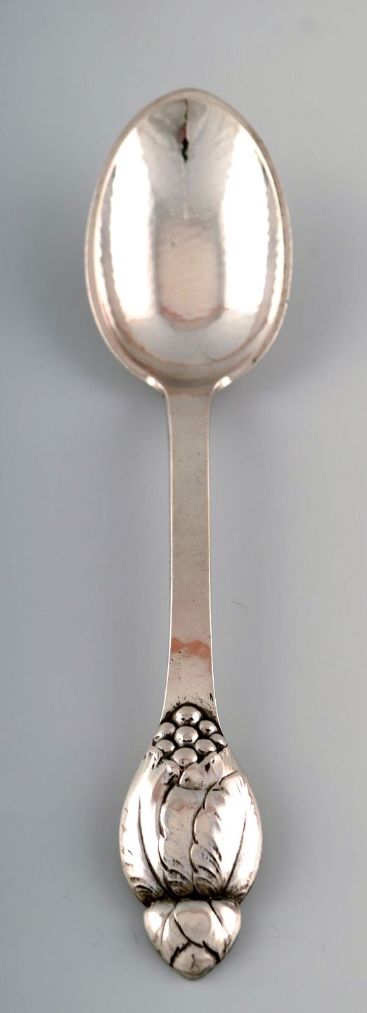 Evald Nielsen number 6, dessert spoon in full silver. 2 in stock. Measures 18 cm. Stamped. In perfect condition.