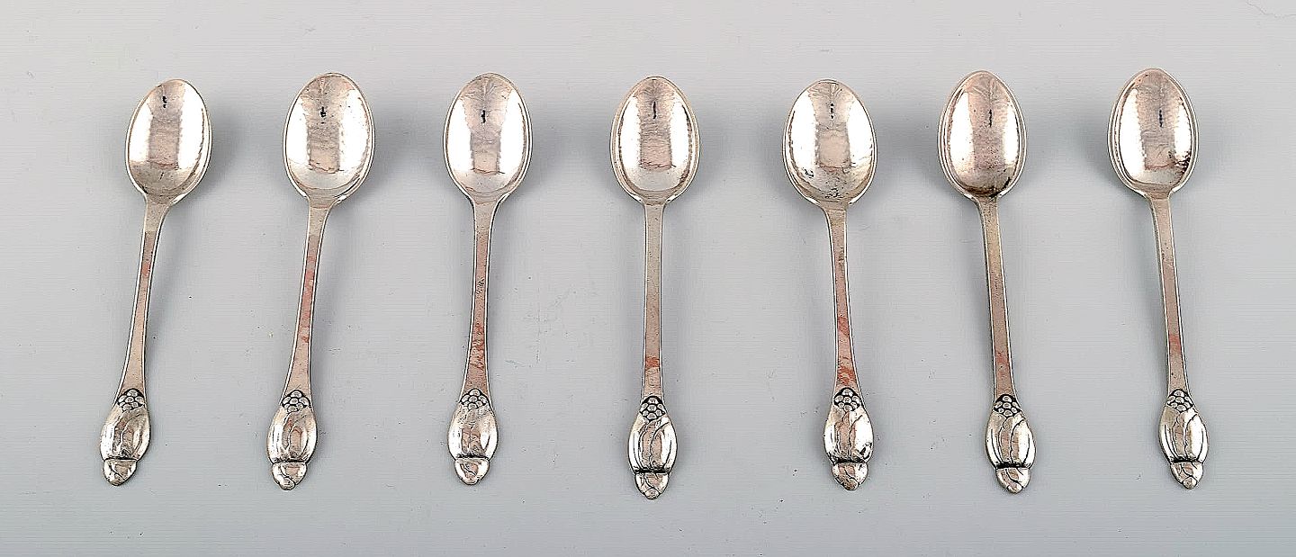Evald Nielsen nummer 6, teske i sølv. 7 skeer på lager. Måler 11 cm. Stemplet. I perfekt stand.