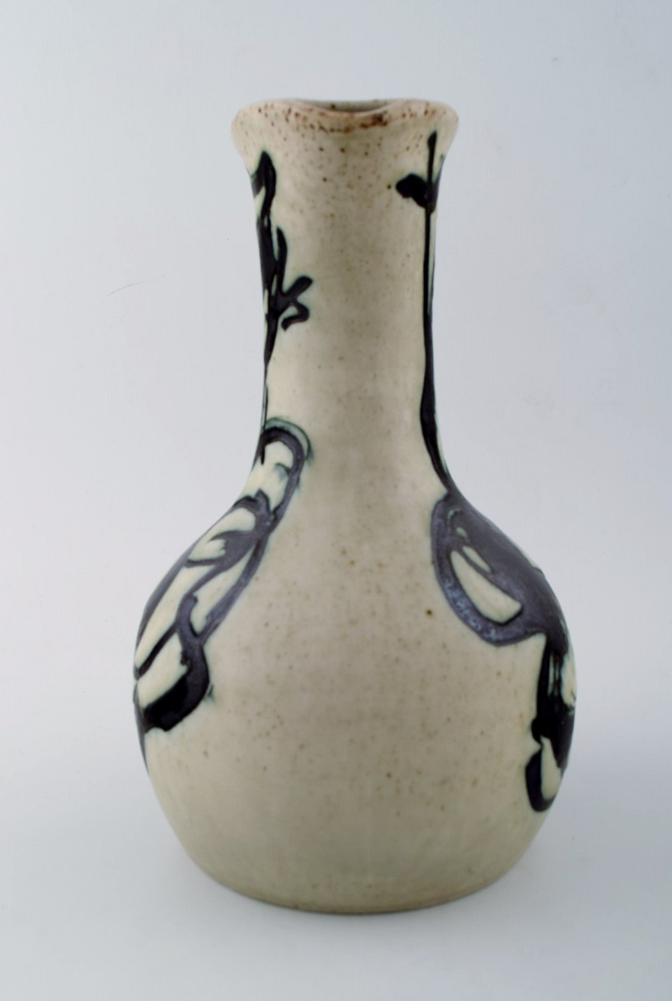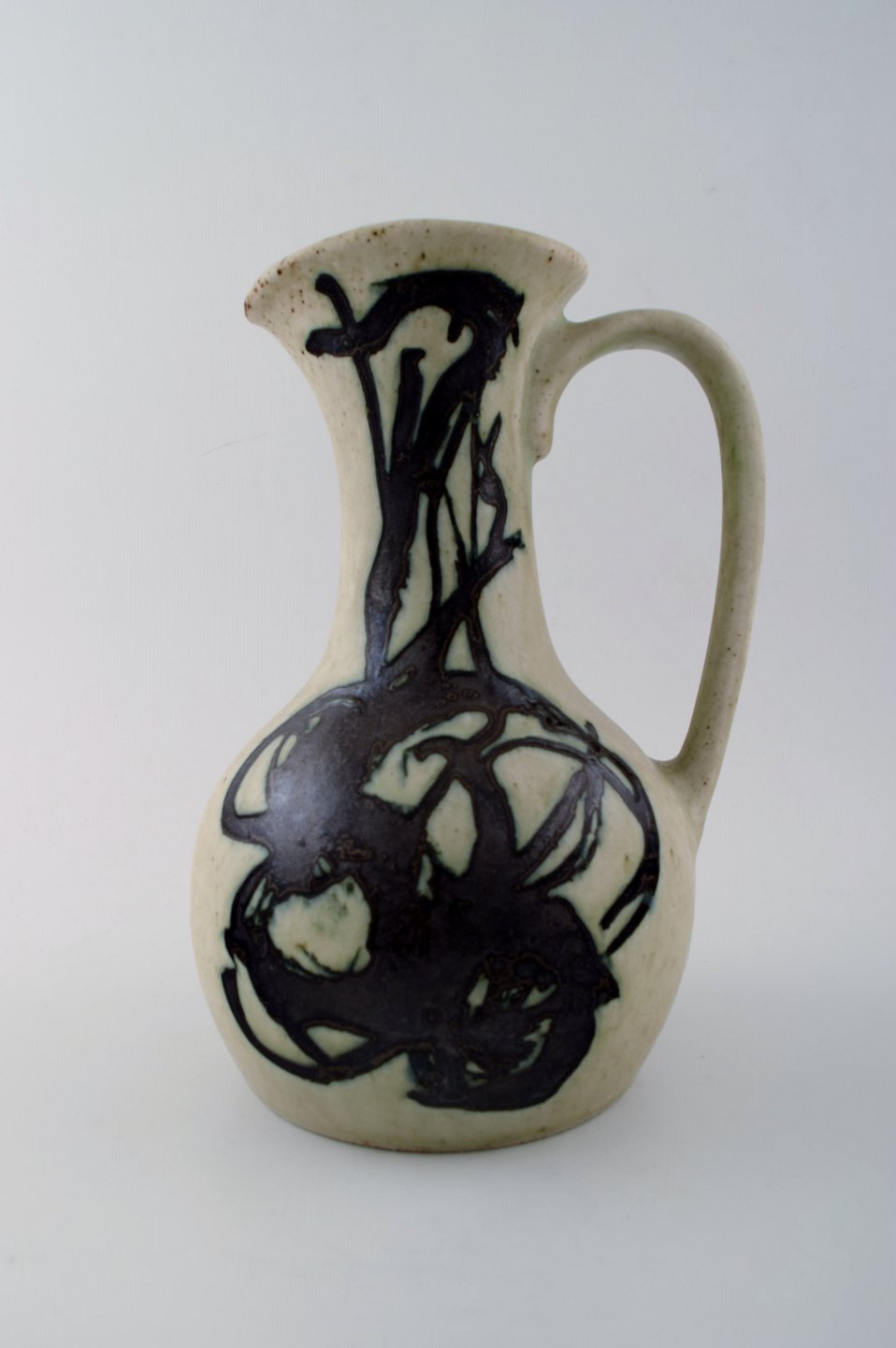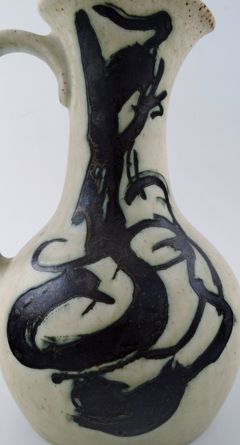 Mogens Andersen for Royal Copenhagen : Stoneware pitcher decorated with matt, grey glaze and black glazed patterns. H. 24,5 cm. In perfect condition. 1st. factory quality.