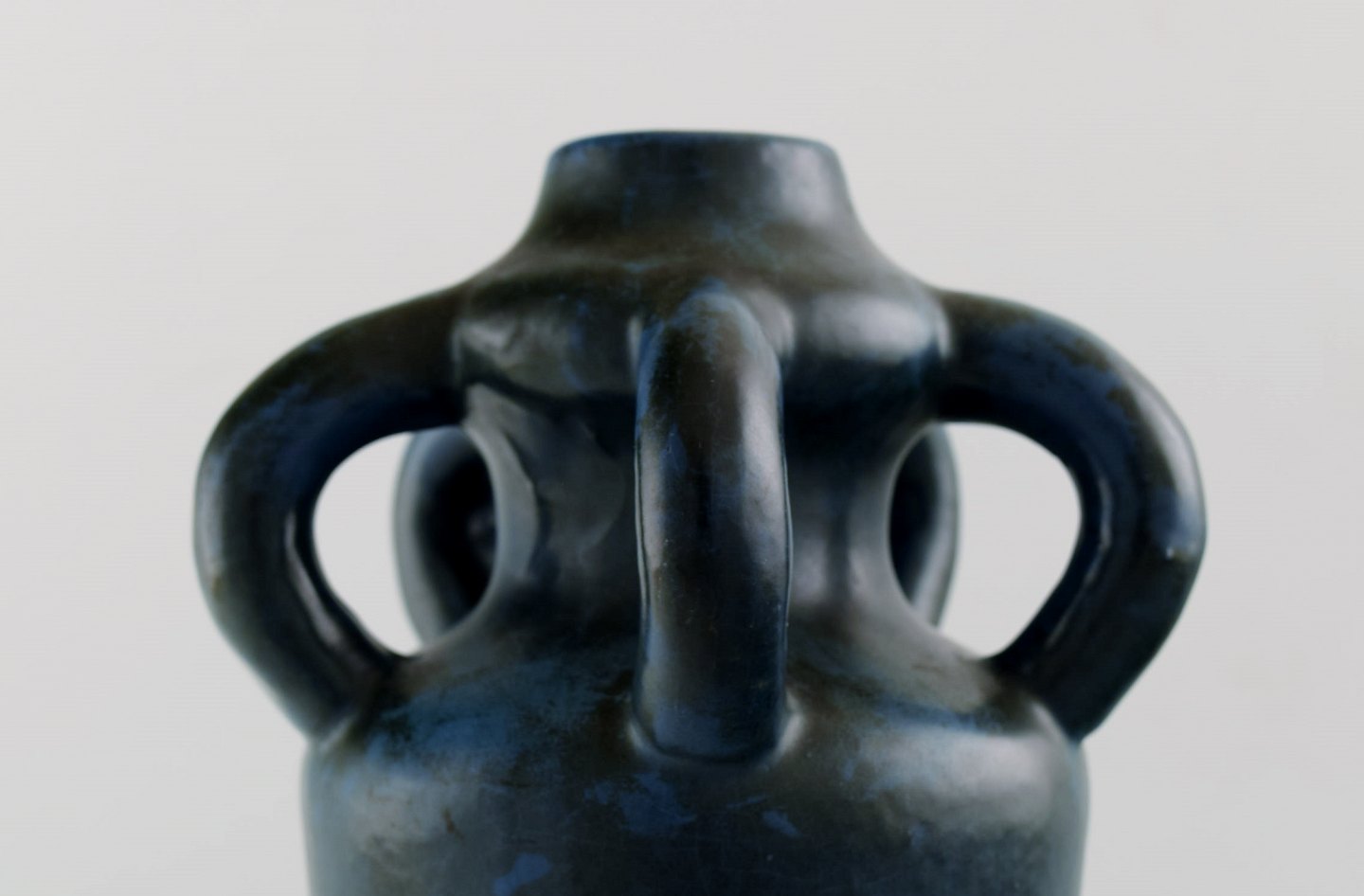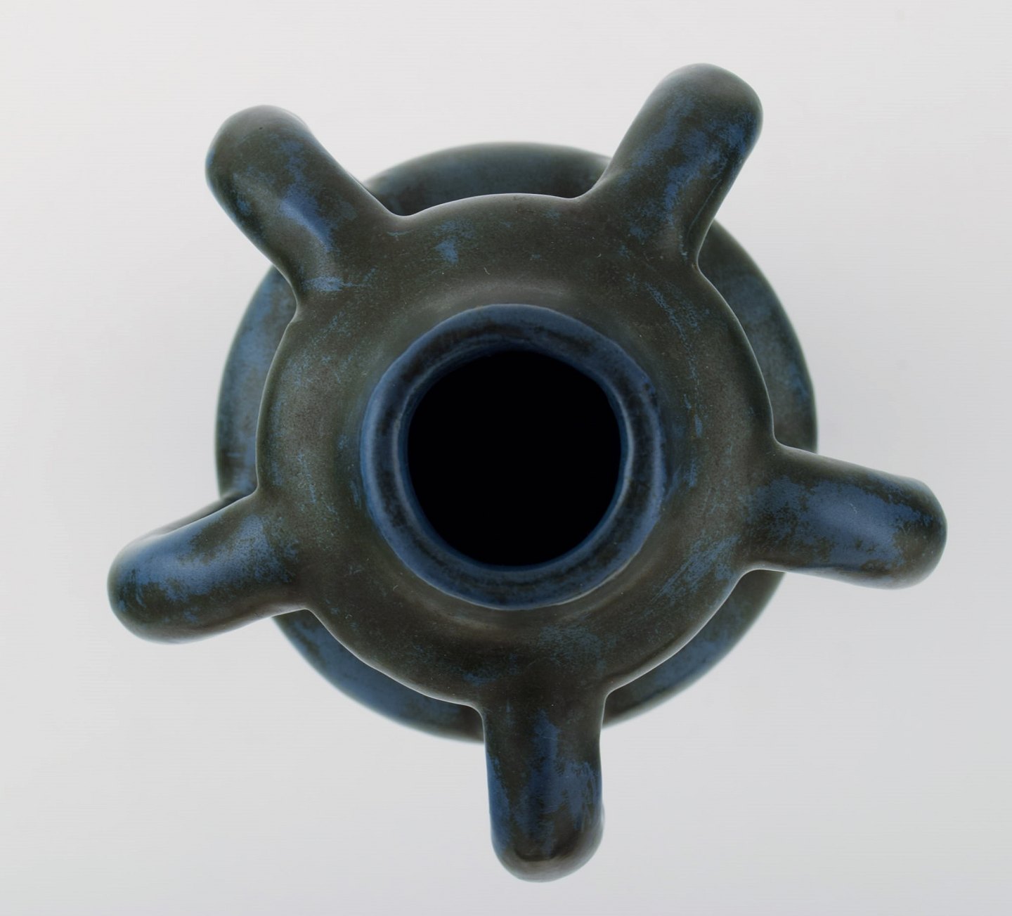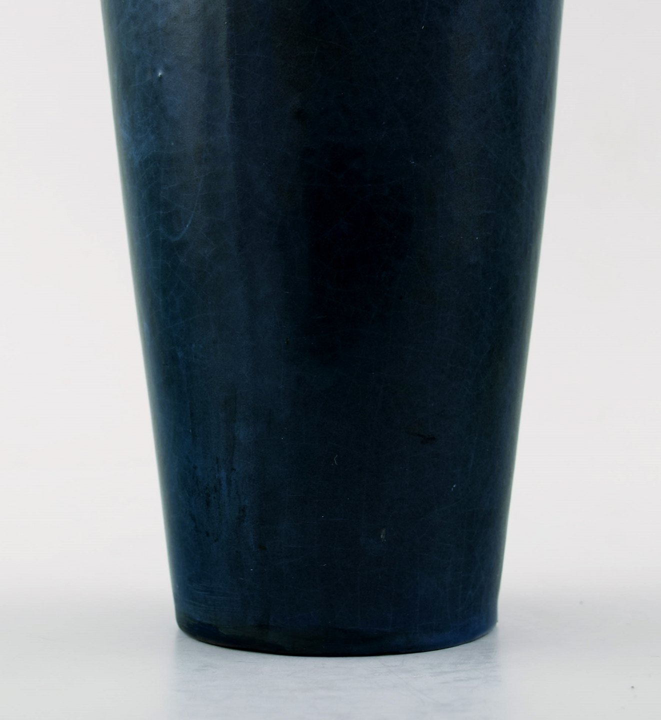 Höganäs keramikvase. Smuk mørkeblå glasur. Stemplet, ca. 1920. 23 cm. x 11 cm. I perfekt stand.