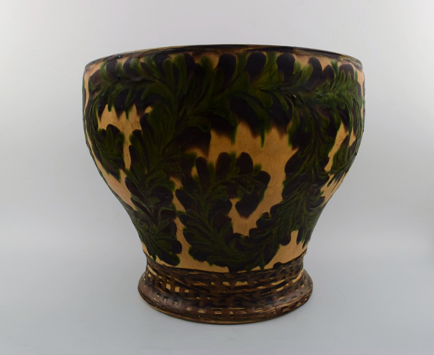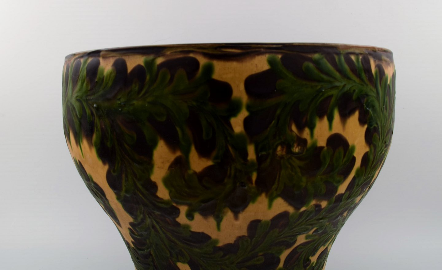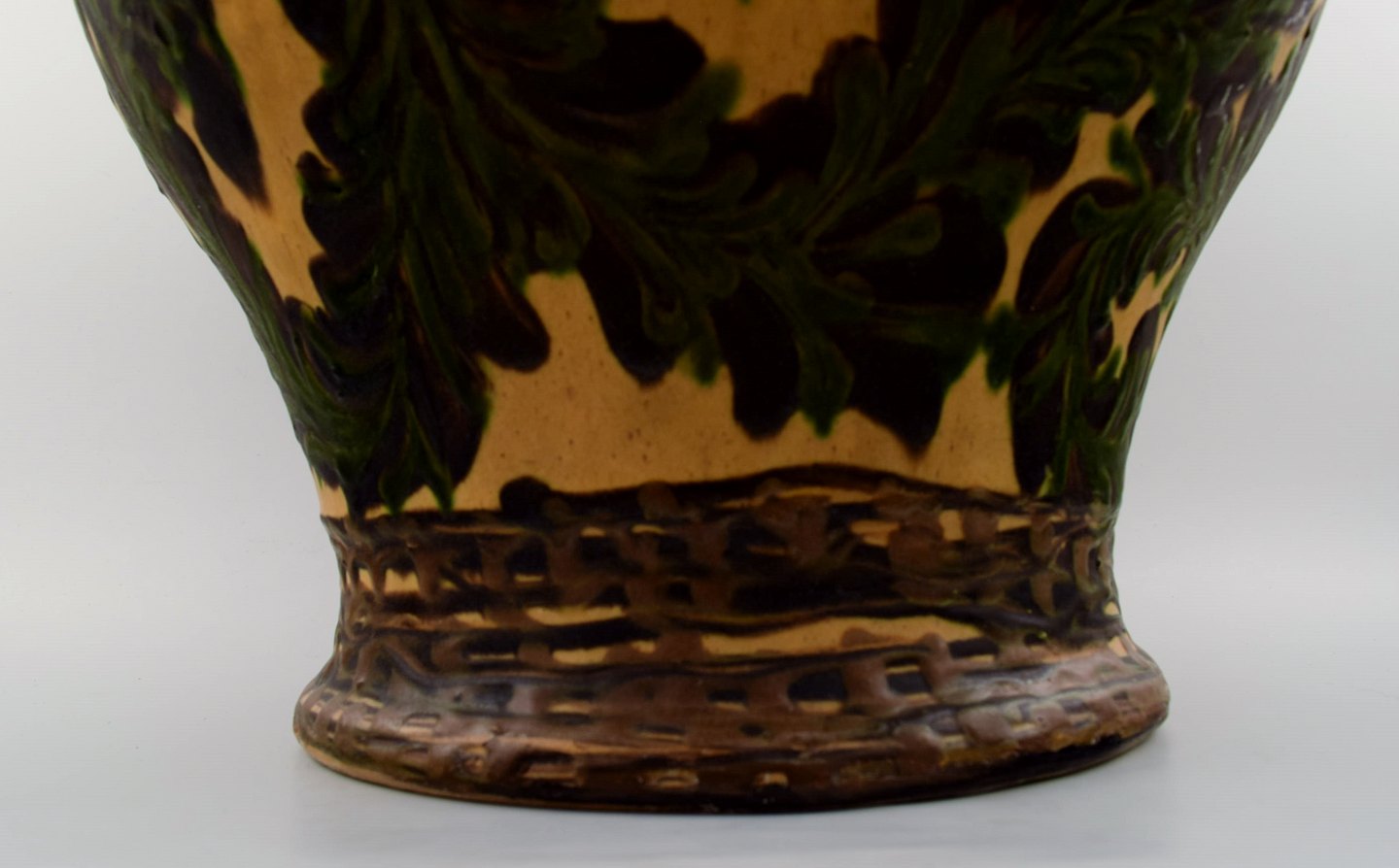 Kähler, HAK, stor glaseret stentøjsgulvvase. 1930/40´erne. Kohornsteknik. Stemplet. Måler : 35,5 cm. x 31 cm. I perfekt stand.