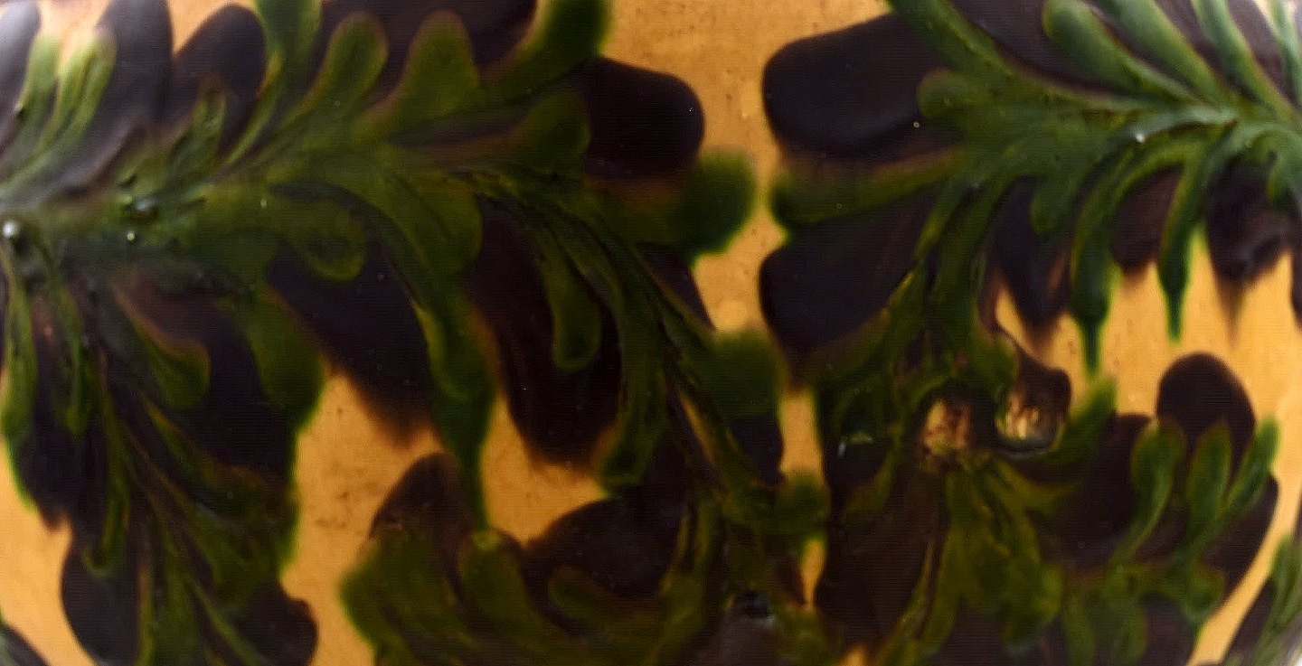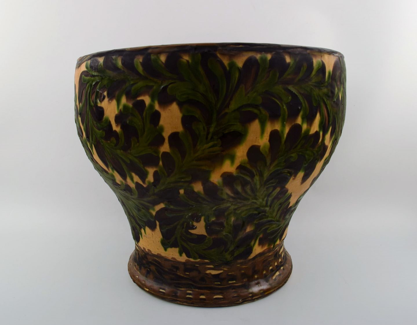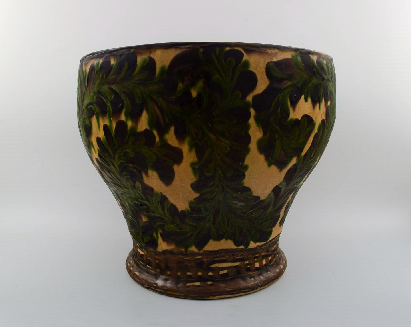 Kähler, HAK, stor glaseret stentøjsgulvvase. 1930/40´erne. Kohornsteknik. Stemplet. Måler : 35,5 cm. x 31 cm. I perfekt stand.