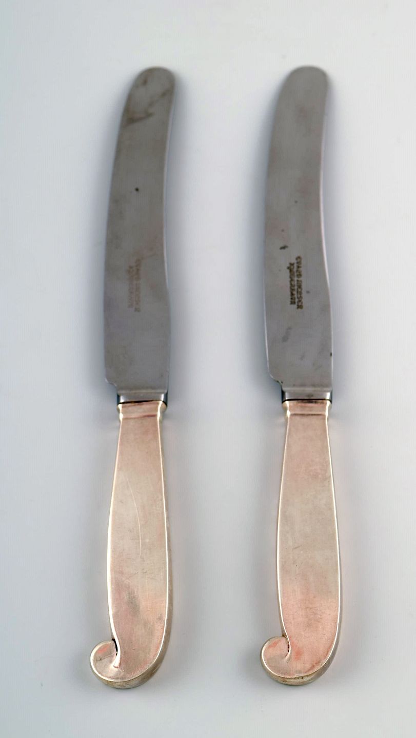 Evald Nielsen, two knives in silver. Measures 21 cm. Stamped. In perfect condition.