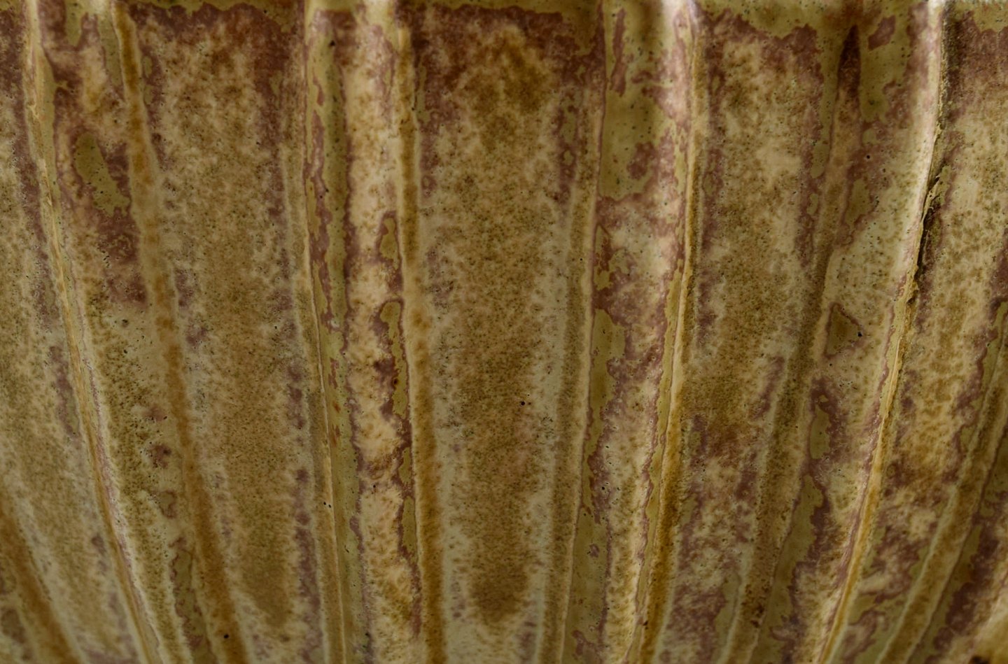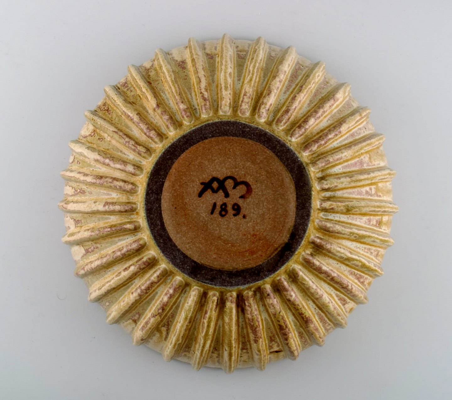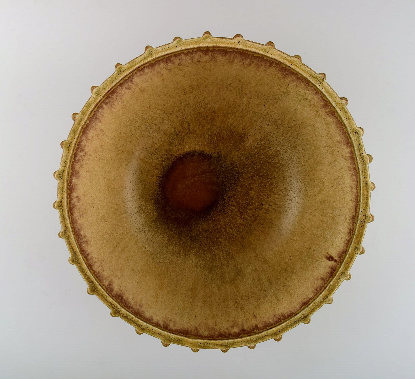 Arne Bang. Stoneware bowl with fluted corpus decorated with brown / ocher speckled glaze.
