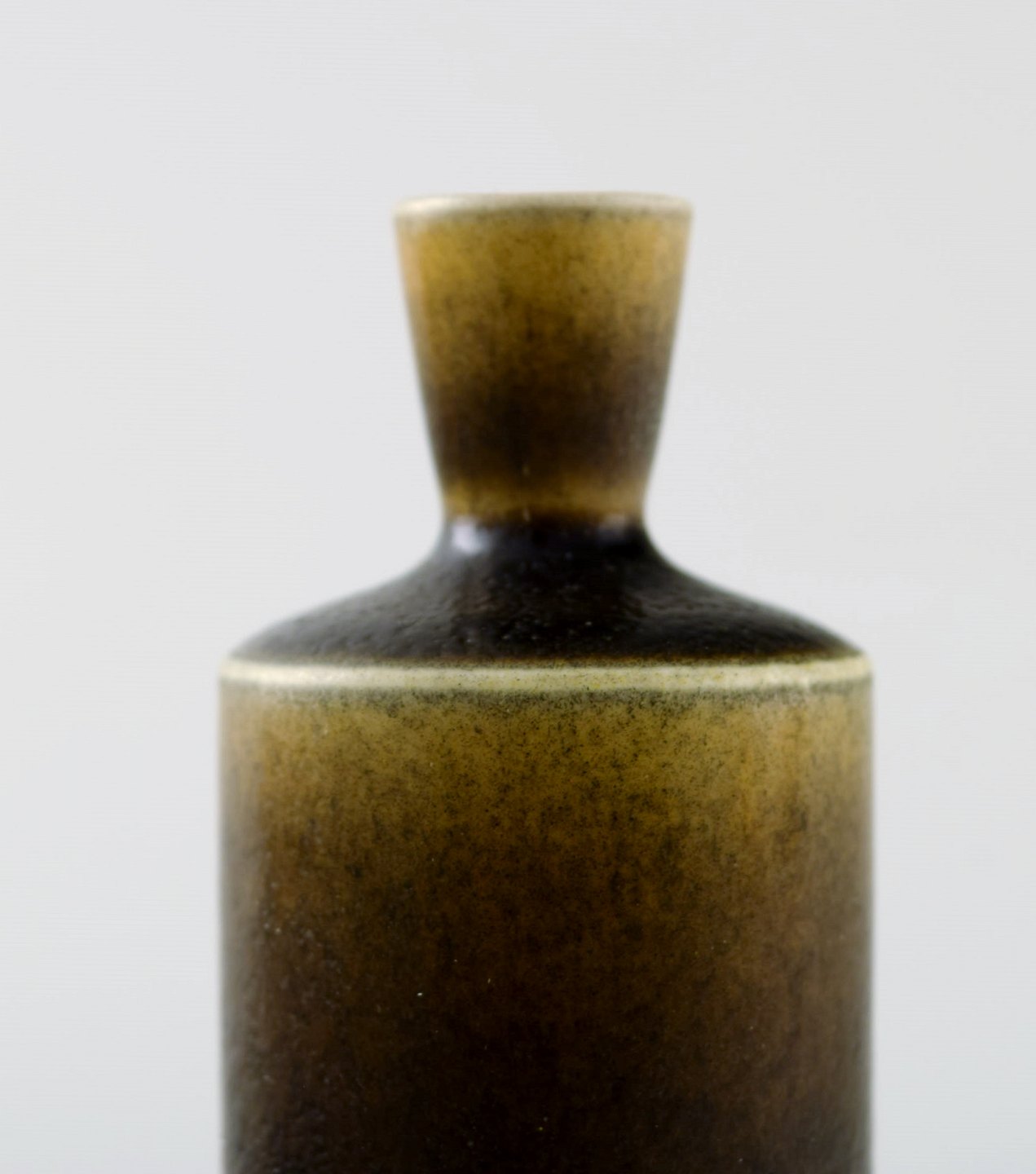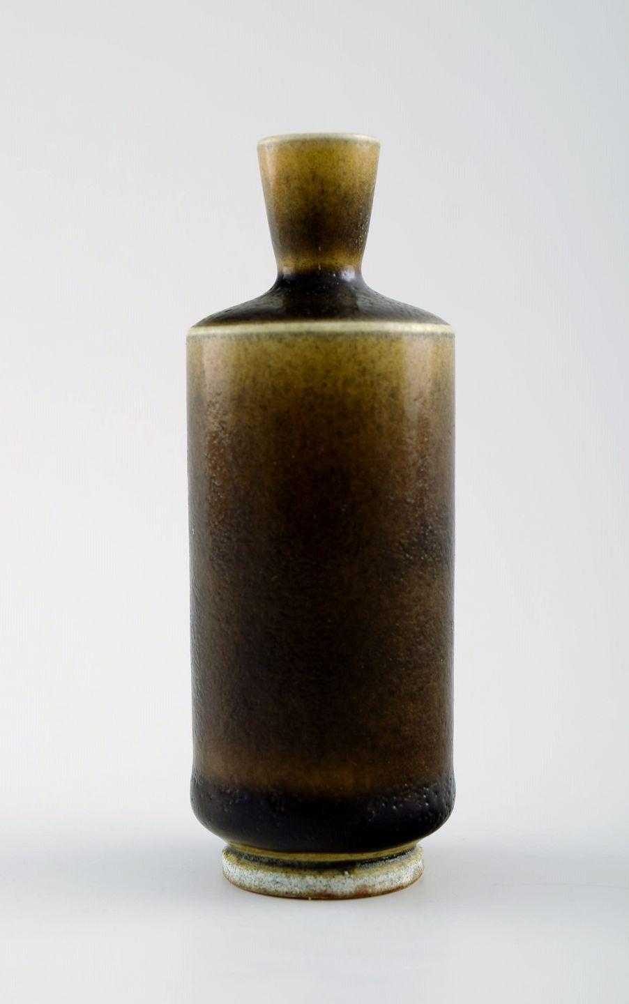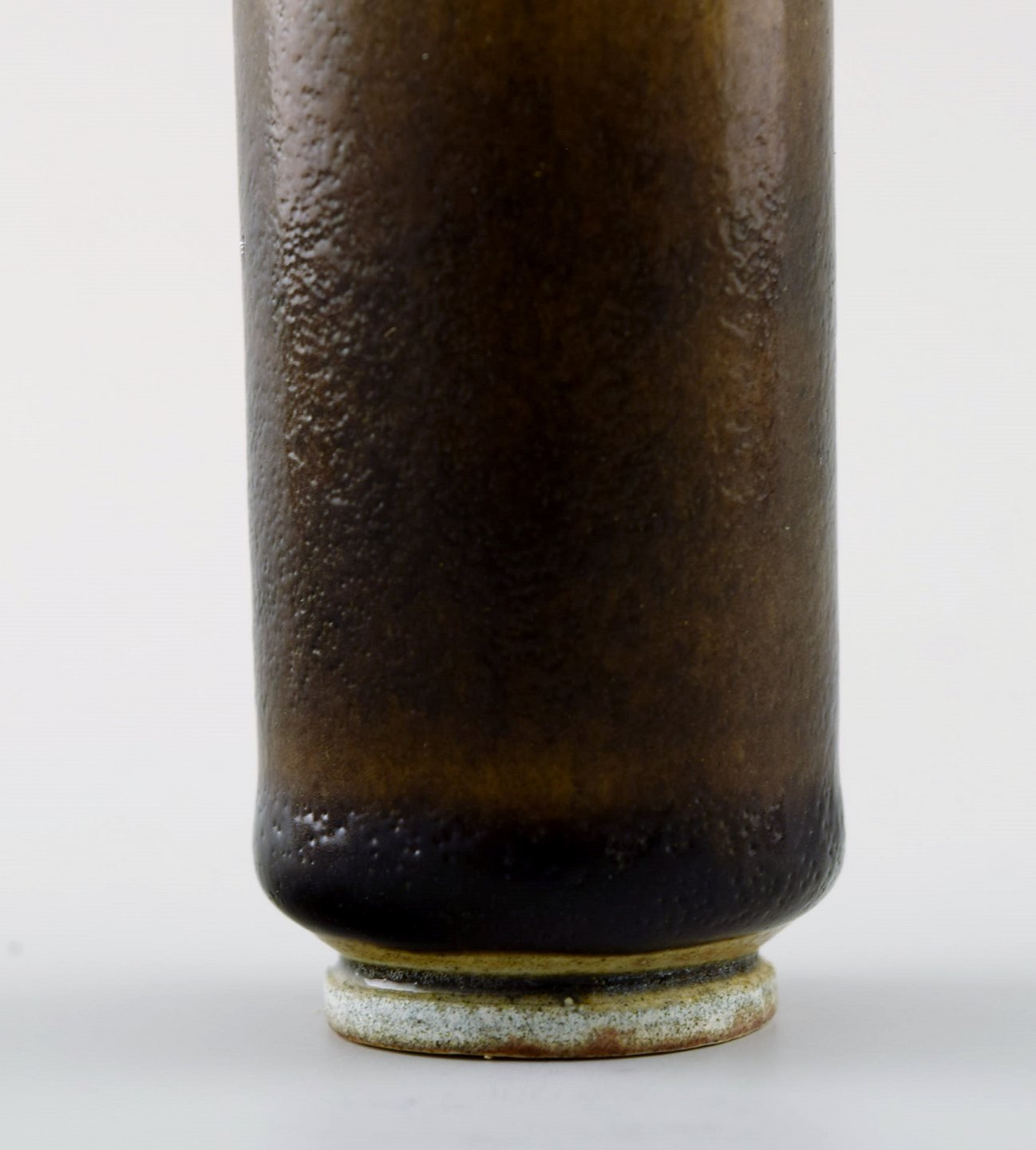 Berndt Friberg Studio keramikvase. Moderne svensk design. Unika, håndlavet. Fantastisk glasur i brune toner. Perfekt stand. 1. sortering. Måler: 9 cm. x 3,5 cm.
