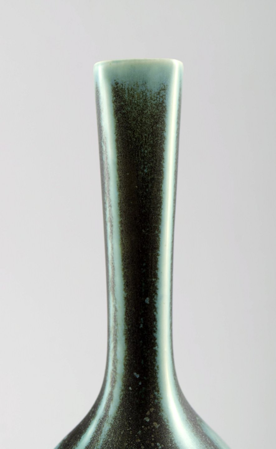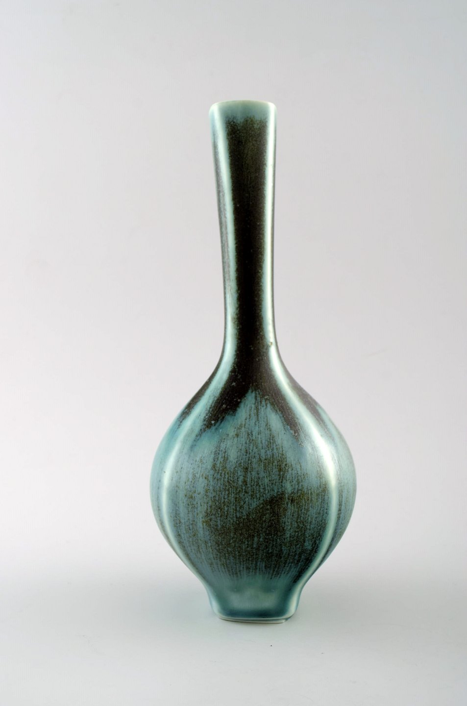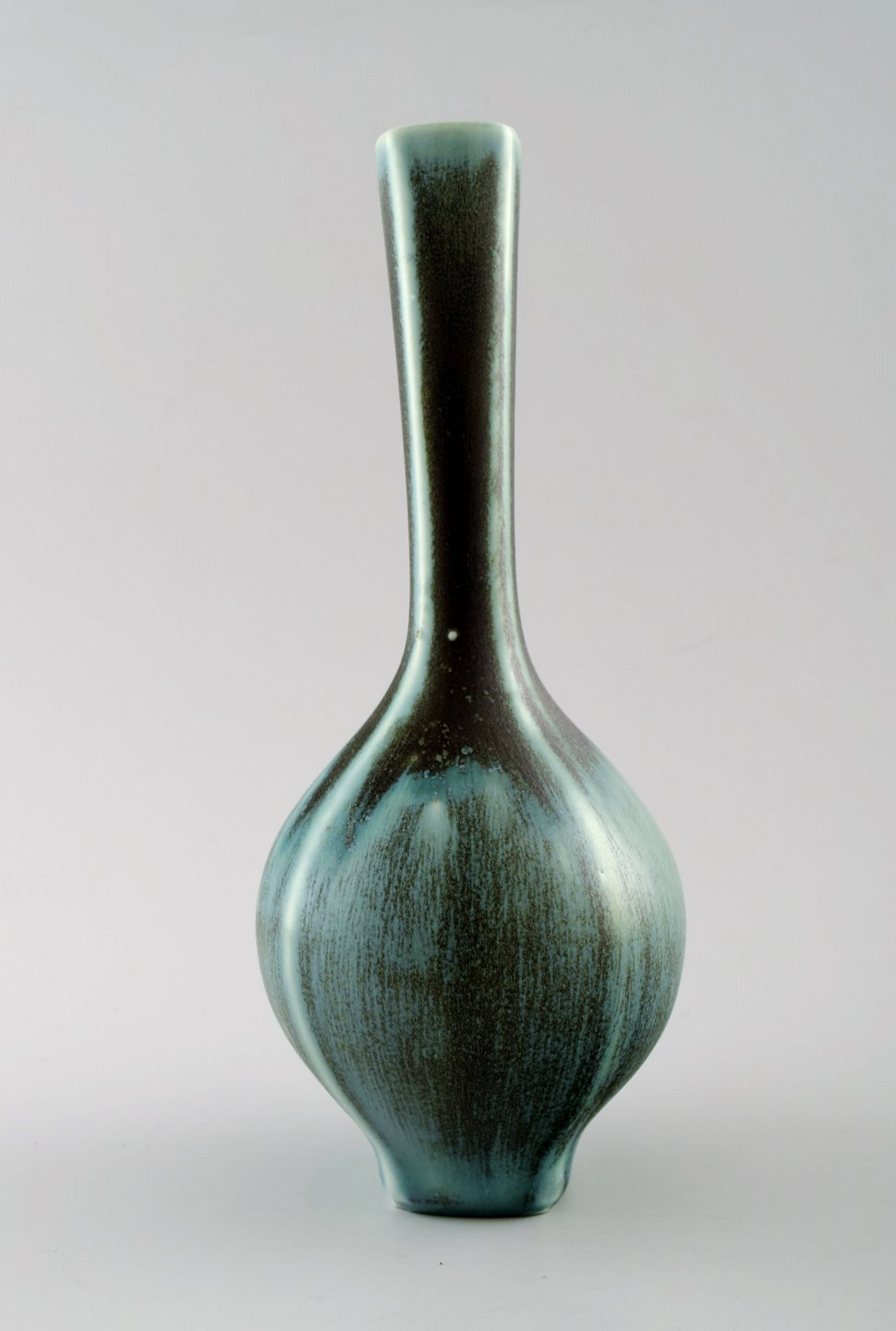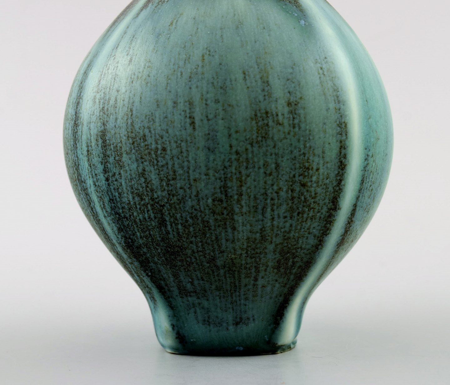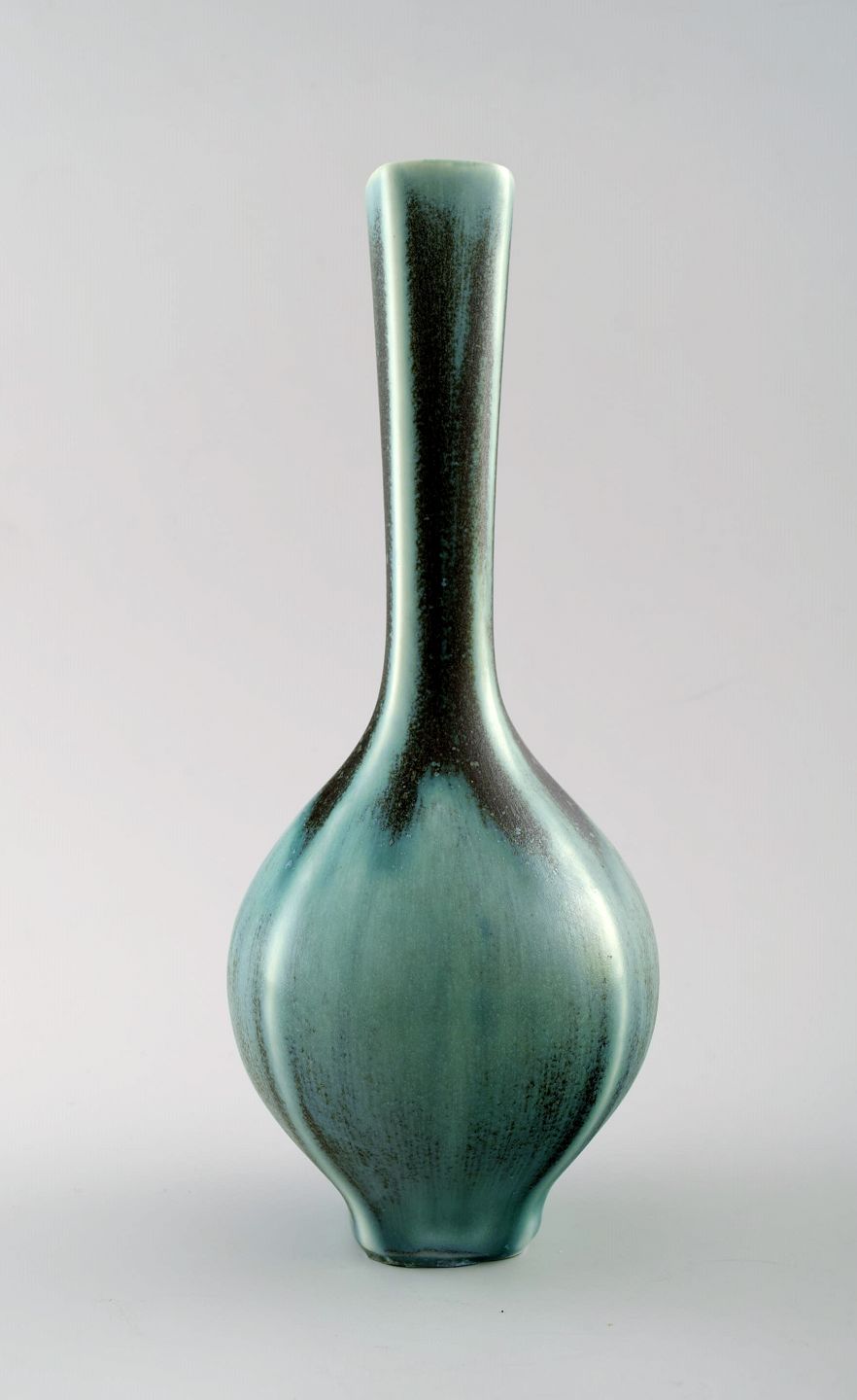 Friberg "Selecta" large ceramic vase for Gustavsberg. Fantastic glaze in turquoise green shades. Marked. Perfect. 1st. factory quality. Measures: 21.5 cm. x 8.5 cm.
