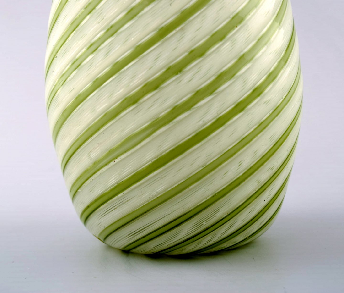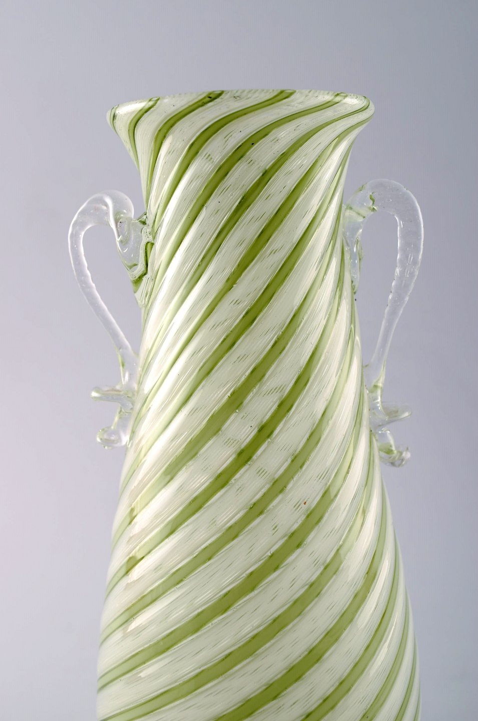 Murano art glass vase with handles. 1960s. In perfect condition. Measures 21 cm. x 8.5 cm. Unstamped.