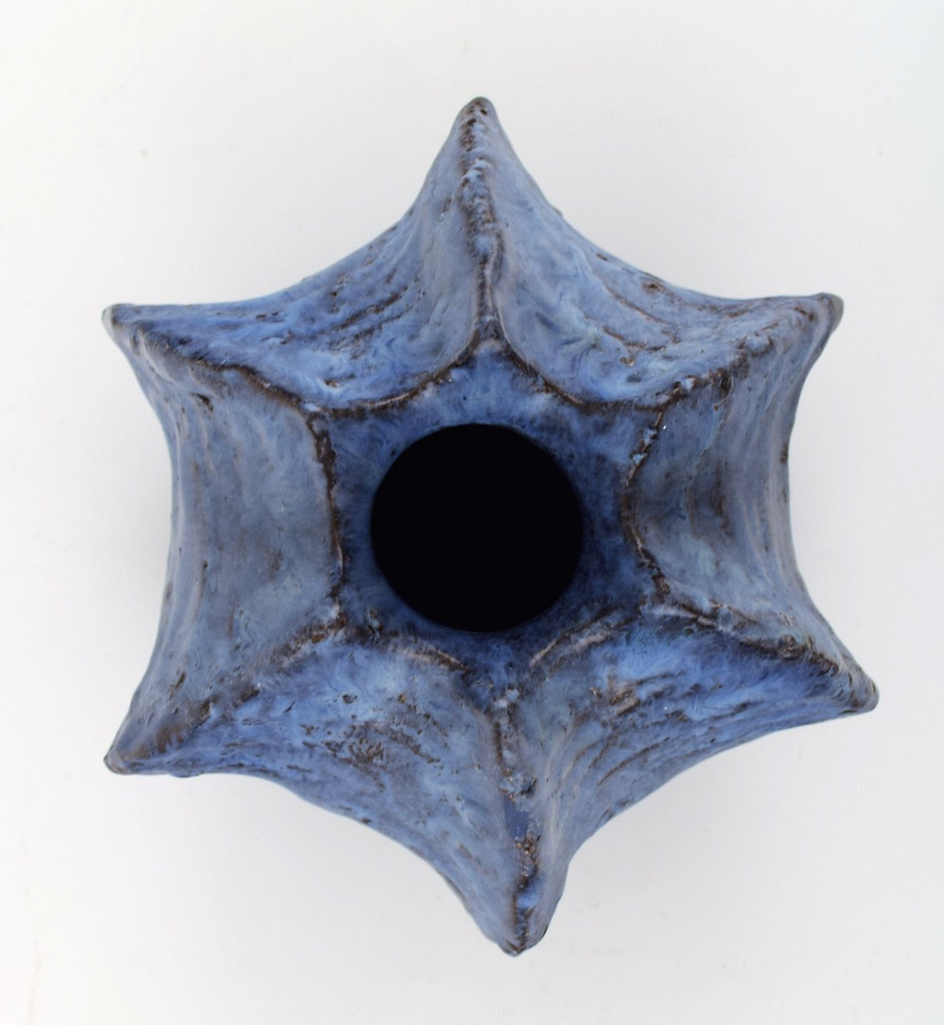 Helge Østerberg: Organisk vase af blåglaseret brændt chamotte-ler, svejfet organisk korpus.
