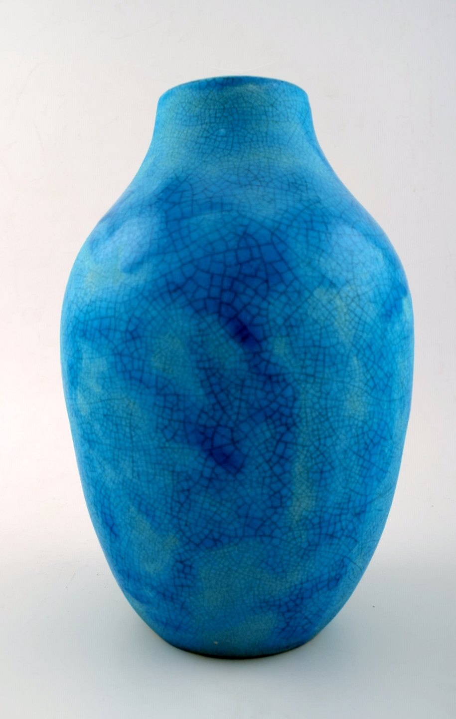 Raoul LACHENAL (1885-1956) French ceramic vase. Turquoise. Marked. 1940s Beautiful turquoise glaze. Measures 22 cm. x 16 cm. In perfect condition.