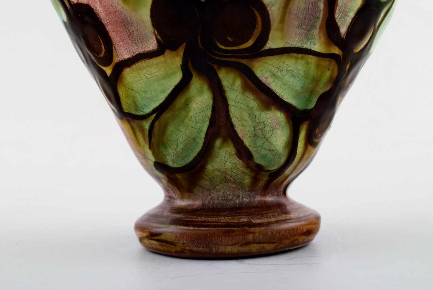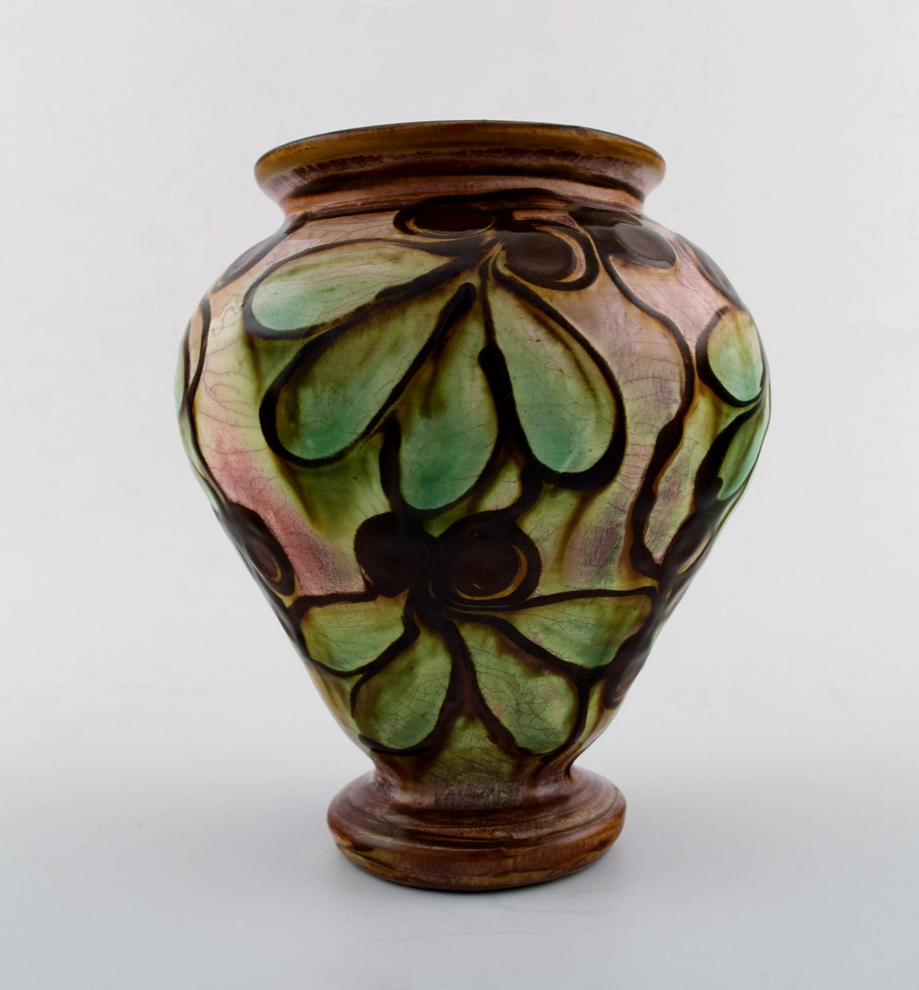 Kähler, Denmark, glazed stoneware vase in modern design. 1930 / 40s. Cow horn technique. Stamped. Measures: 19 cm. X 17 cm. In perfect condition.