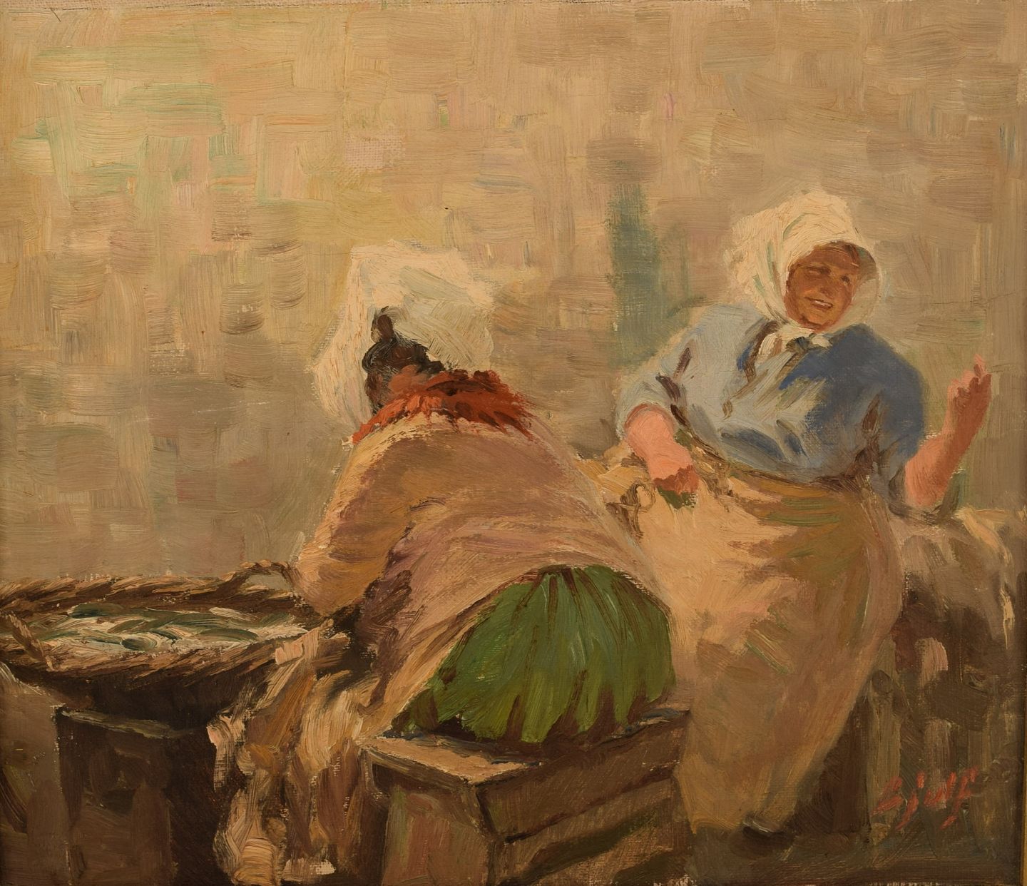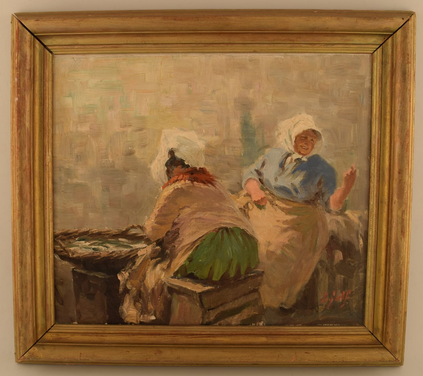 S. C. Bjulf: Skovserkoner. Olie på lærred. Signeret Bjulf. Måler : 37 cm. x 32 cm. Rammen måler 5 cm. I perfekt stand.