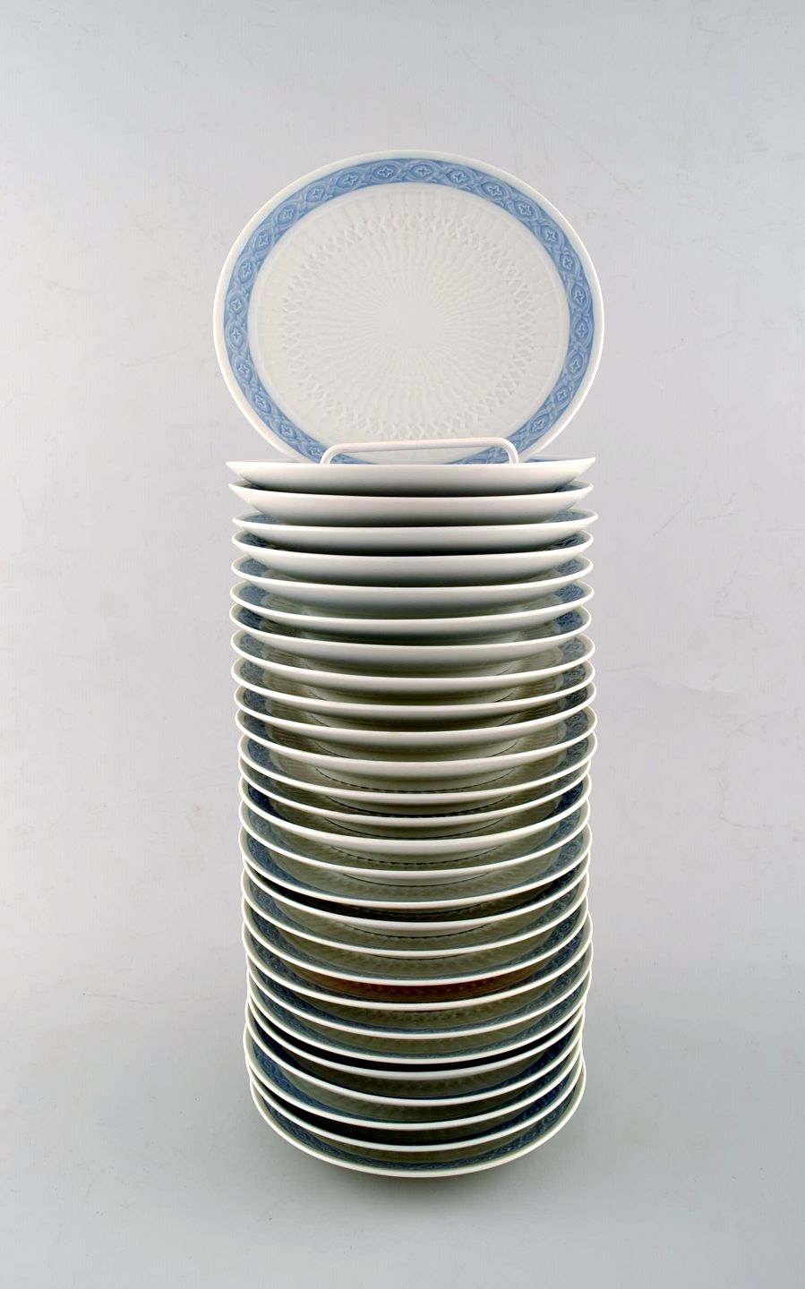 28 plates. Royal Copenhagen Blue fan, bread & butter plates. Designed by Arnold Krog in 1909. Decoration Number 1212/11533. Diameter 16 cm. In Perfect condition, 1st. factory quality.